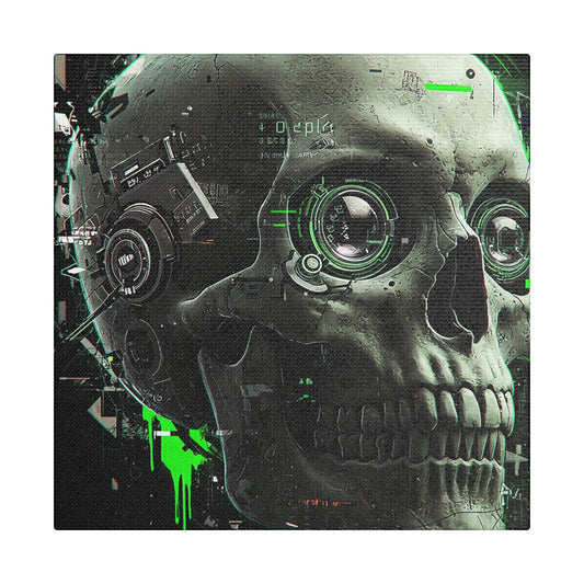 Techno Skull Canvas Art Print, Cyberpunk Wall Decor, Edgy Home Aesthetic, Gothic Gift for Him, Halloween Decoration, Modern Artwork