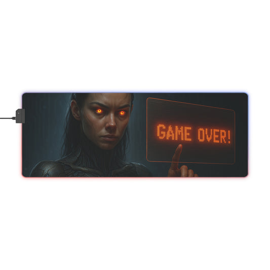 LED Gaming Mouse Pad with 'Game Over!' Design, Gaming Decor, Desk Gadget, Mouse Mat, Perfect for Gamers or Esports Enthusiasts