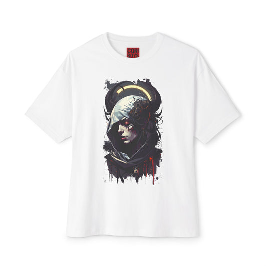 Edgy Graphic Tee, Unisex Oversized Boxy Tee, Goth Fashion Shirt, Casual Streetwear Top, Grunge Style Tee, Perfect Gift for Halloween
