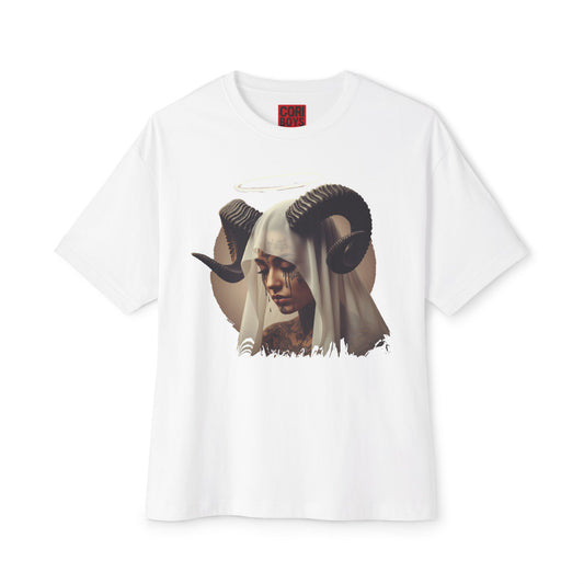 Mystical Ram Graphic Tee, Unisex Oversized Boxy Tee, Statement T-Shirt, Boho Chic Shirt, Art-Inspired Fashion, Comfortable Everyday Wear