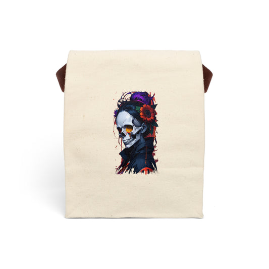 Skull and Flower Canvas Lunch Bag | Eco-Friendly Tote, Gift for Goths, Unique School Bag, Halloween Decor, Reusable Snack Cooler