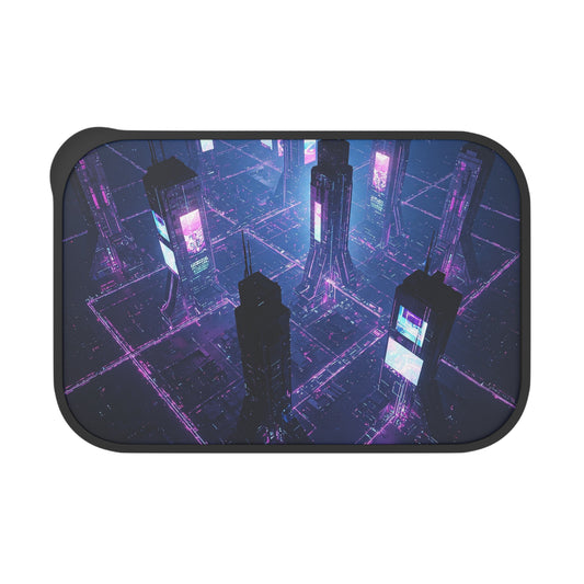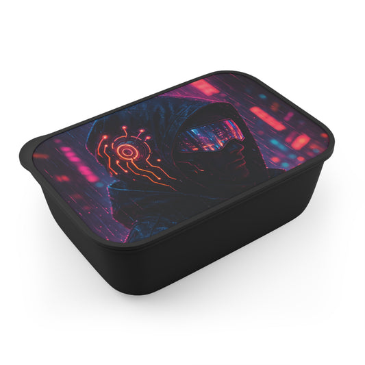 Cyberpunk Themed Bento Box with Utensils | Stylish Meal Prep Container, Futuristic Lunch Box, Unique Gift for Food Lovers