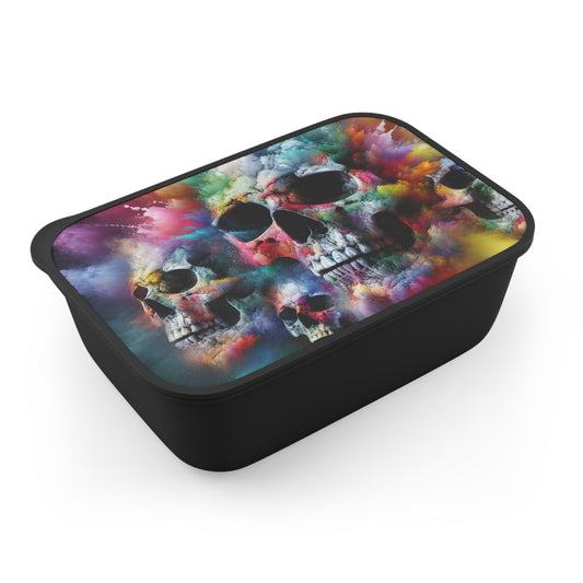 Vibrant Skull Bento Box with Utensils - Perfect for Lunches, Gifts, Halloween, Retro Style, Eco-Friendly Meal Prep
