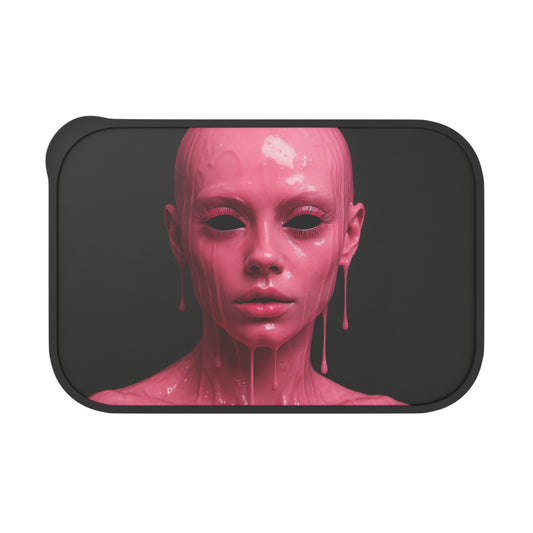 Artistic Bento Box with Utensils, Unique Food Storage, Pink Design, Eco-Friendly Lunch Container, Gift for Foodies