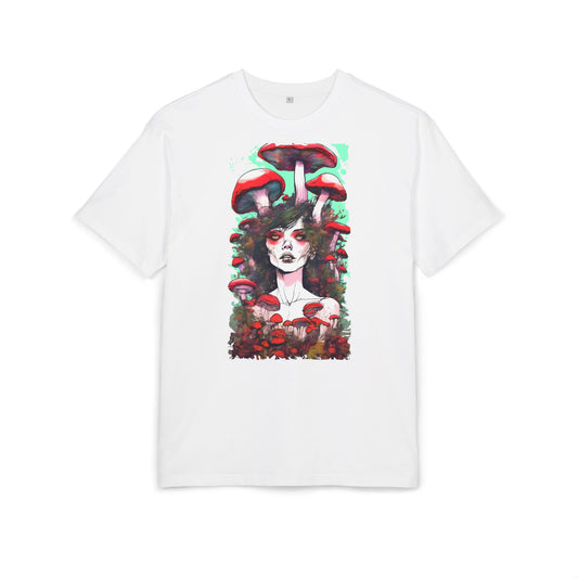 Mystical Mushroom Art Oversize Tee | Unisex Heavy Tee, Boho Style Shirt, Nature Lover Gift, Festival Wear, Graphic Tee, Eco-Friendly Fashion