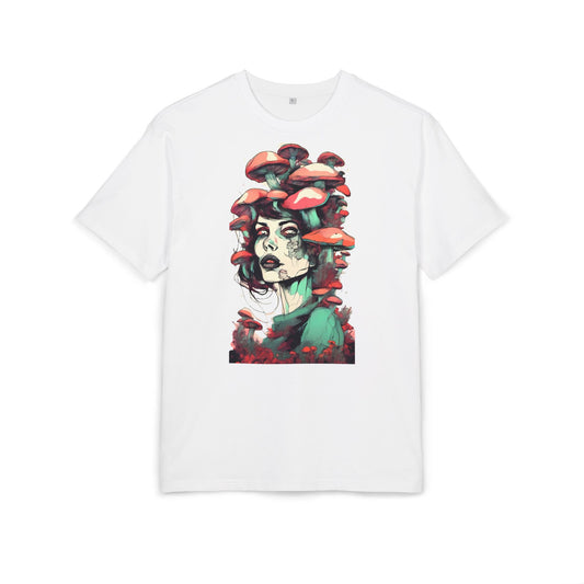 Mushroom Woman Oversized Tee, Bohemian Graphic T-Shirt, Unique Art Tee, Festival Wear, Streetwear Style Top