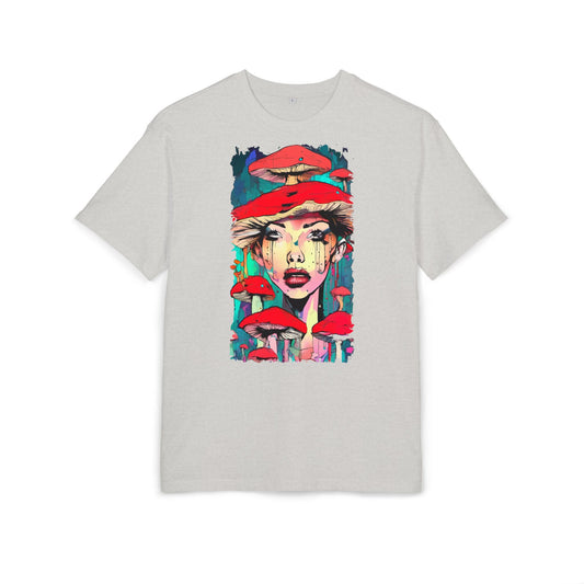 Vibrant Mushroom Art Unisex Heavy Oversize Tee, Funky T-Shirt, Artistic Casual Wear, Gift for Art Lovers, Unique Streetwear