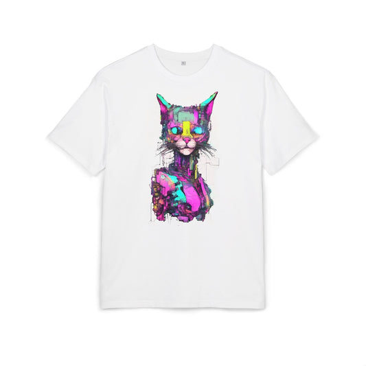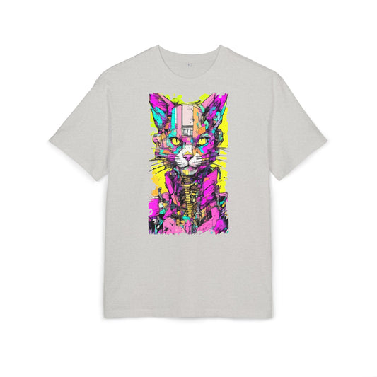 Colorful Cat Graphic Tee, Unisex Heavy Oversize T-Shirt, Funky Cat Art Shirt, Gift for Cat Lovers, Unique Casual Wear