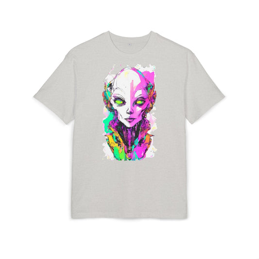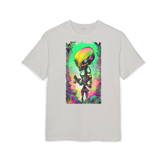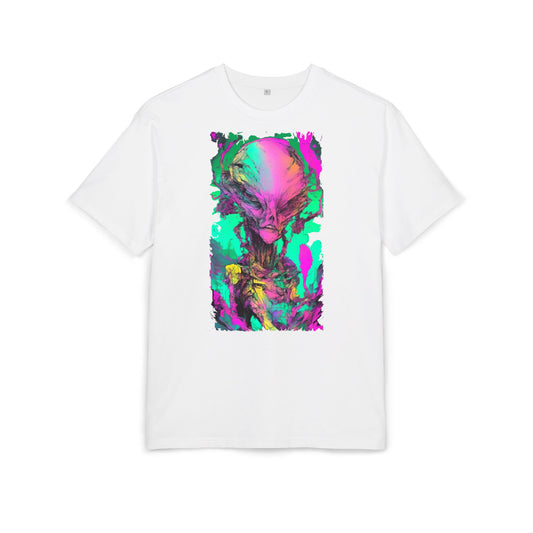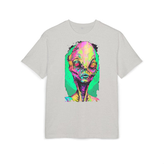 Colorful Alien Graphic Unisex Heavy Oversize Tee | Casual Streetwear, Gift for UFO Enthusiasts, Statement Tee, Festival Wear, Unique Art Tee