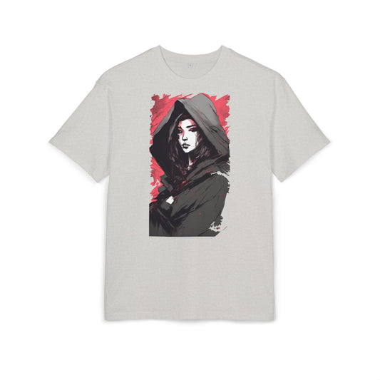 Artistic Oversize Tee with Hooded Character Design, Unisex Streetwear, Graphic Tee, Casual Wear, Unique Gift, Fashion Statement