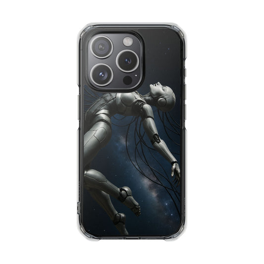 Futuristic Robot Phone Case, Magnetic Clear Impact Case, Unique Gift for Tech Lovers, Protective Smartphone Accessory, Cyberpunk Style