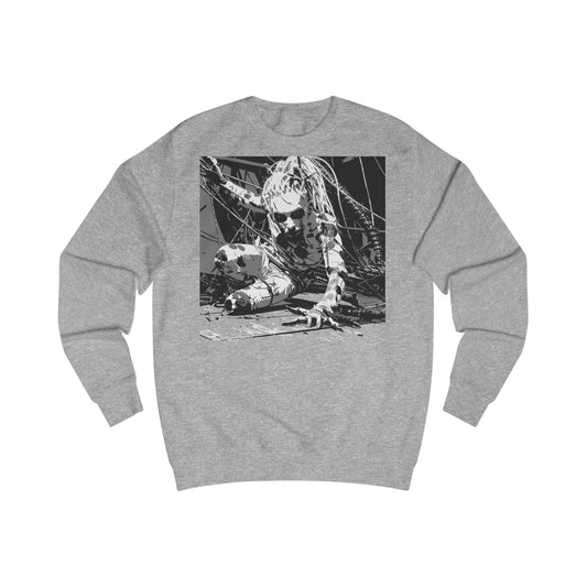 Edgy Graphic Sweatshirt with Art Design, Unisex Streetwear, Casual Fall Fashion, Gift for Art Lovers