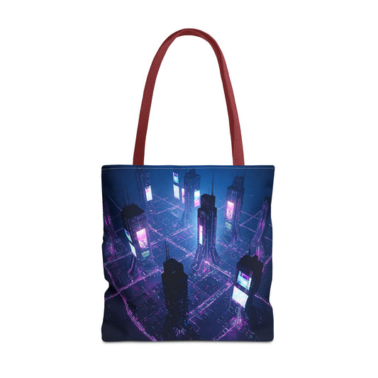 Futuristic Cyberpunk Tote Bag, Unique AOP Bag for Tech Lovers, Stylish Everyday Tote, Gift for Gamers, Sci-Fi Enthusiasts