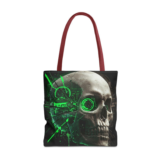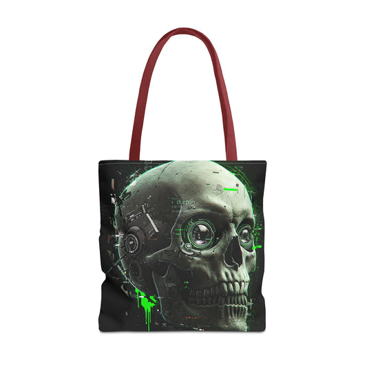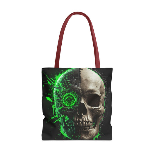 Futuristic Skull Tote Bag, Eco-Friendly Shopping Bag, Graphic Tote, Halloween Gift, Unique Art Bag, Stylish Carryall, Gift for Nerds