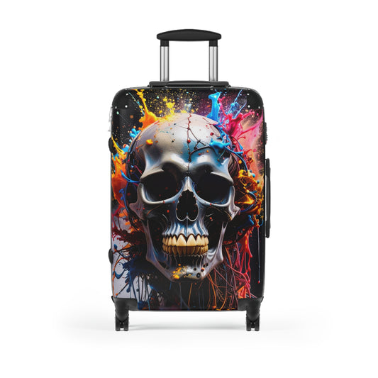 Skull Art Suitcase - Travel Case for Adventurers, Unique Luggage, Gift for Goths, Curated Travel Gear, Eye-Catching Baggage