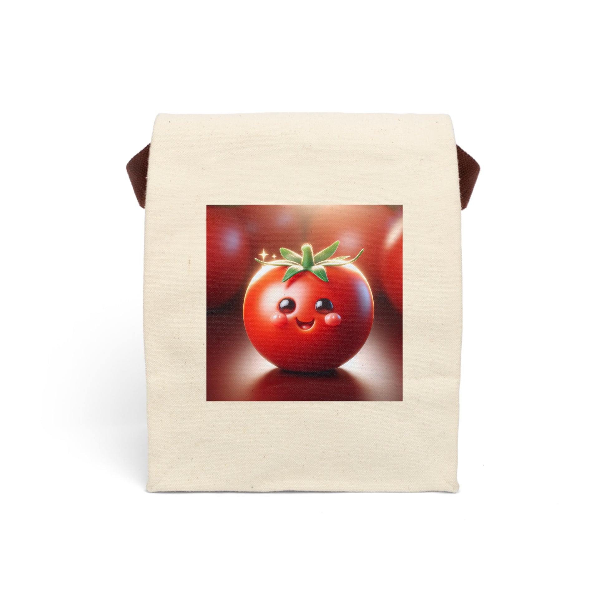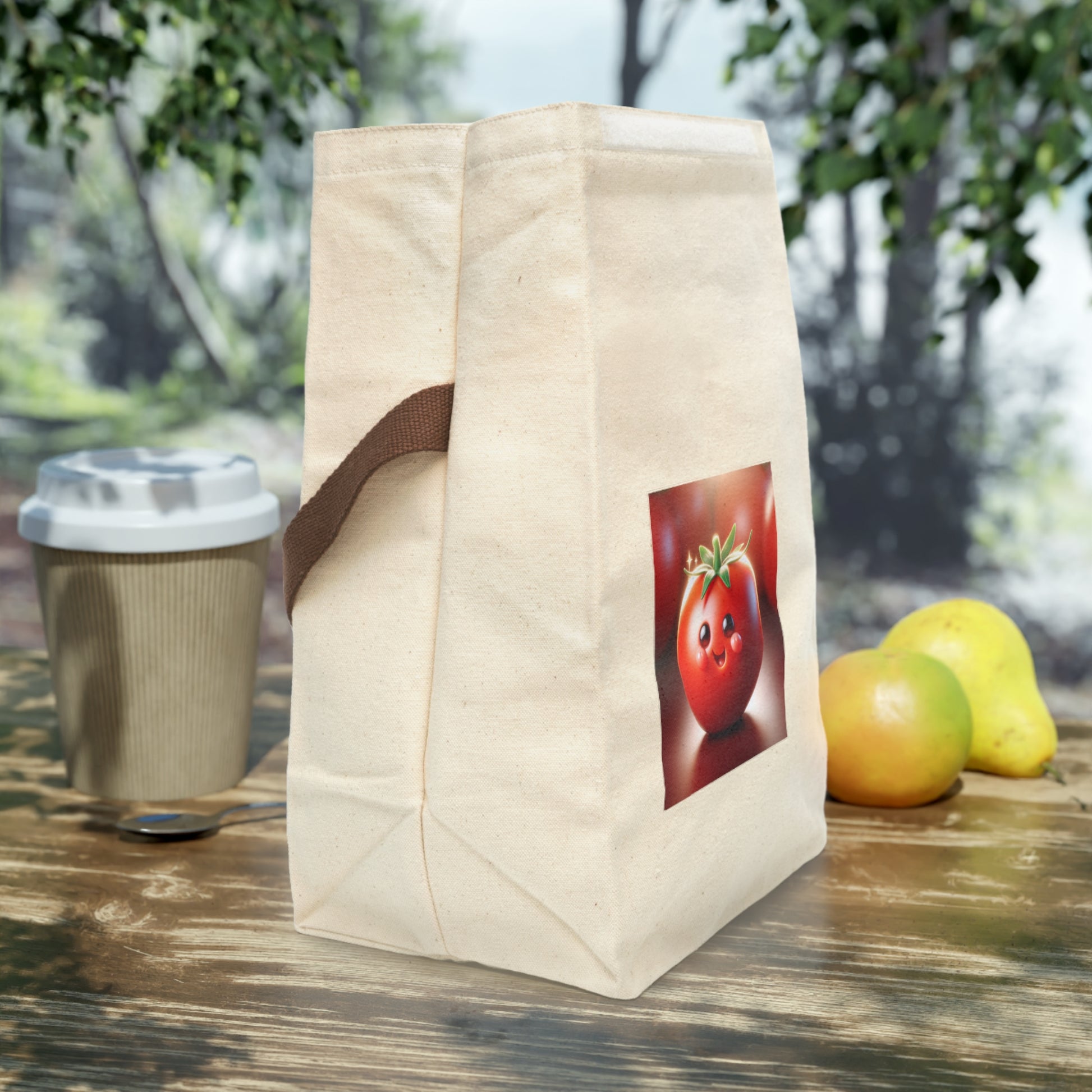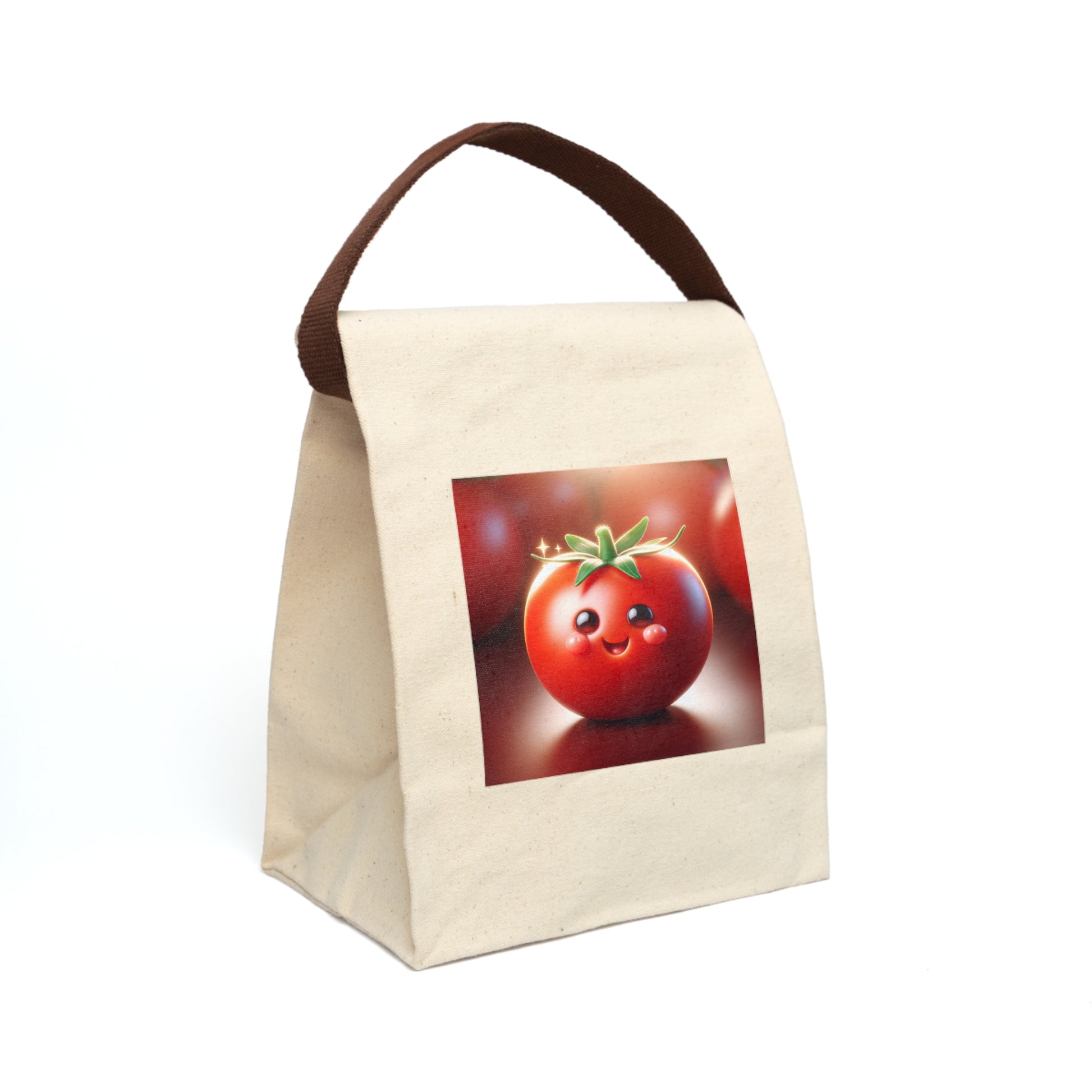 Cheerful Tomato Canvas Lunch Bag with Strap, Cute Lunch Tote, Funny Food Storage, Reusable Snack Bag, Picnic Accessory, Kids Lunch Bag