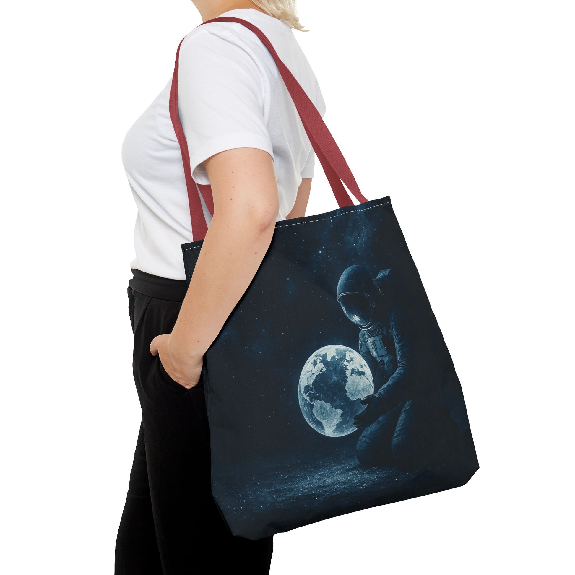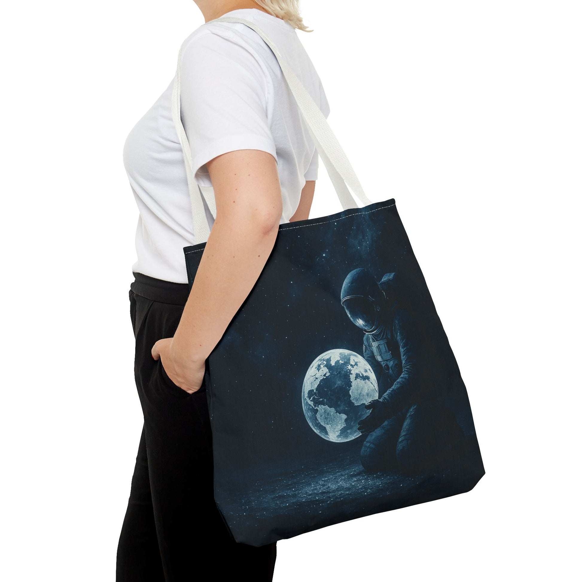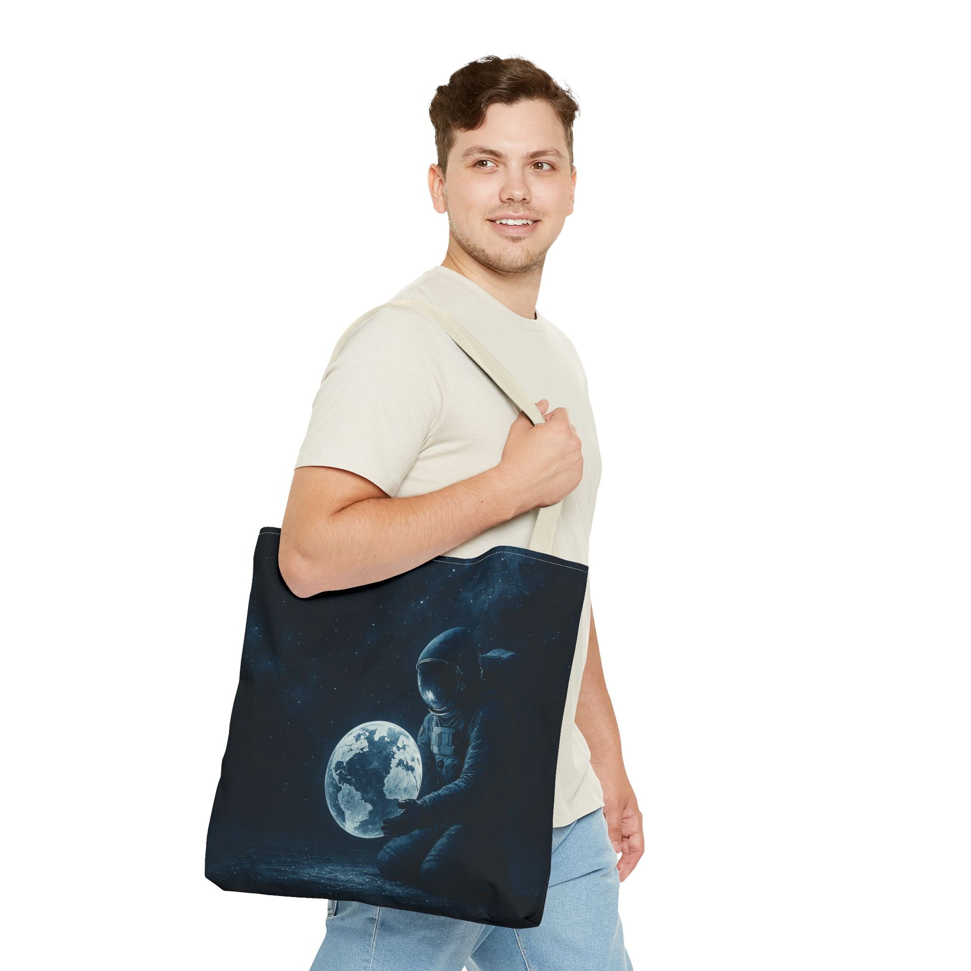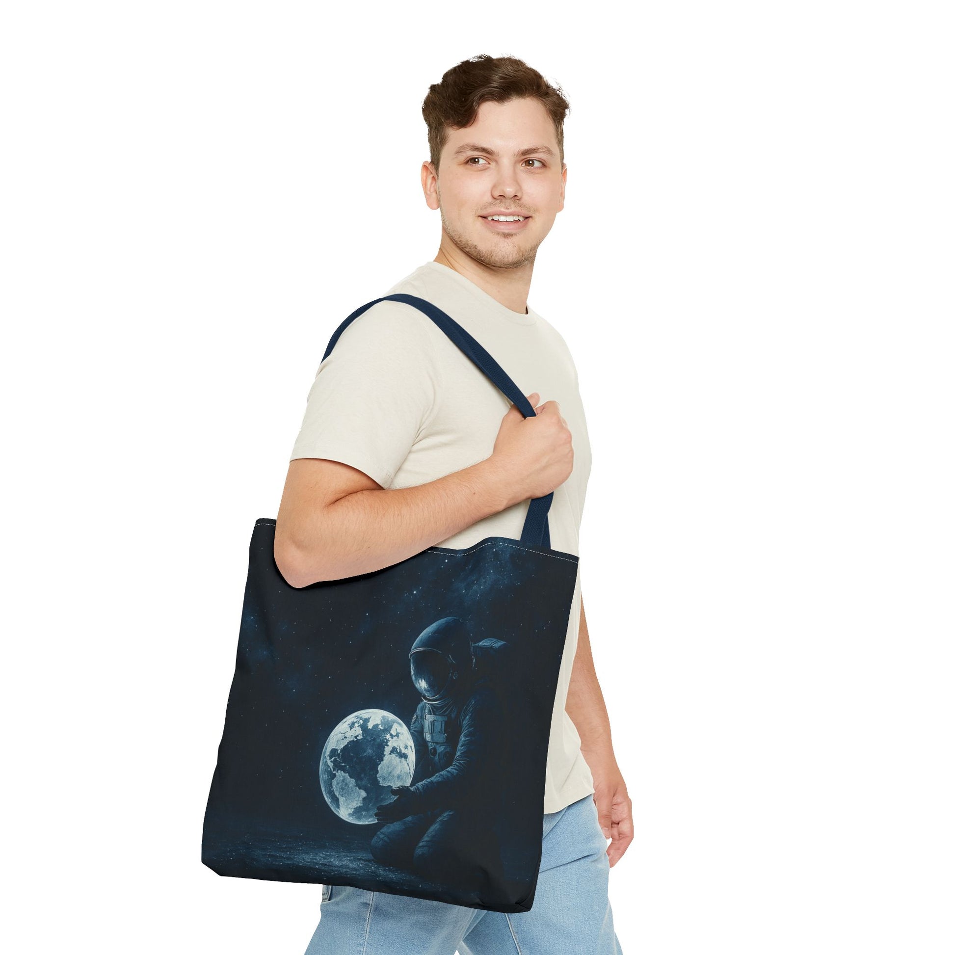 This stunning tote bag invites you to explore the cosmos with its captivating astronaut and moon design. Made from strong and durable polyester, it combines functionality with a touch of otherworldly charm, making it perfect for daily adventures or as a statement piece. Imagine carrying your essentials in a bag that not only looks great but also feels good to use, thanks to its soft cotton handles and spacious interior. Ideal for dreamers, stargazers, and space enthusiasts, this tote is a fantastic gift for birthdays, holidays, or just to celebrate a love for the universe. Whether you're headed to the beach, grocery shopping, or on a trip, let this tote accompany you on all your journeys!