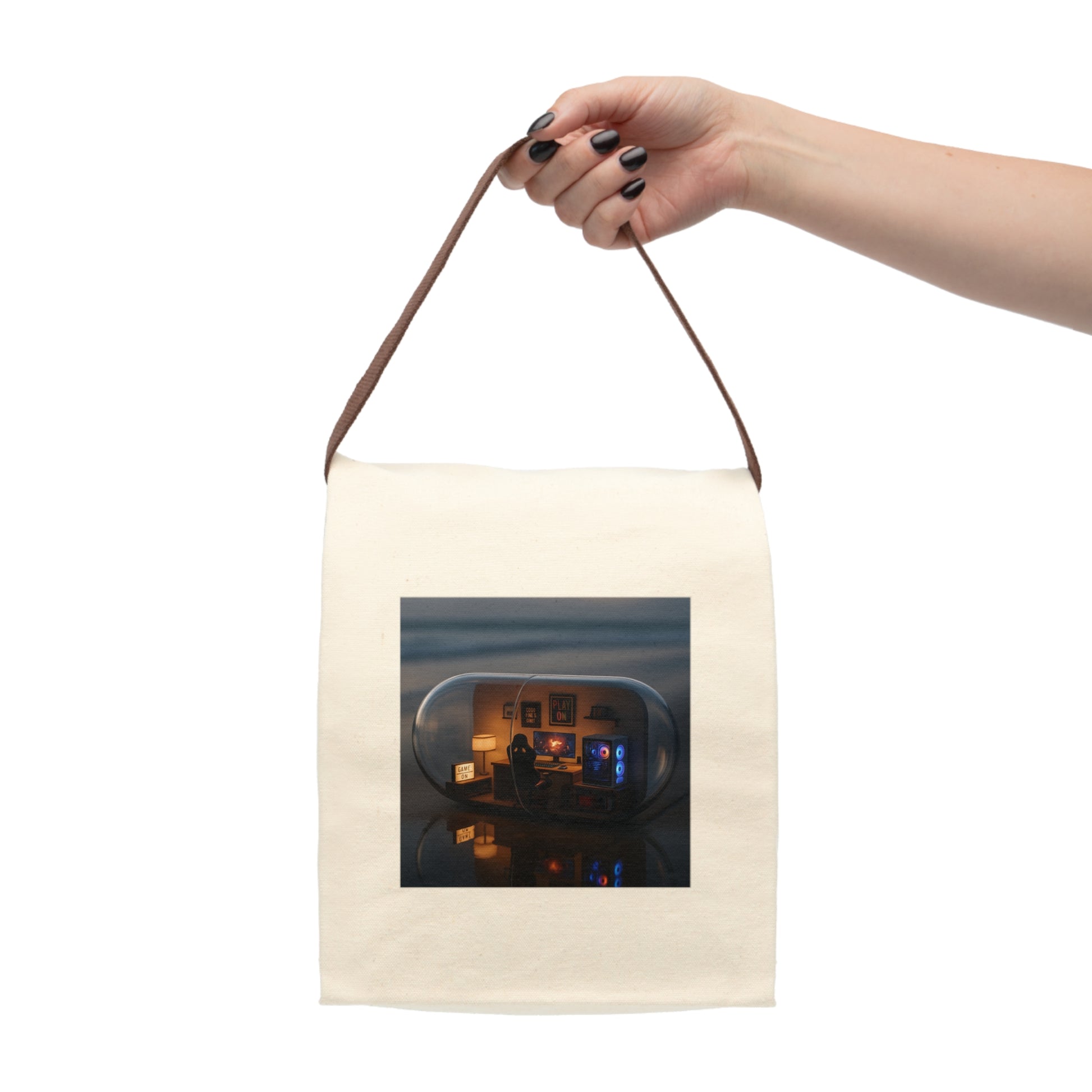 Cozy Canvas Lunch Bag With Strap, Aesthetic Lunch Tote, Eco-Friendly Meal Carrier, Cute Picnic Bag, Gift for Foodies