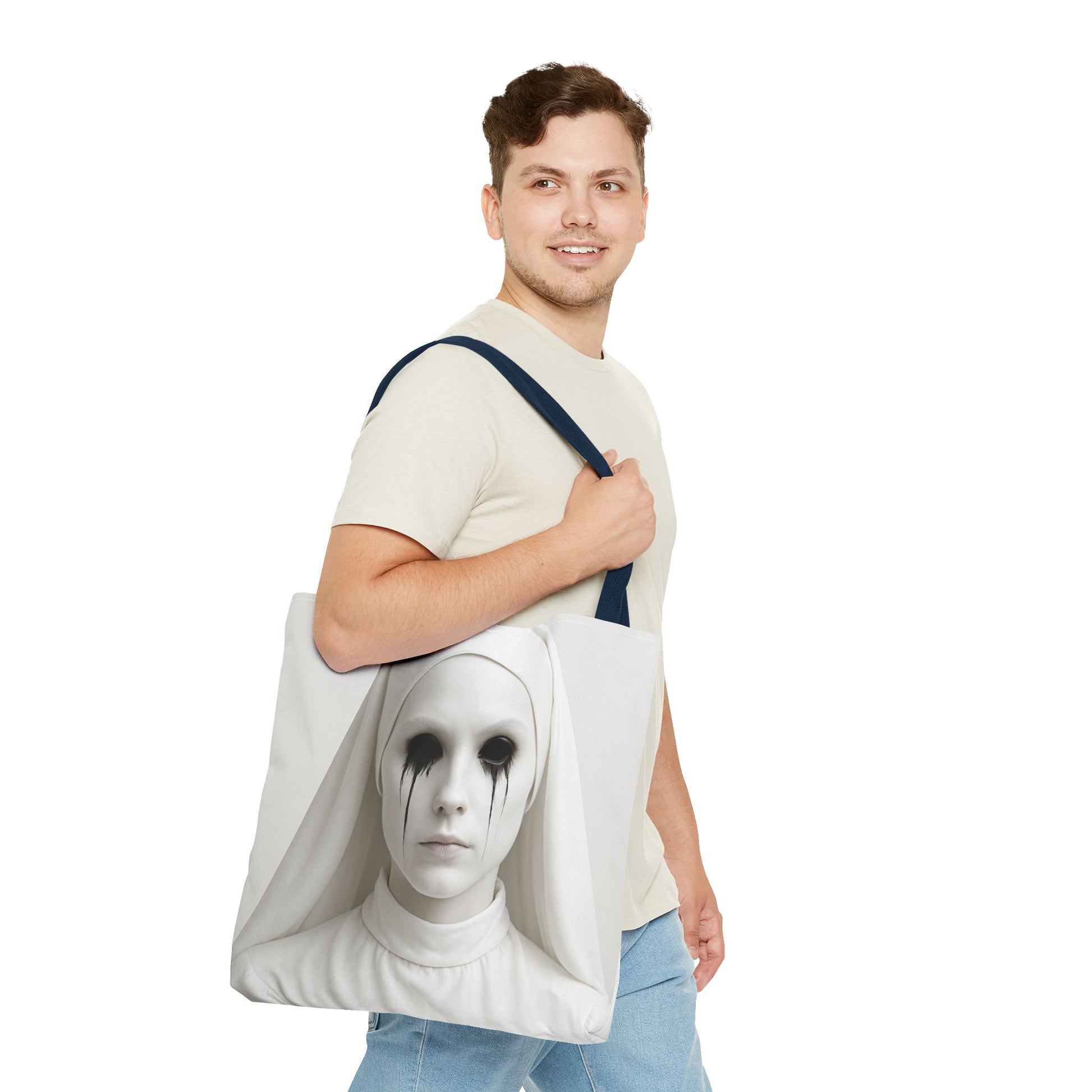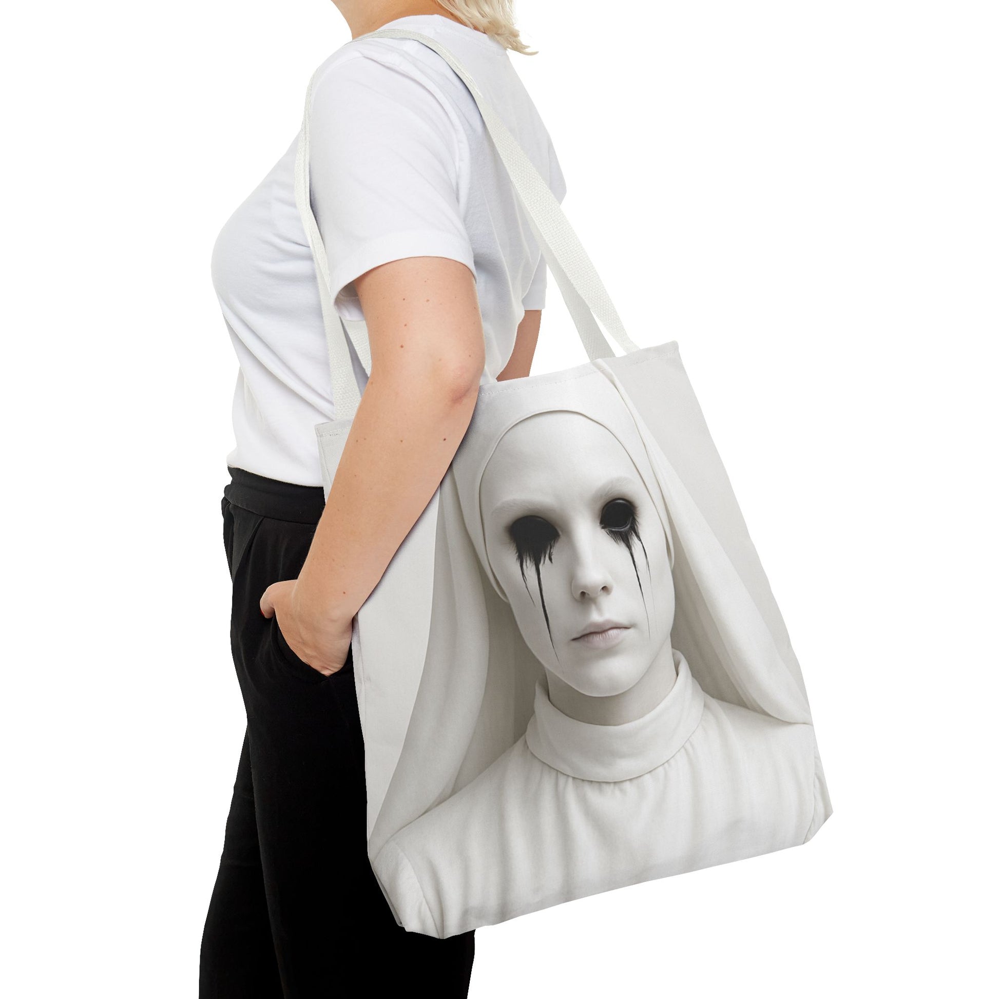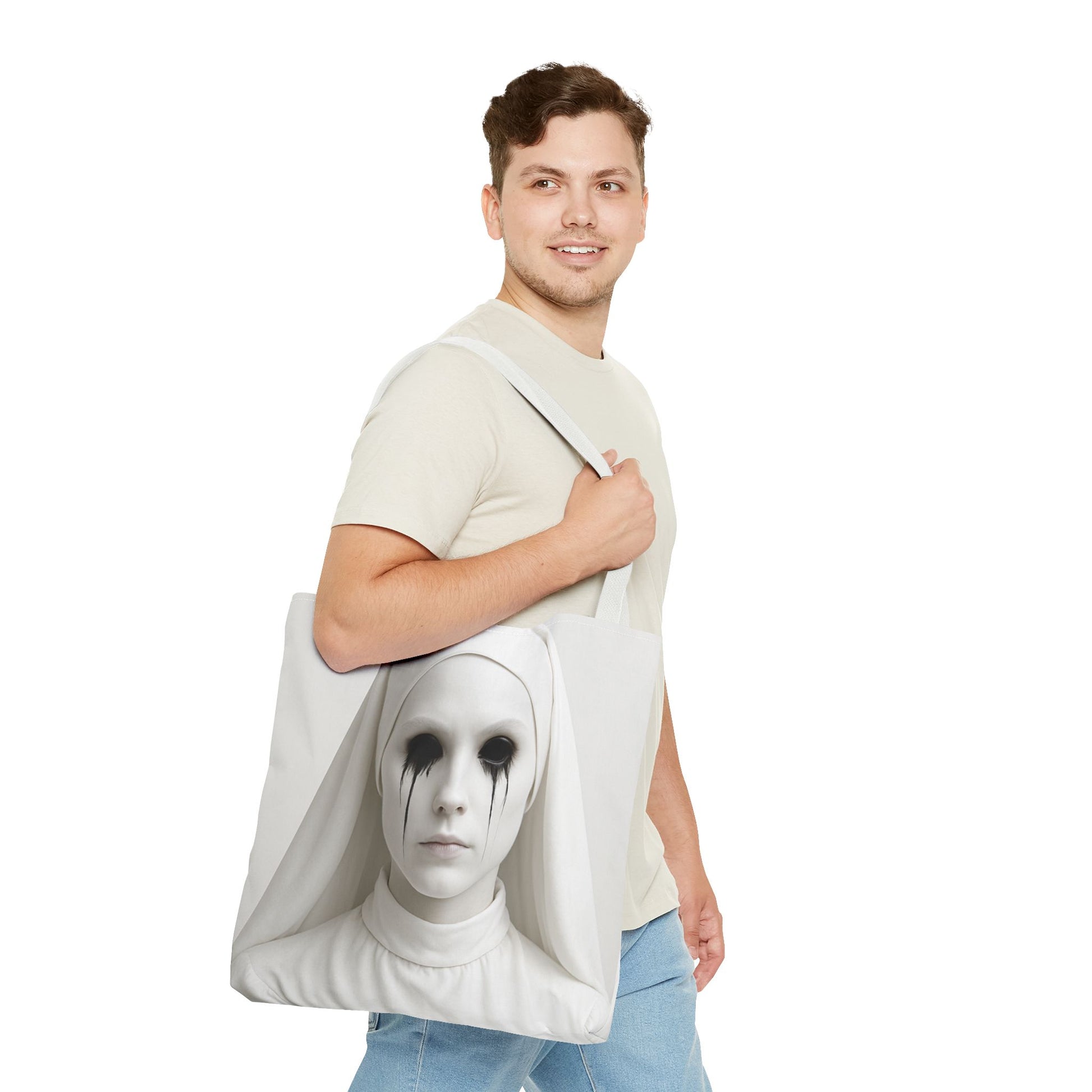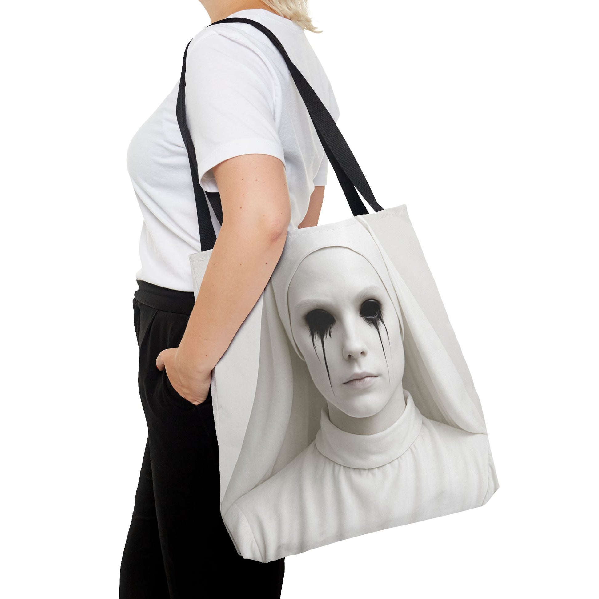 This striking Tote Bag is a perfect blend of style and functionality. Its unique design adds an edgy, artistic vibe, making it ideal for fashion-forward individuals. Lightweight yet durable, this bag is perfect for everyday use, whether you're heading to the gym, running errands, or enjoying a day out with friends. Its spacious interior accommodates all your essentials, from groceries to books, while the stylish handle options let you express your personality. This tote makes an excellent gift for artists, trendsetters, or anyone who appreciates bold design. Perfect for Halloween, everyday wear, or as a conversation starter at special events!