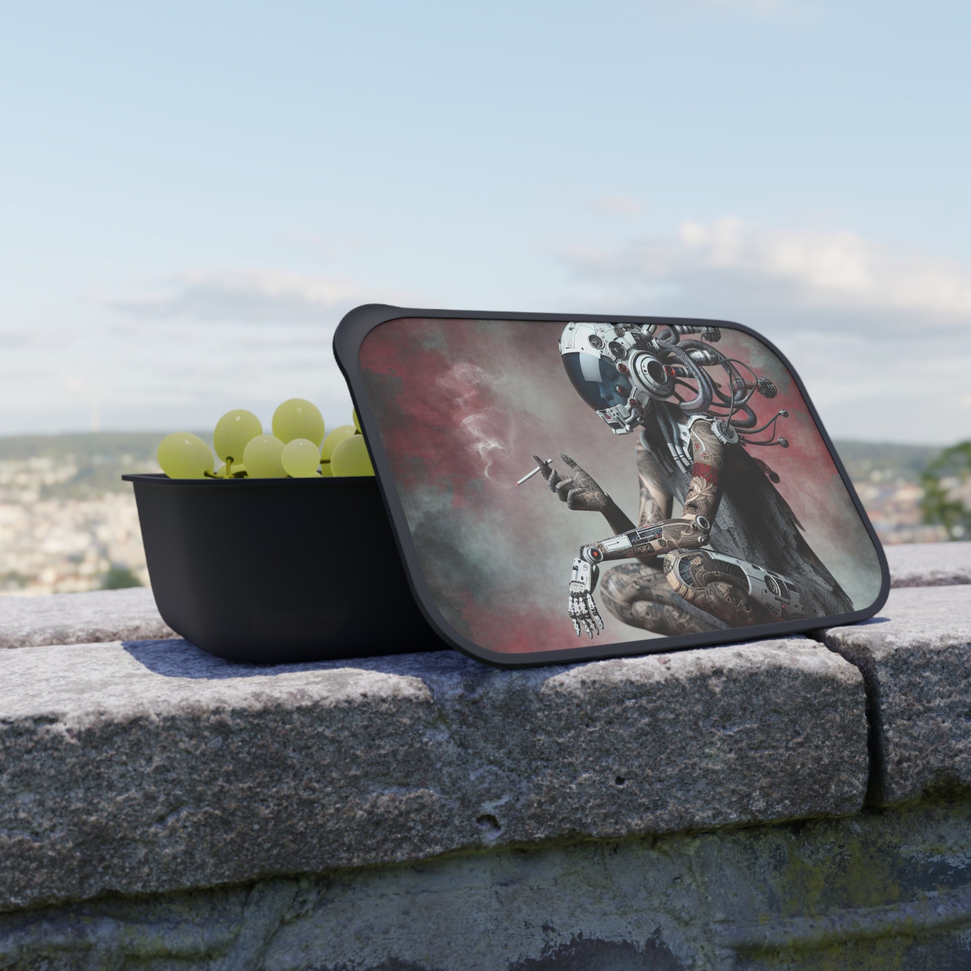 Futuristic Bento Box, Cyberpunk Lunch Container, Eco-Friendly Meal Prep, Artful Lunchbox, Gift for Tech Enthusiasts