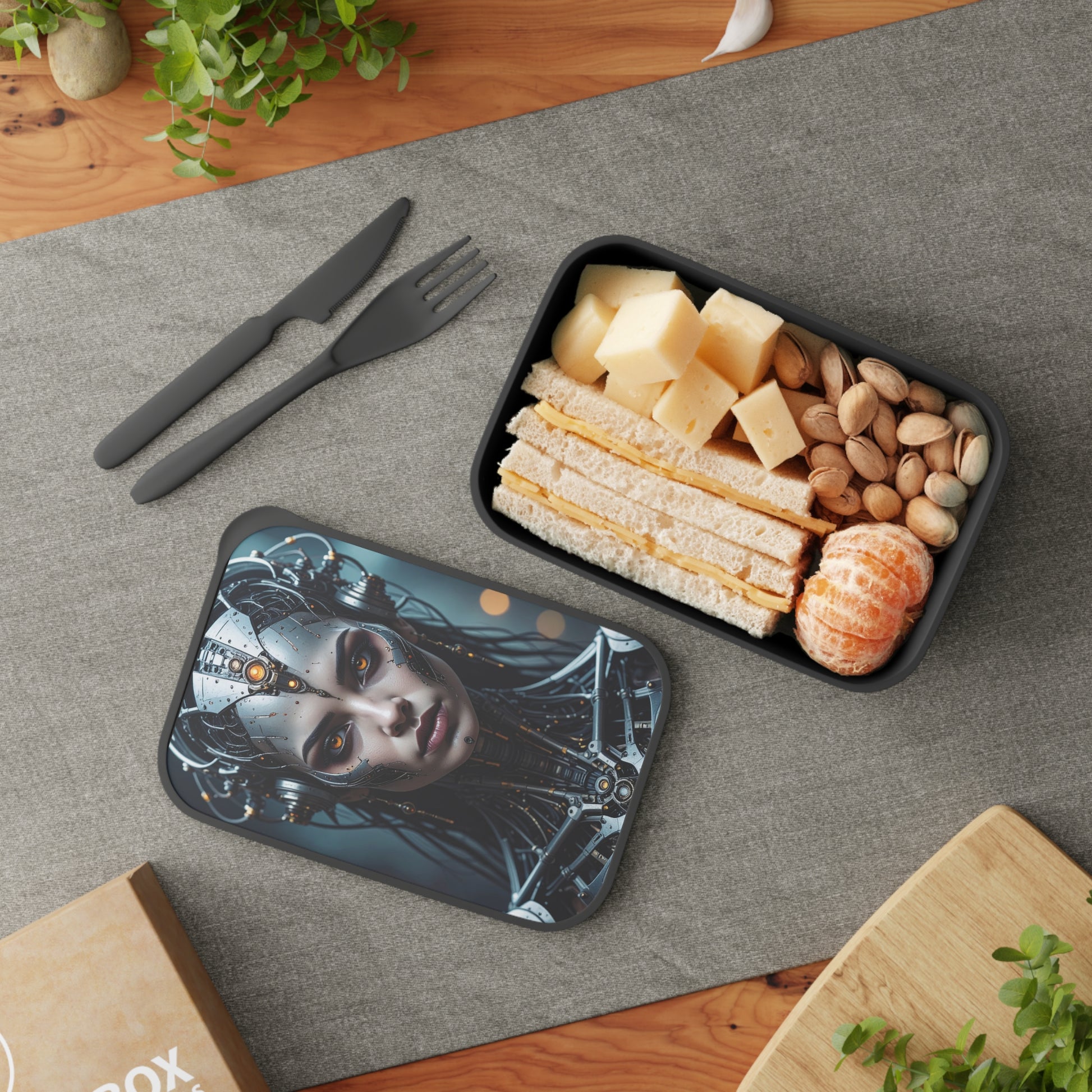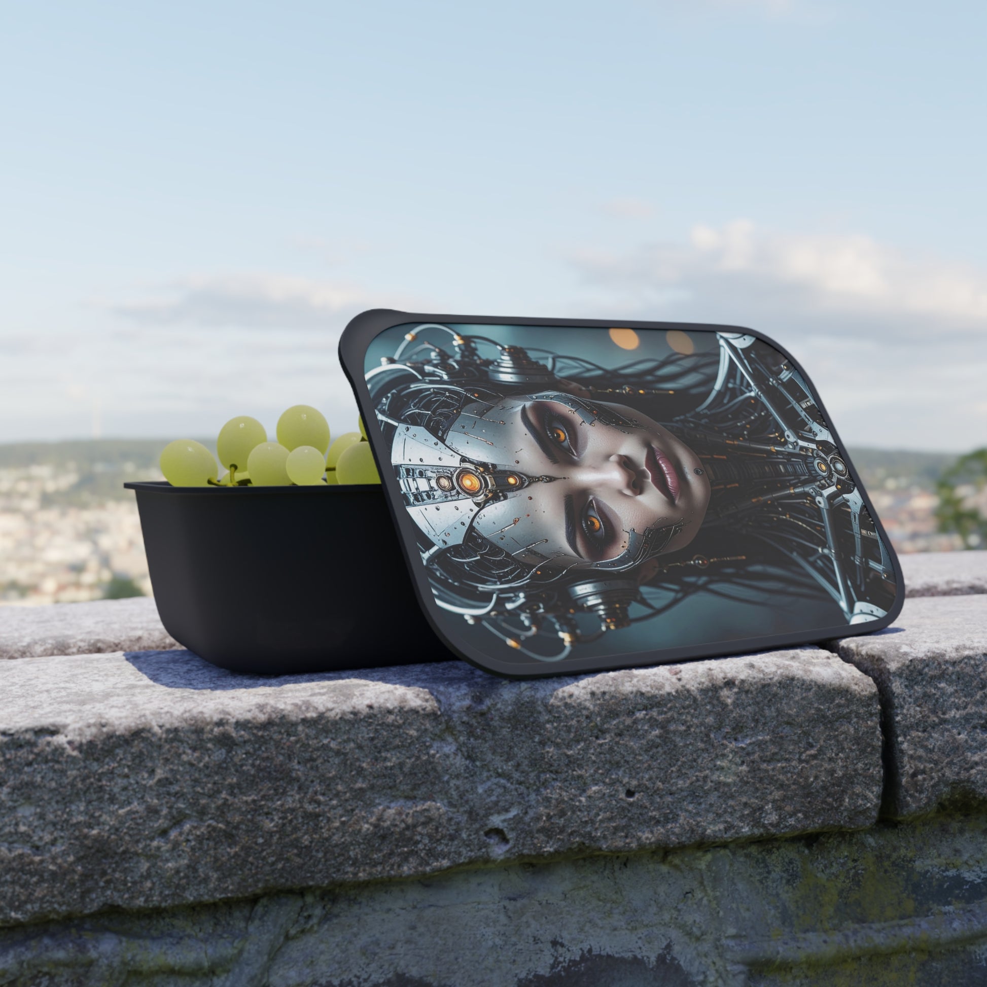 Futuristic Bento Box with Design, Cyberpunk Lunch Container, Stylish Meal Prep Box, Unique Gift for Tech Lovers, Eco-Friendly Food Storage