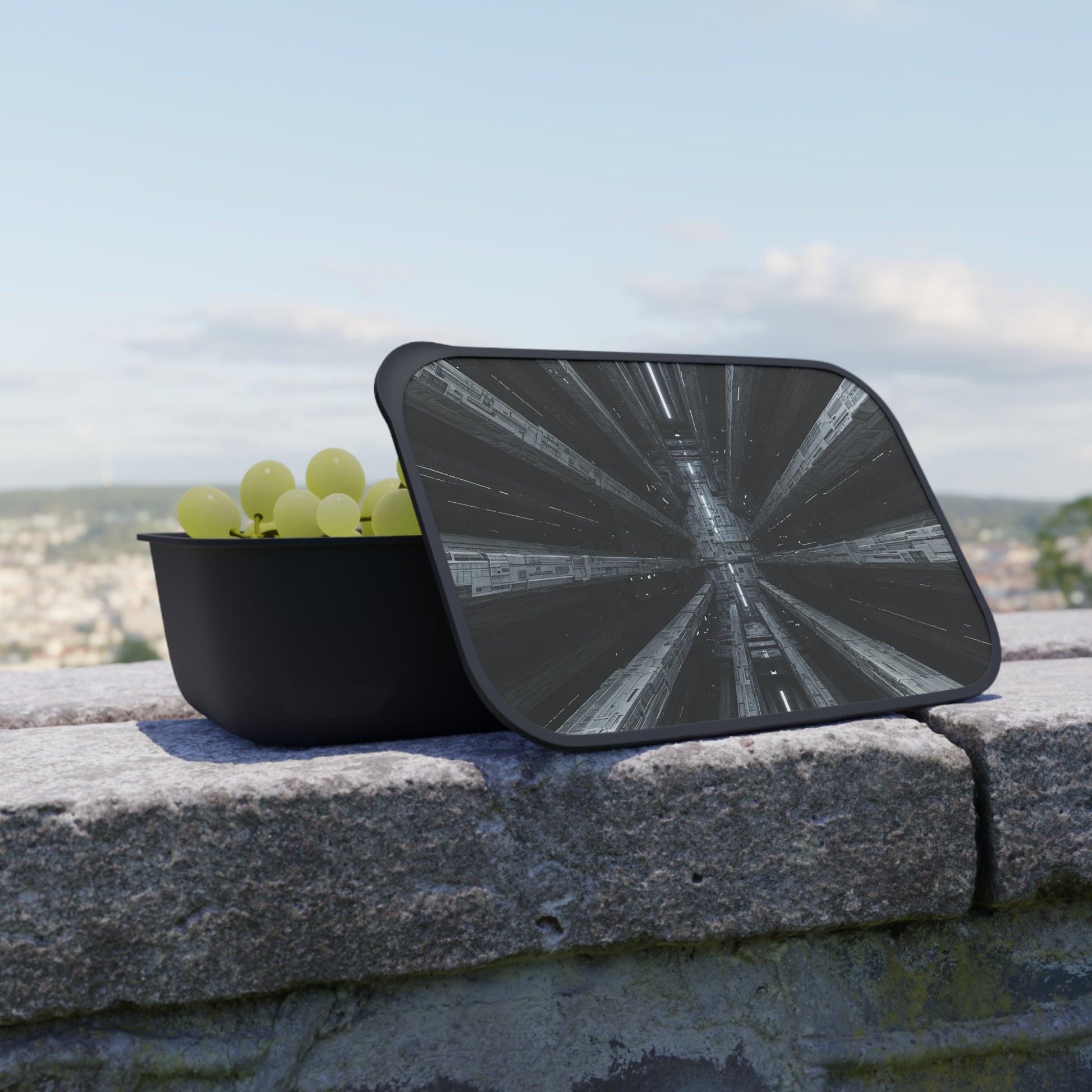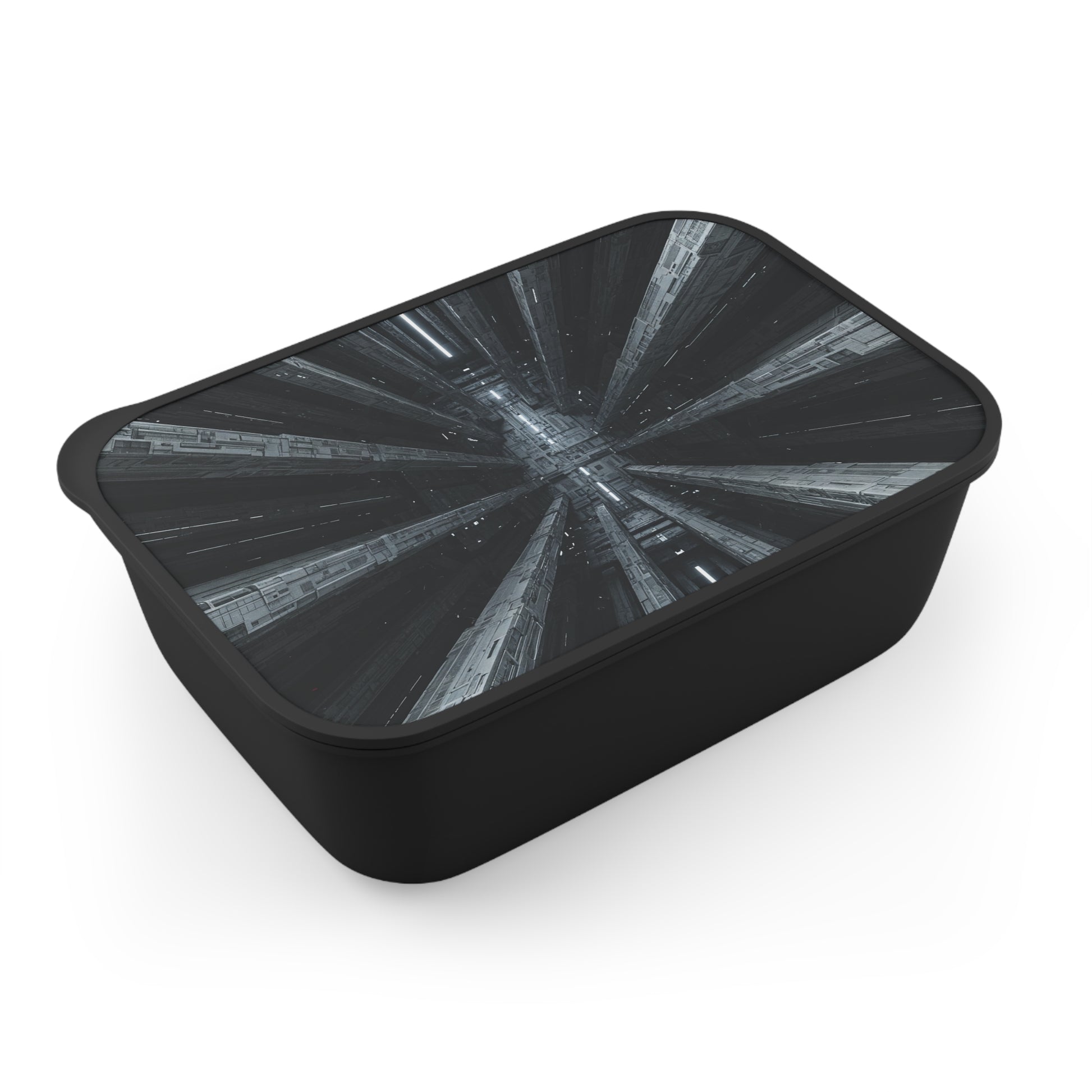 Futuristic Bento Box with Utensils | Stylish Meal Prep Container | Geometric Food Storage | Perfect Gift for Sci-Fi Lovers, Lunchbox