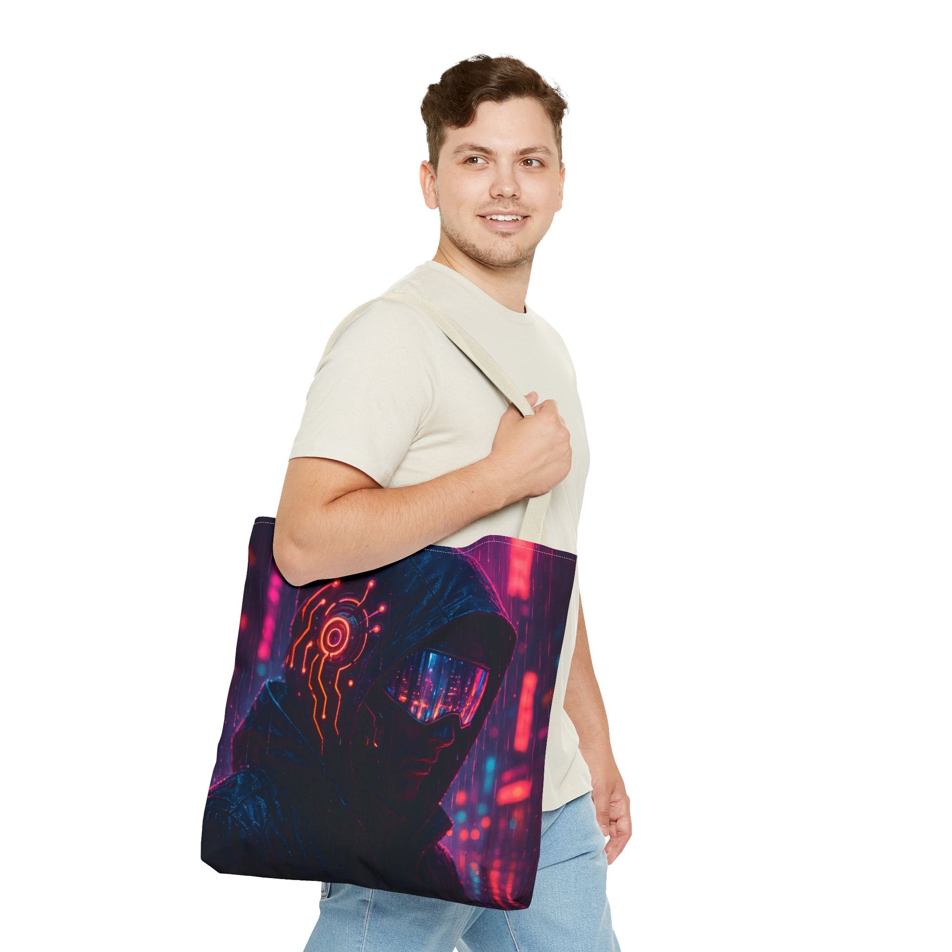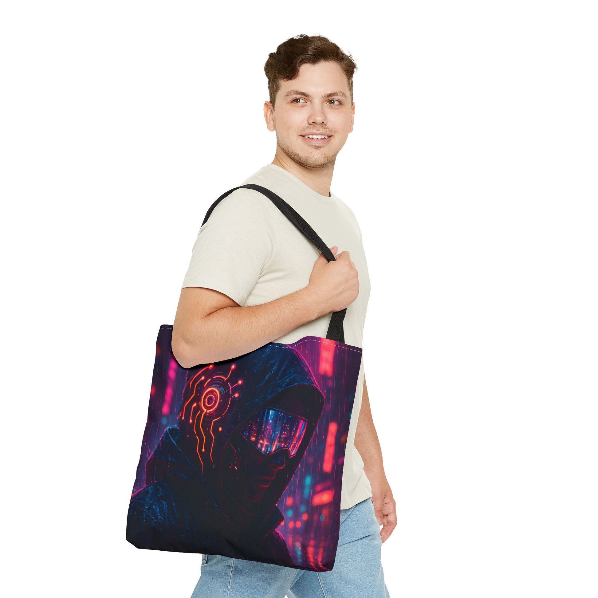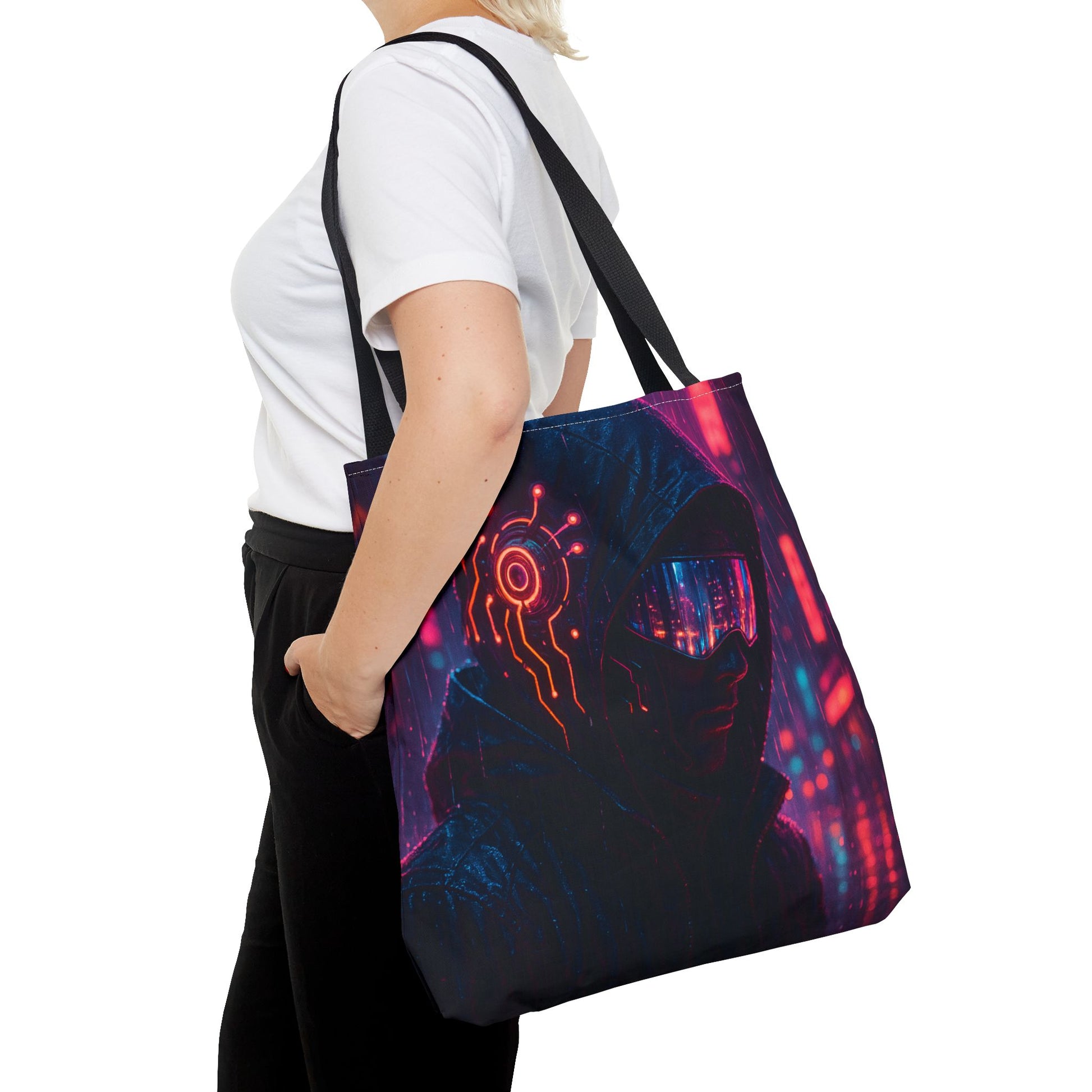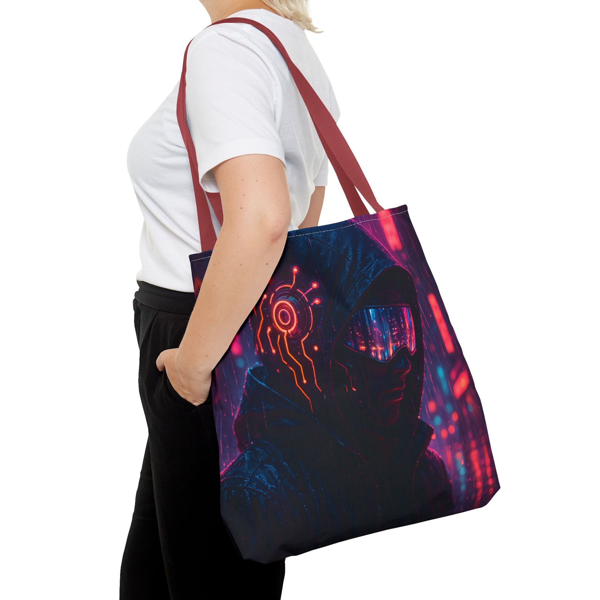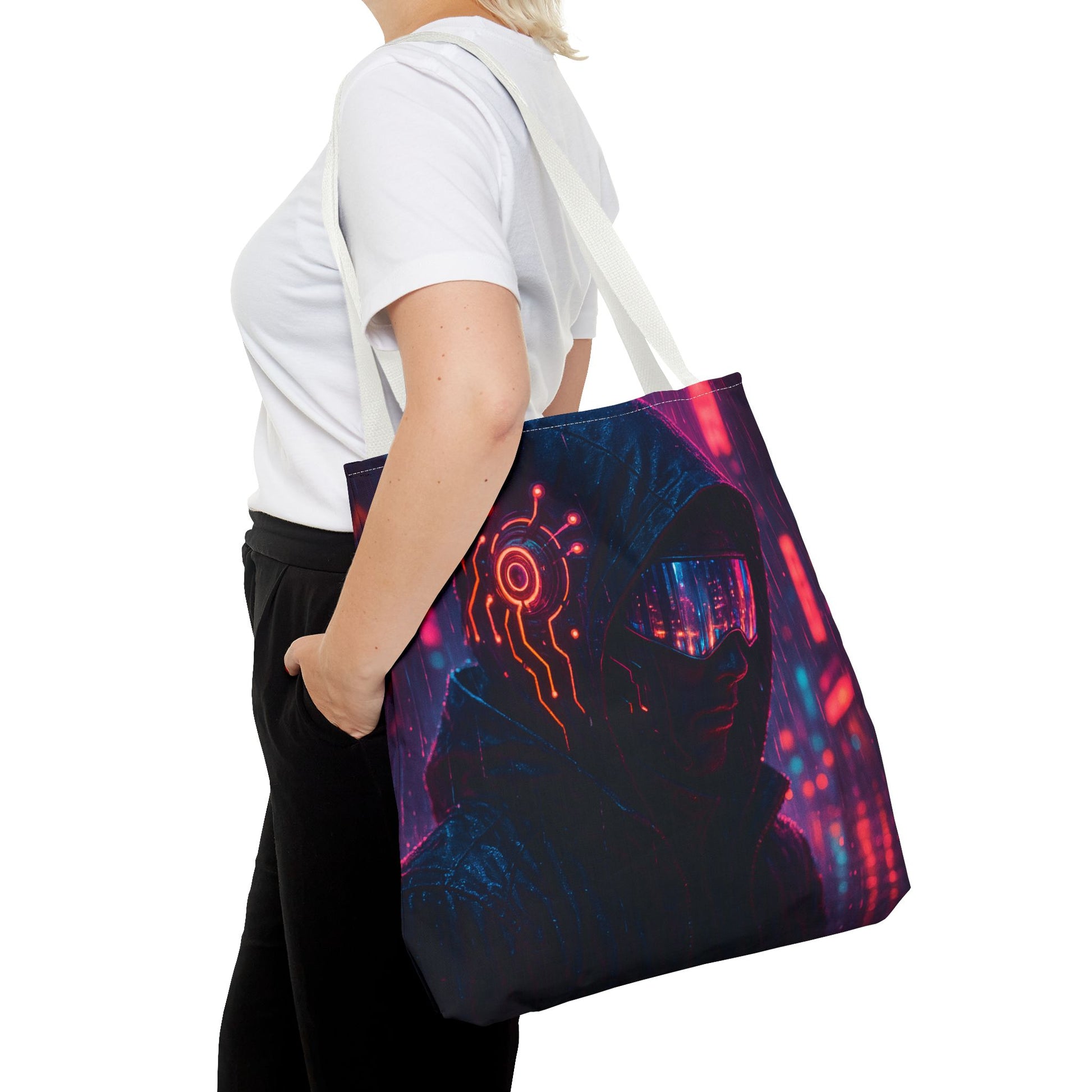 Futuristic Cyberpunk Tote Bag, Unique AOP Bag for Tech Lovers, Stylish Everyday Tote, Gift for Gamers, Sci-Fi Enthusiasts