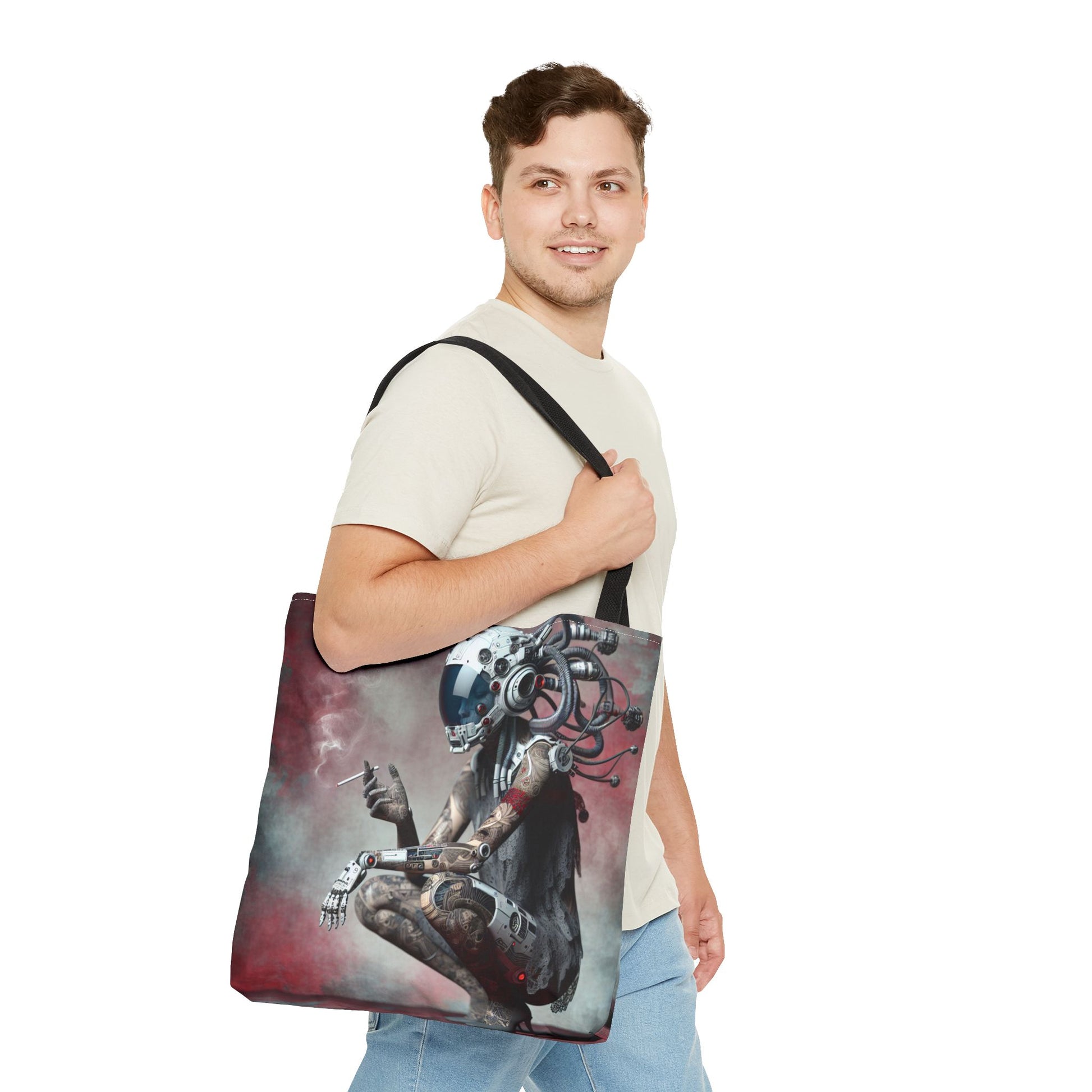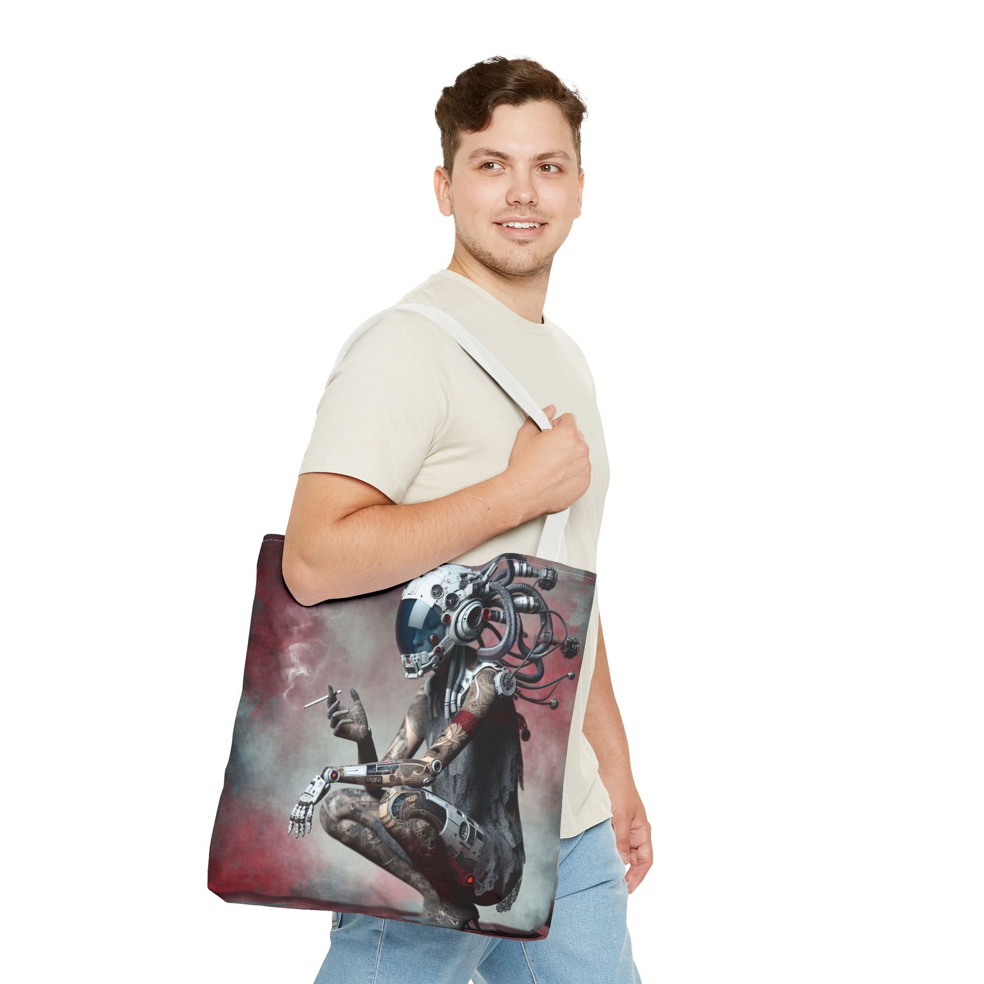 Futuristic Cyborg Tote Bag | Eco-Friendly Carryall for Sci-Fi Lovers, Gift for Tech Enthusiasts, Stylish Everyday Use