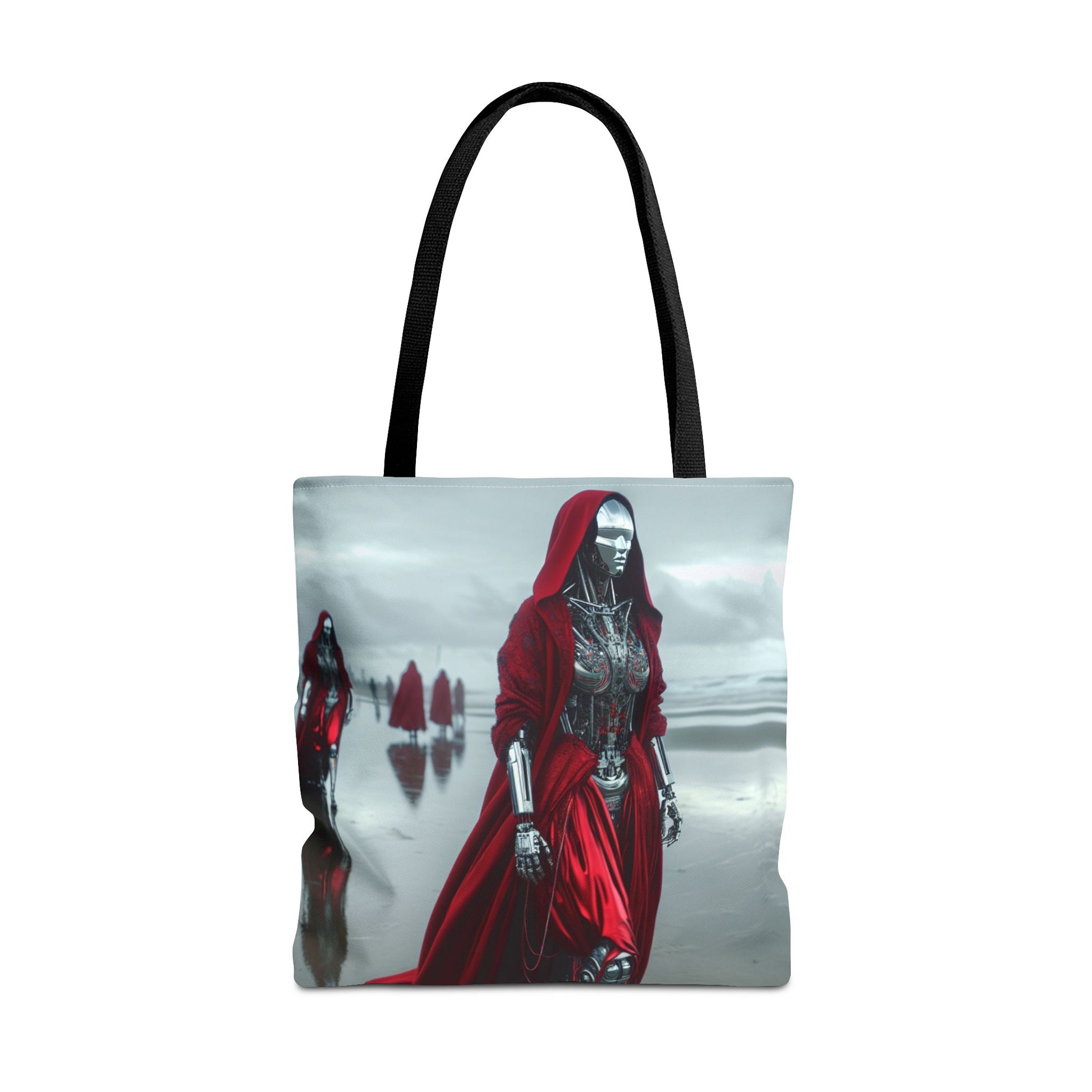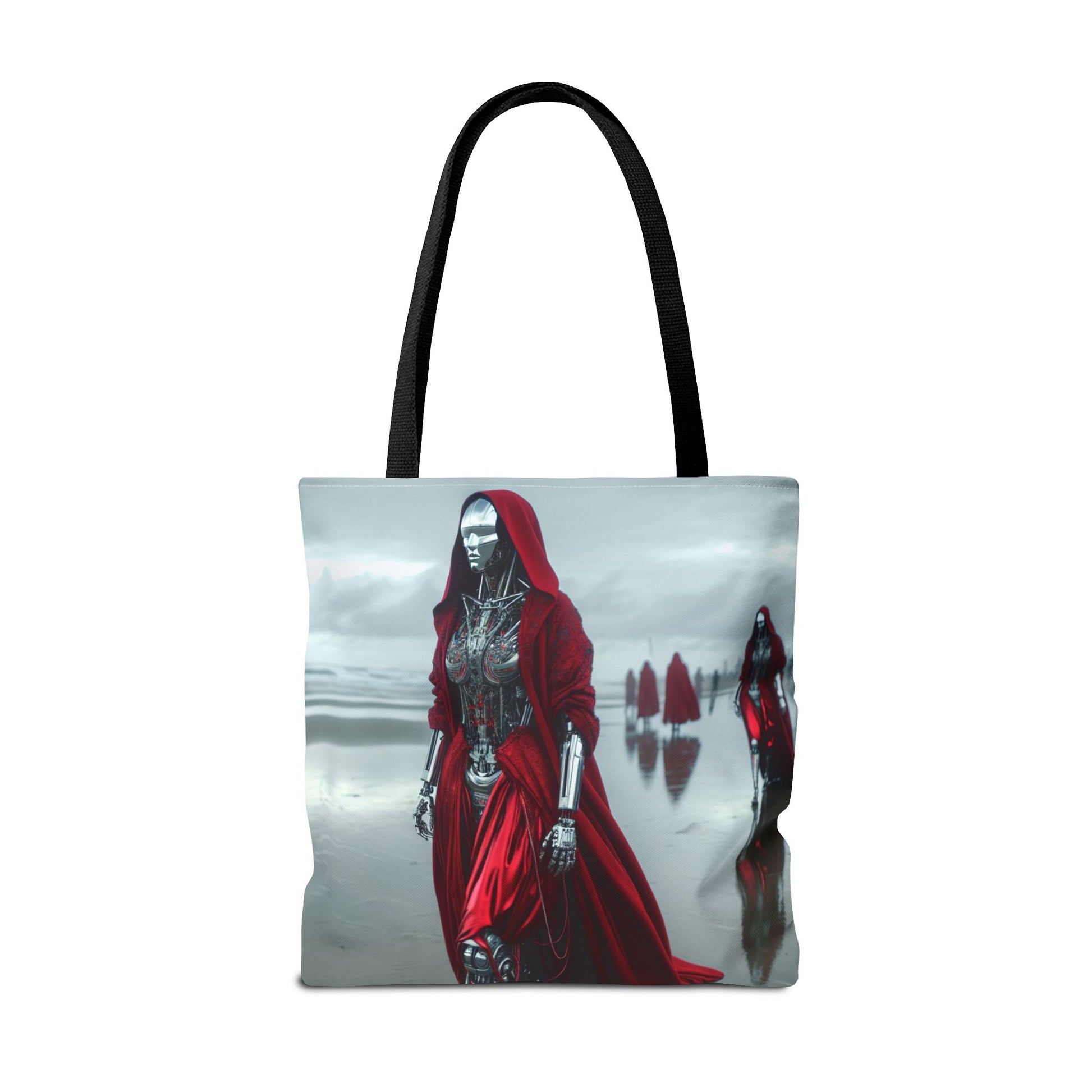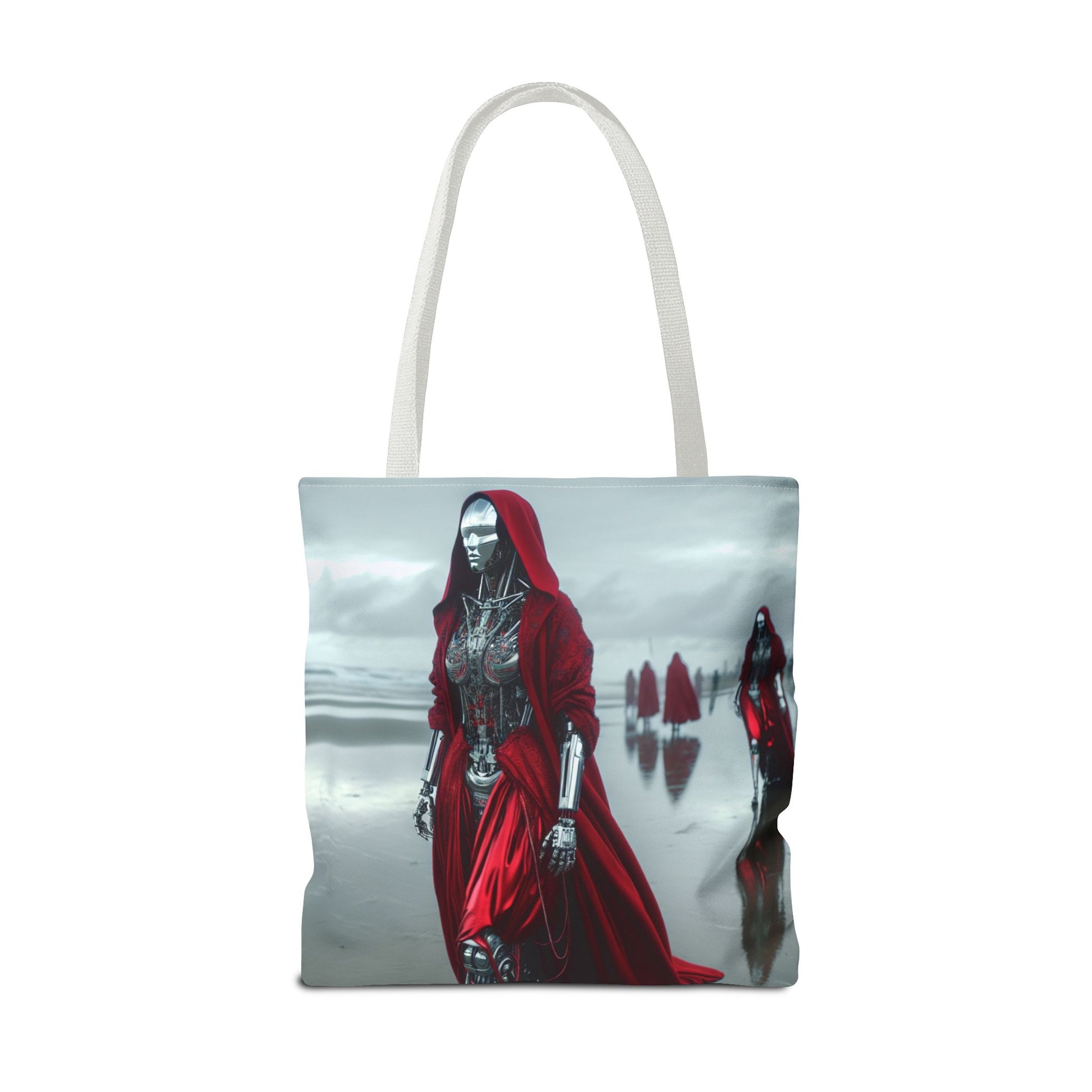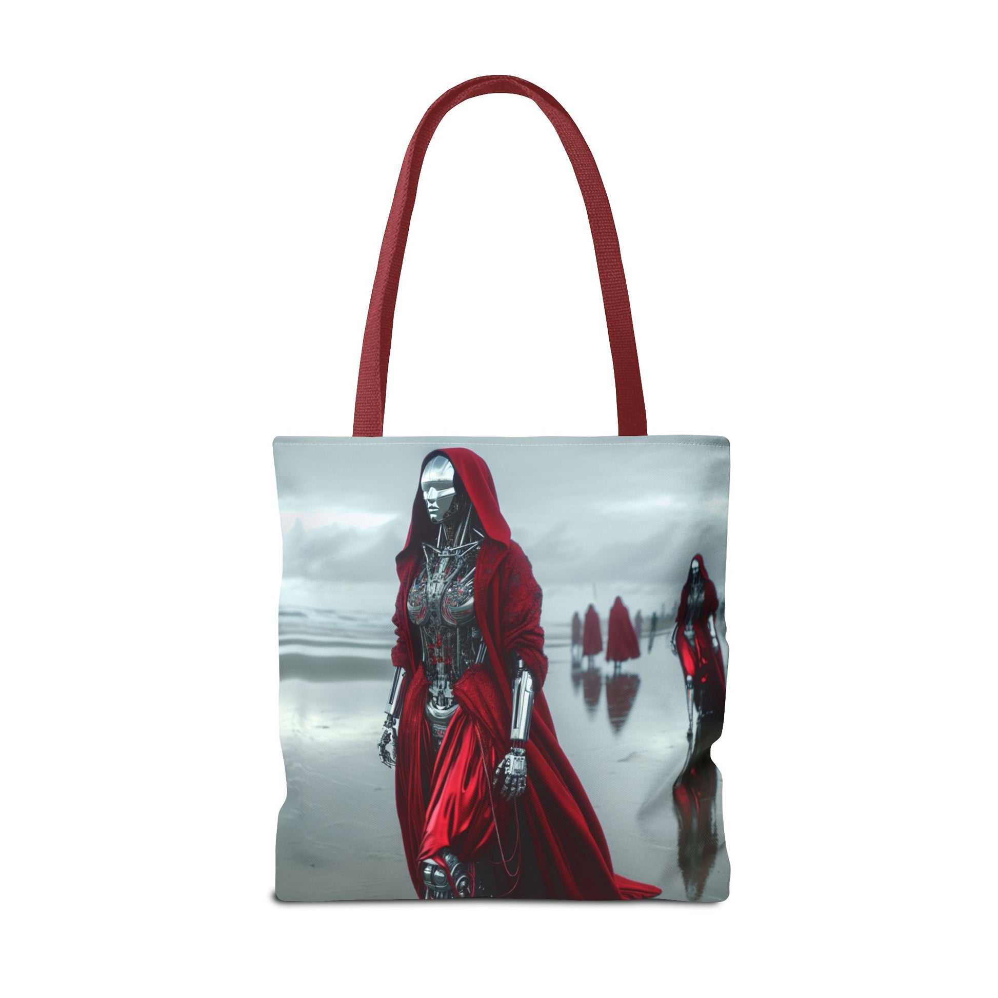 Futuristic Red Hooded Tote Bag, Eco-Friendly Shopping Tote, Stylish Reusable Bag, Perfect for Gifts, Fashion Statement