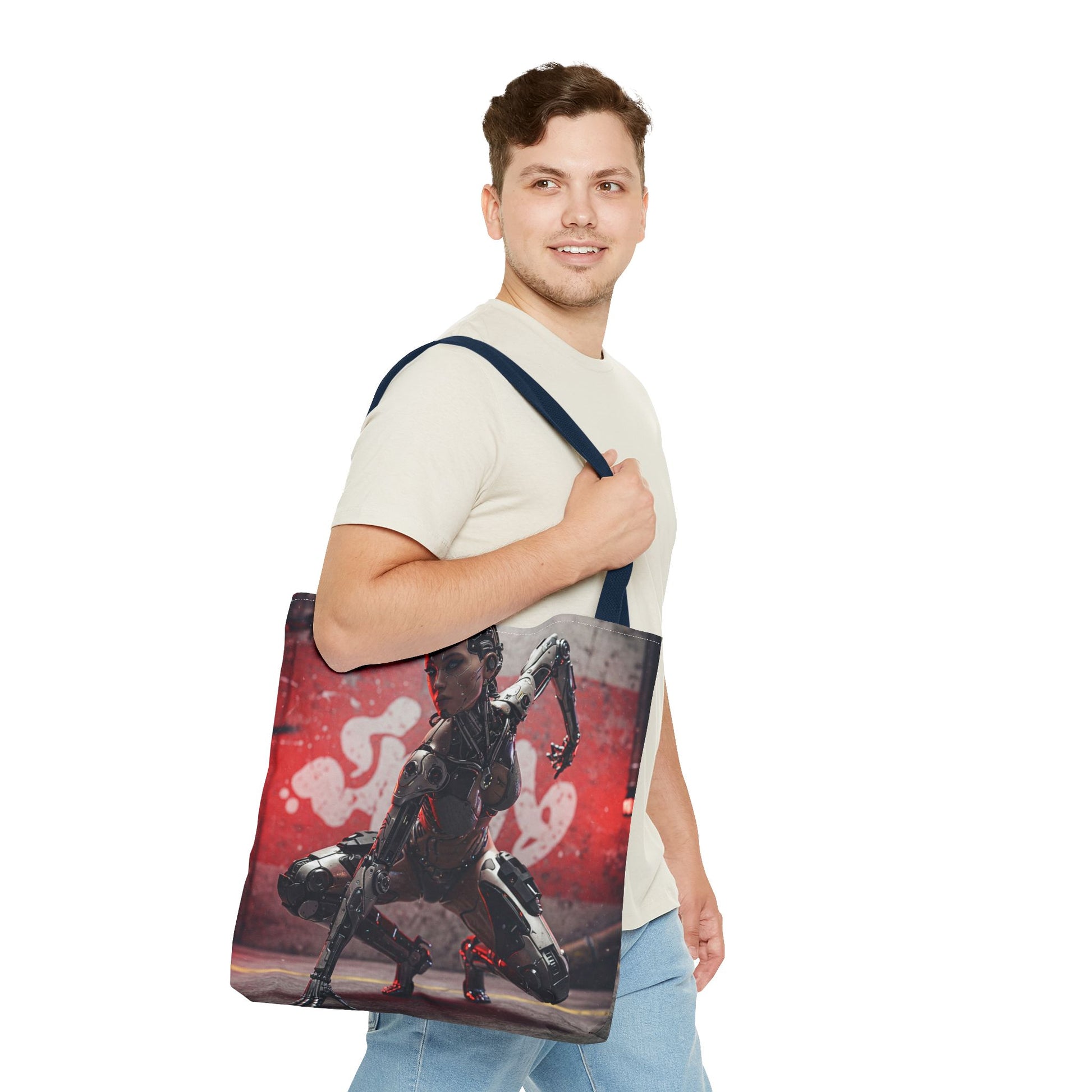 Futuristic Sci-Fi Tote Bag, Stylish Shopping Bag, Cyberpunk Accessory, Gift for Tech Lovers, Artwork Tote, Unique Canvas Bag