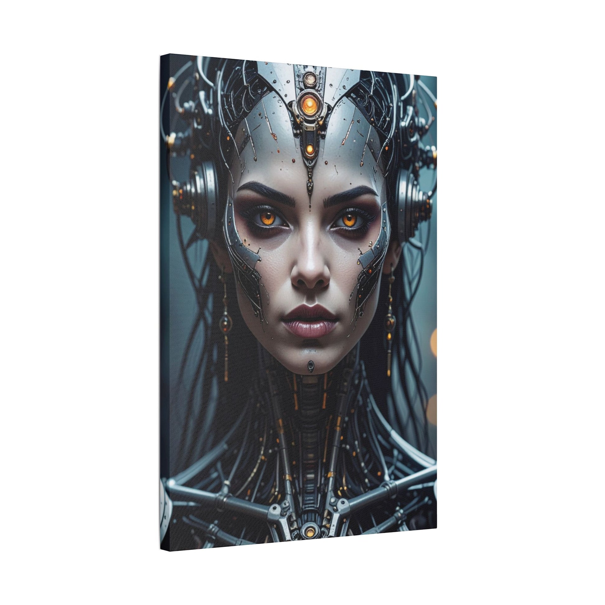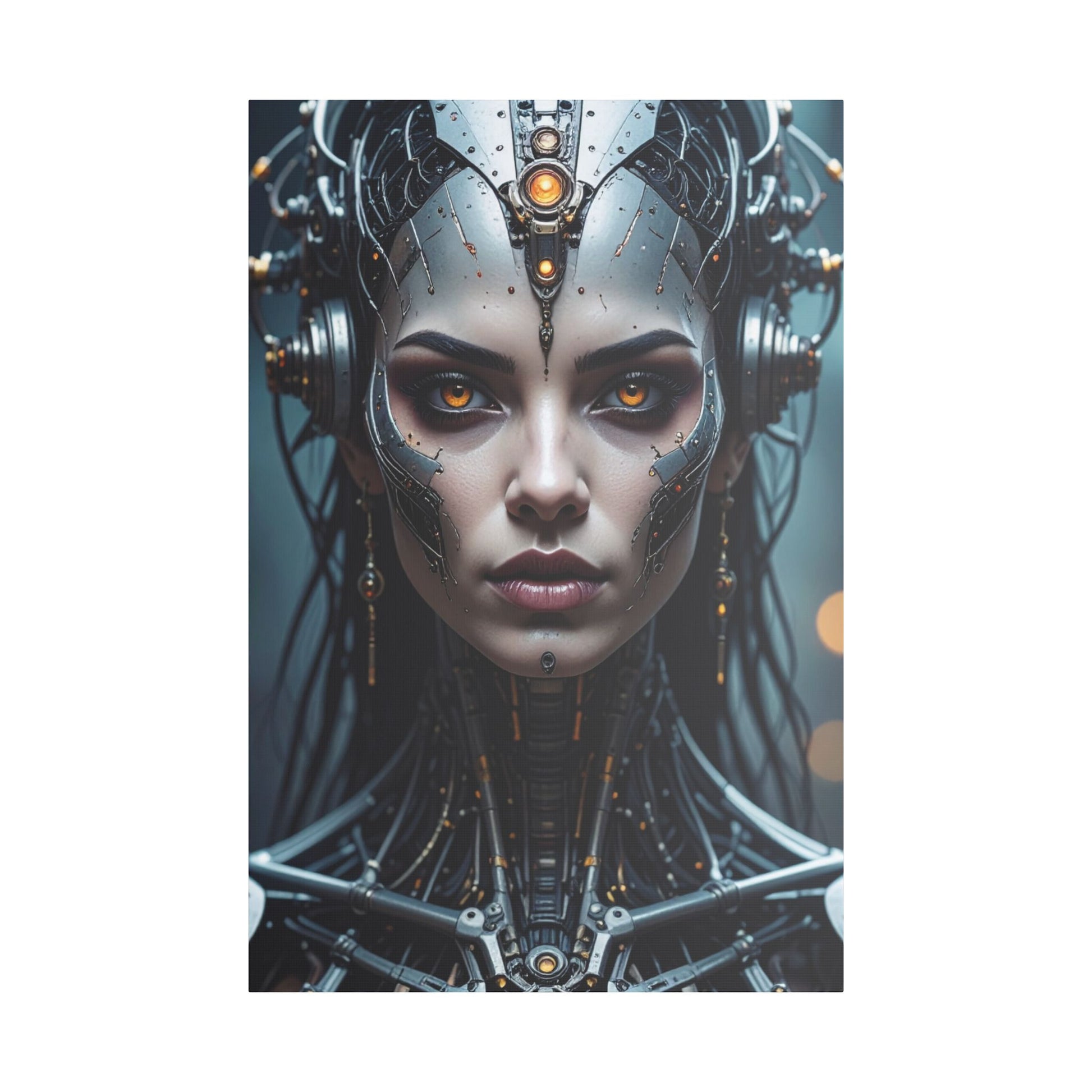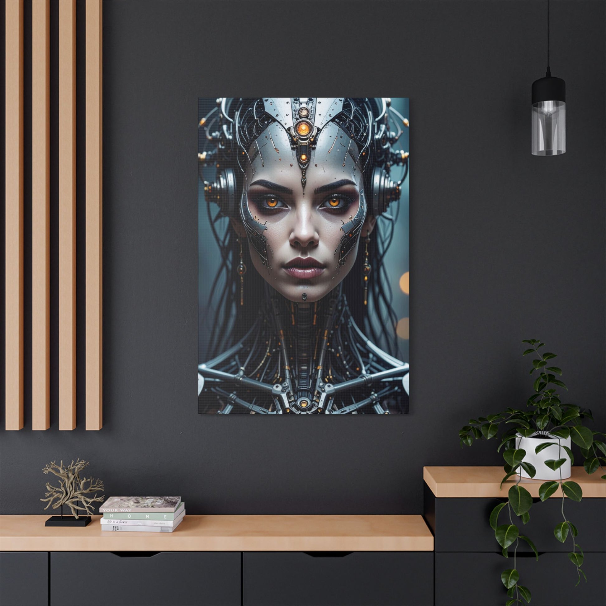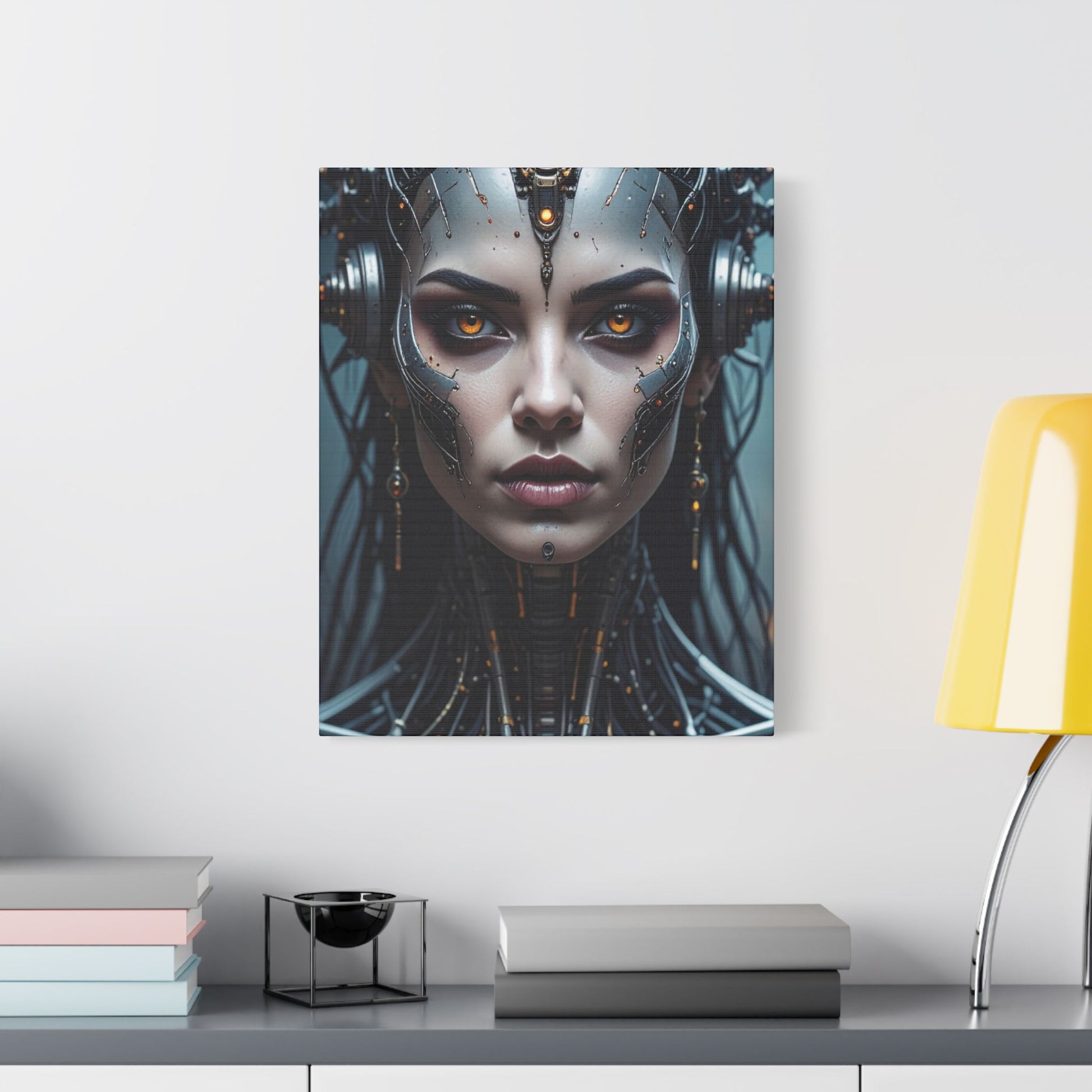 Futuristic Stretched Canvas Art, Cyberpunk Wall Décor, Unique Home Decor, Robot Portrait, Gothic Art Giveaway