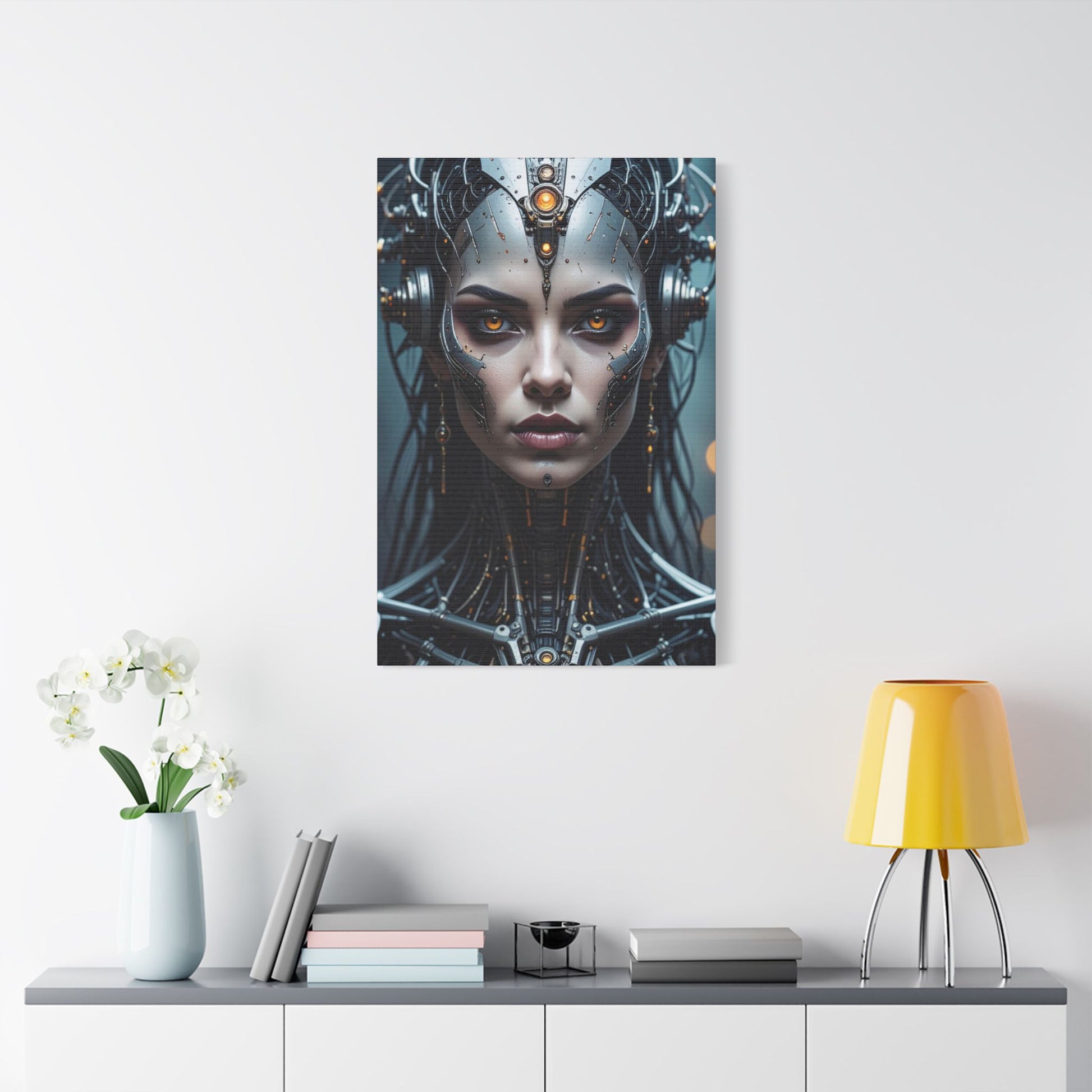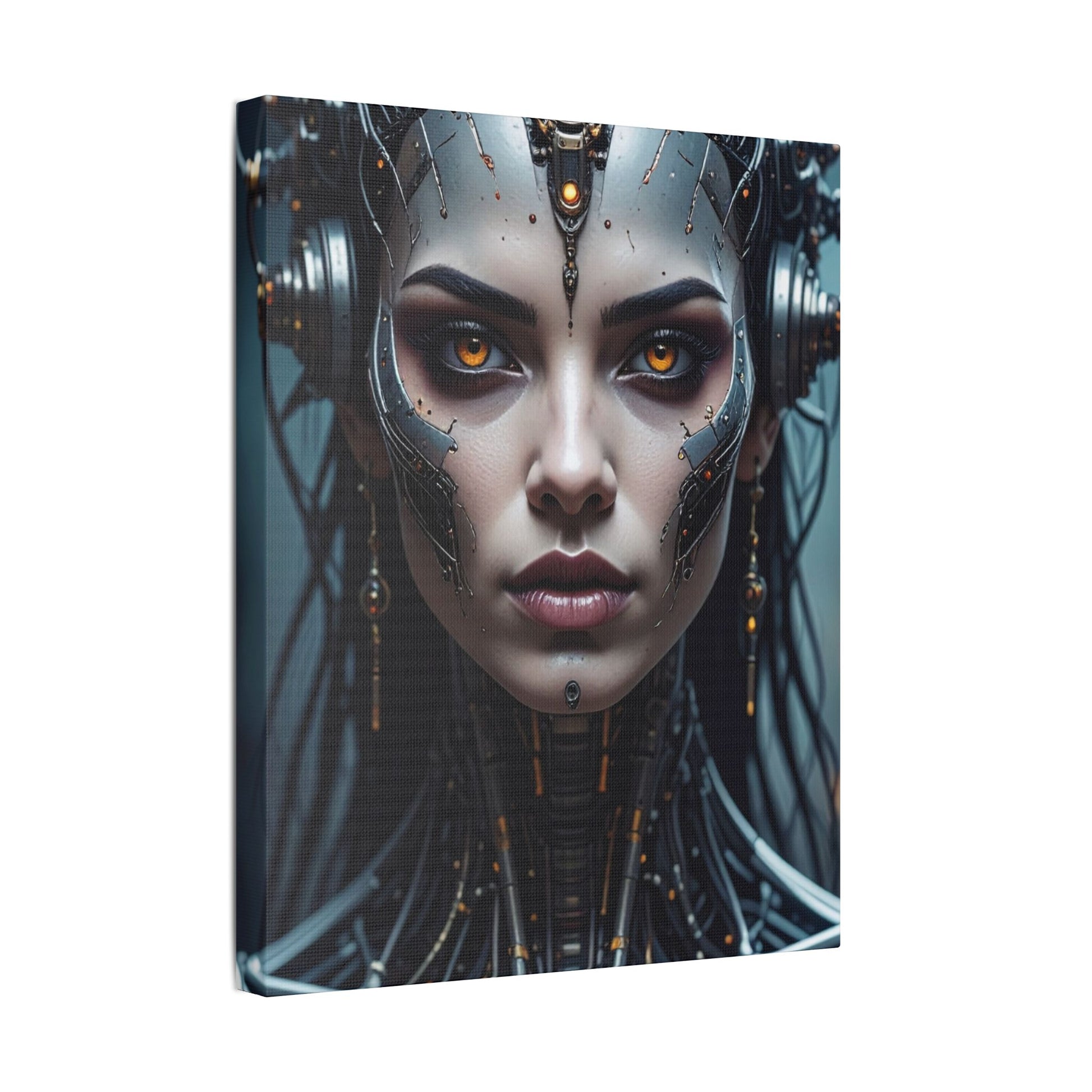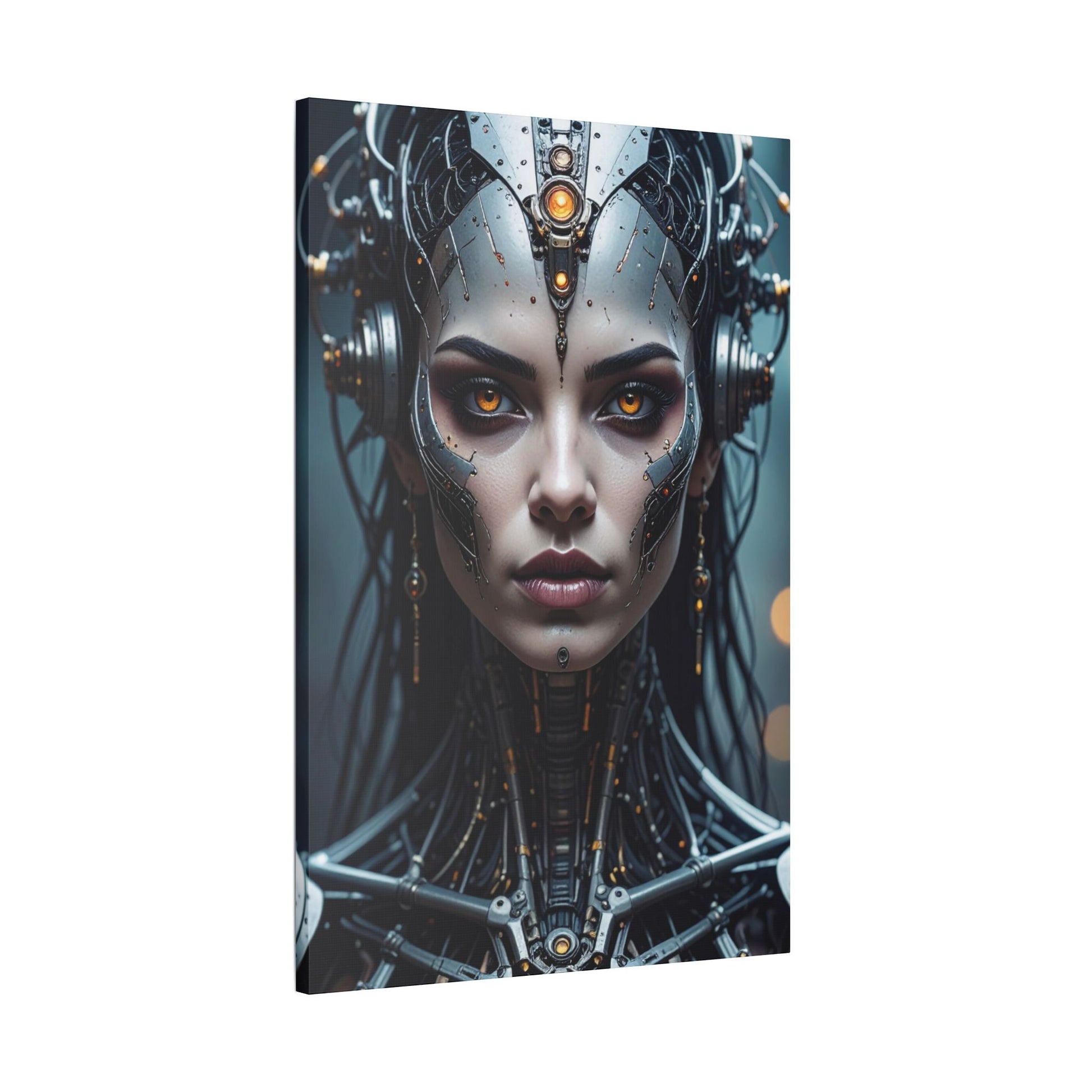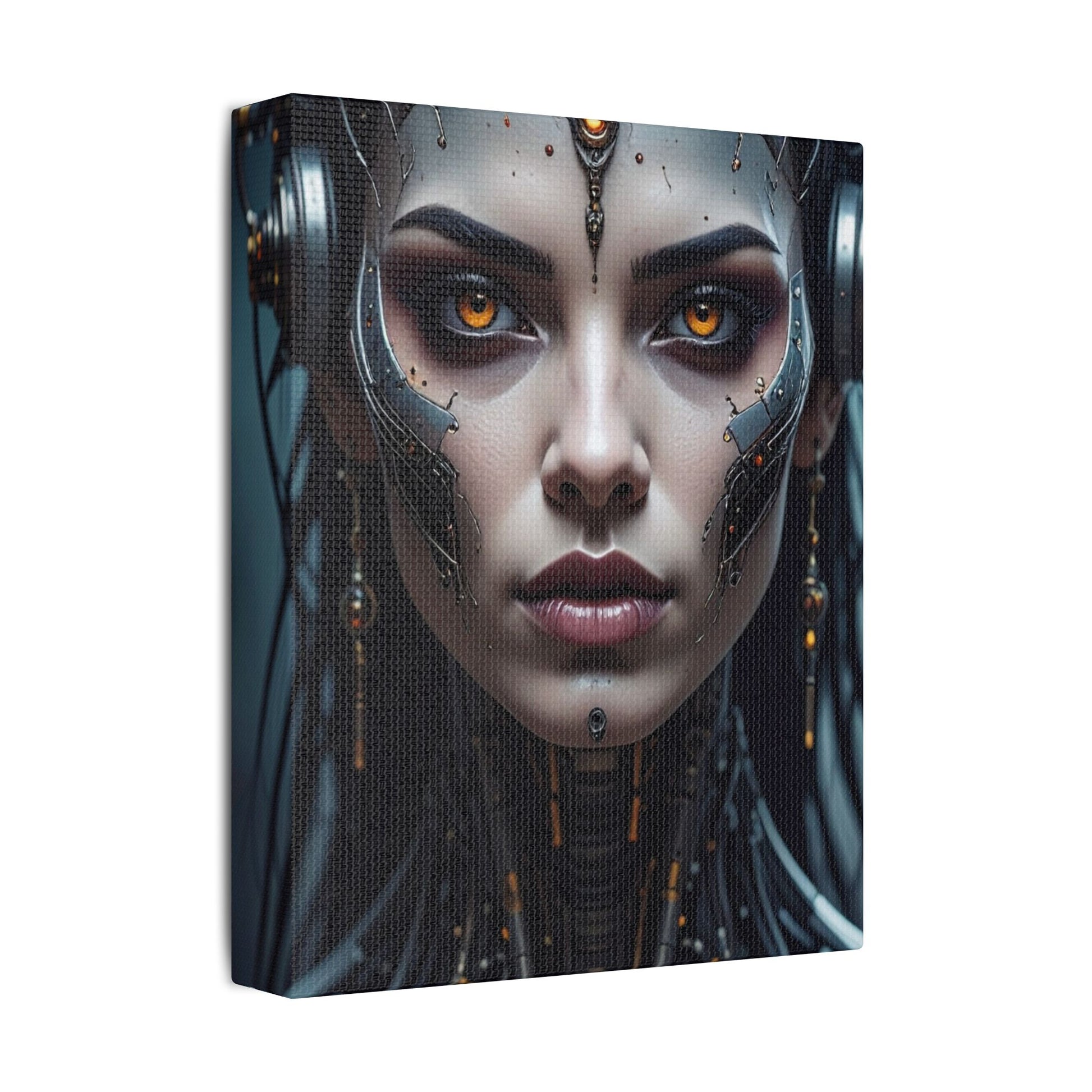 Futuristic Stretched Canvas Art, Cyberpunk Wall Décor, Unique Home Decor, Robot Portrait, Gothic Art Giveaway