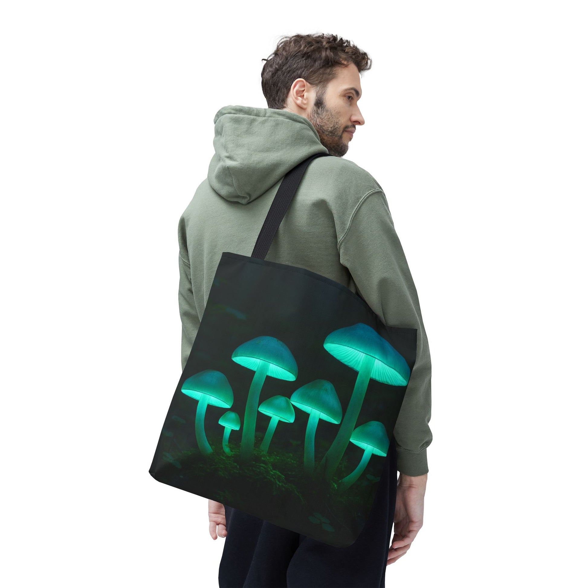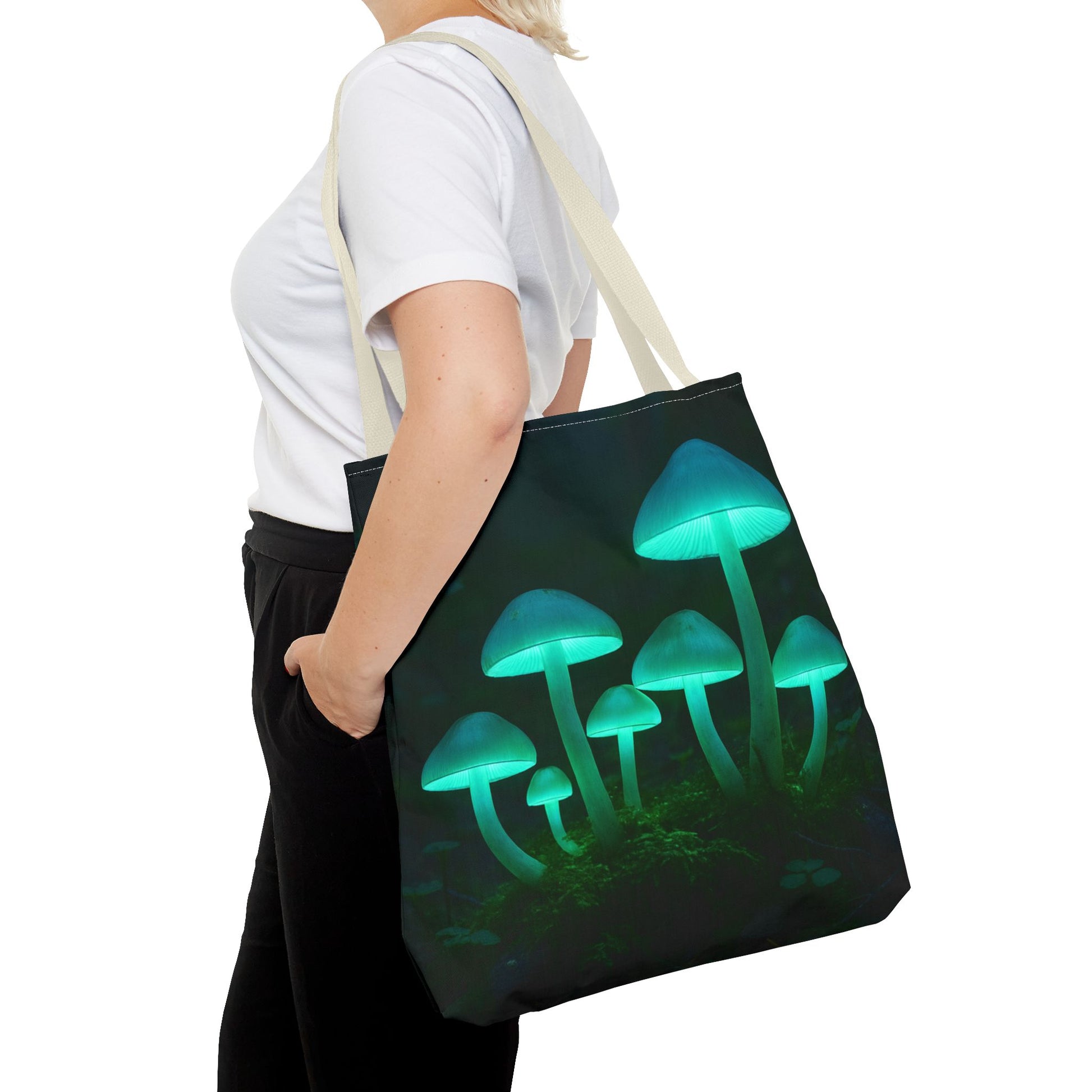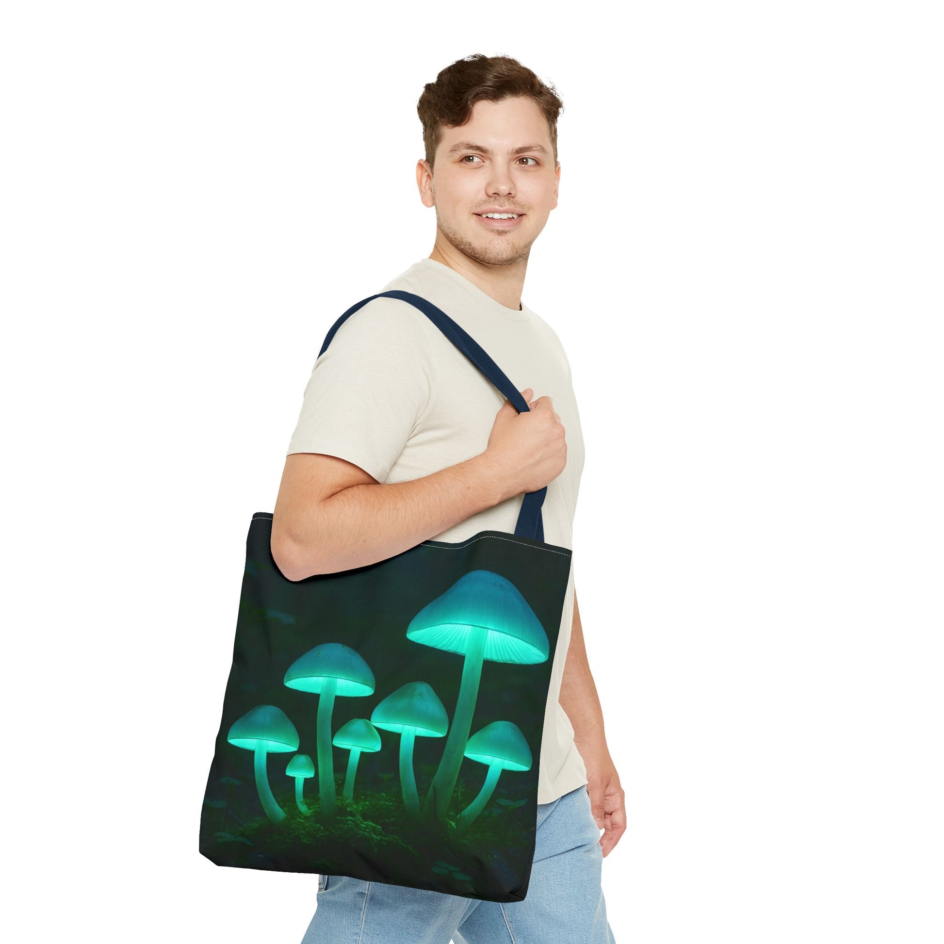 Elevate your style with this stunning Tote Bag, featuring a unique design inspired by enchanting bioluminescent mushrooms. Crafted for both durability and elegance, this bag offers a perfect blend of functionality and aesthetic appeal. Ideal for eco-conscious shoppers and mushroom enthusiasts alike, it carries a touch of the whimsical into everyday life.