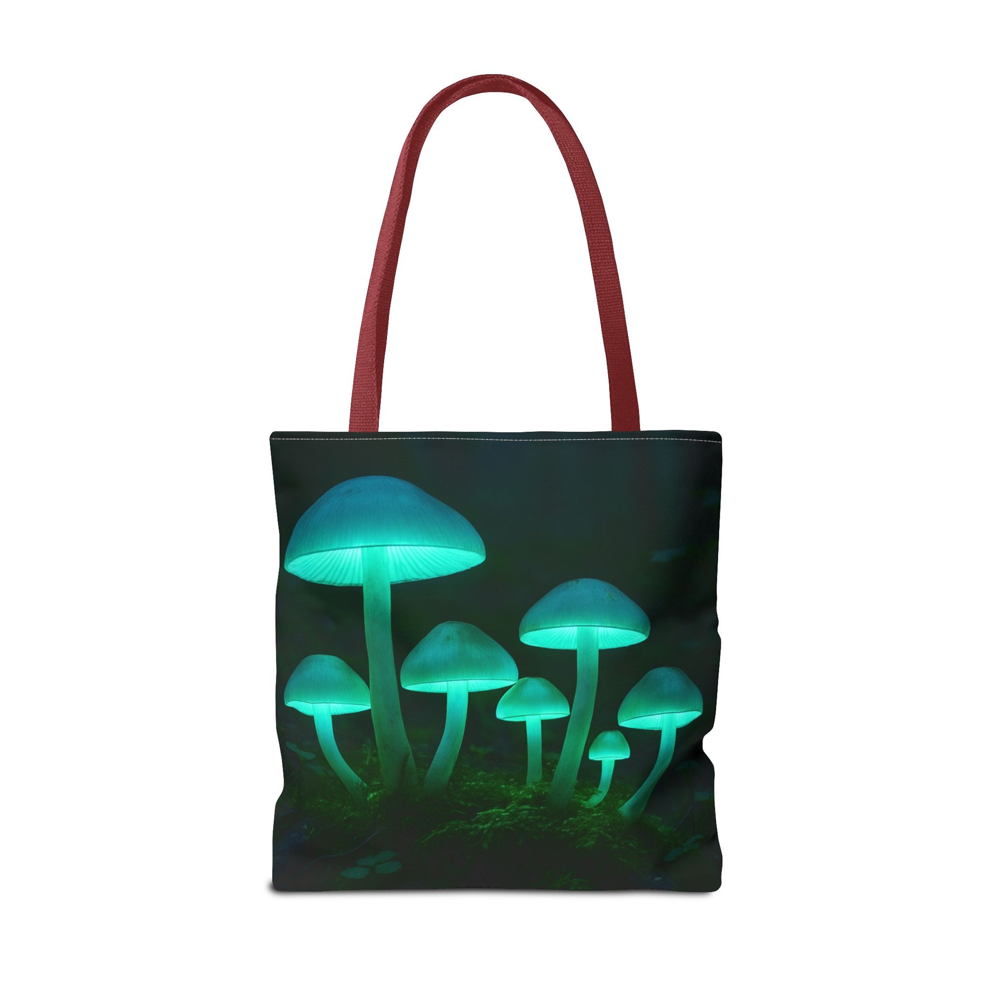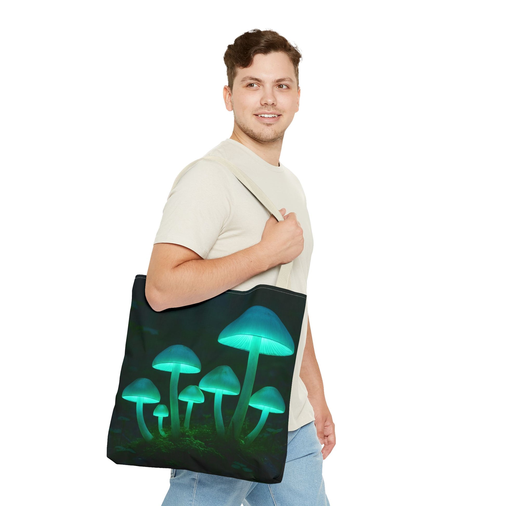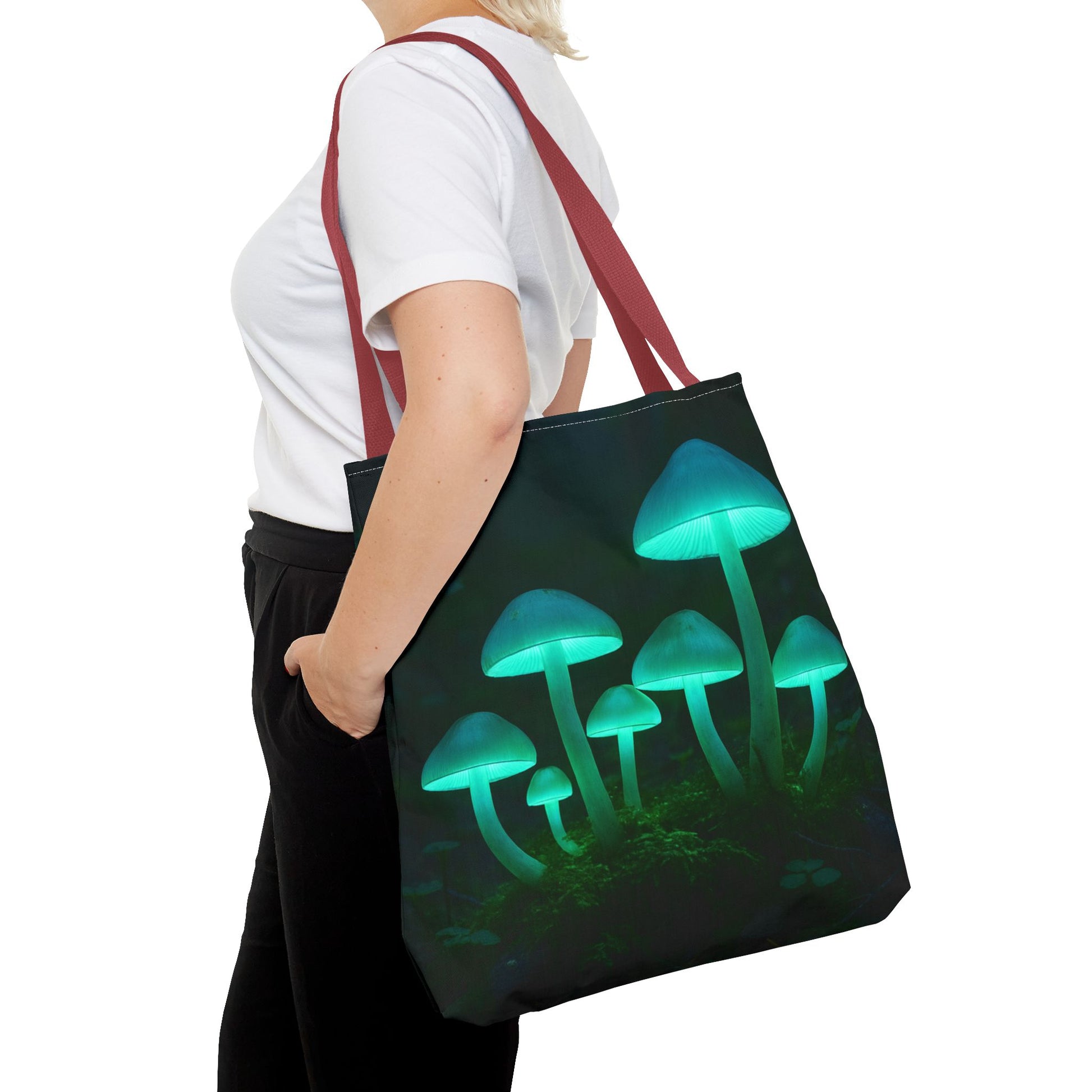 Elevate your style with this stunning Tote Bag, featuring a unique design inspired by enchanting bioluminescent mushrooms. Crafted for both durability and elegance, this bag offers a perfect blend of functionality and aesthetic appeal. Ideal for eco-conscious shoppers and mushroom enthusiasts alike, it carries a touch of the whimsical into everyday life.