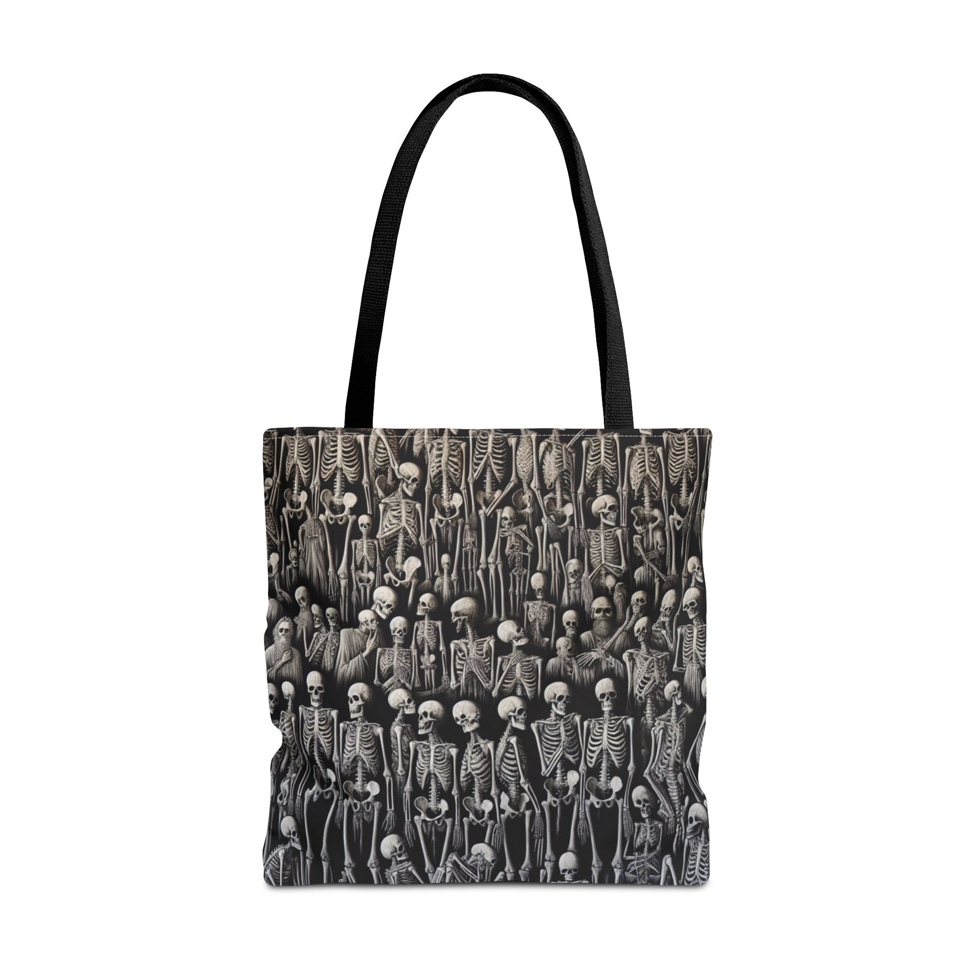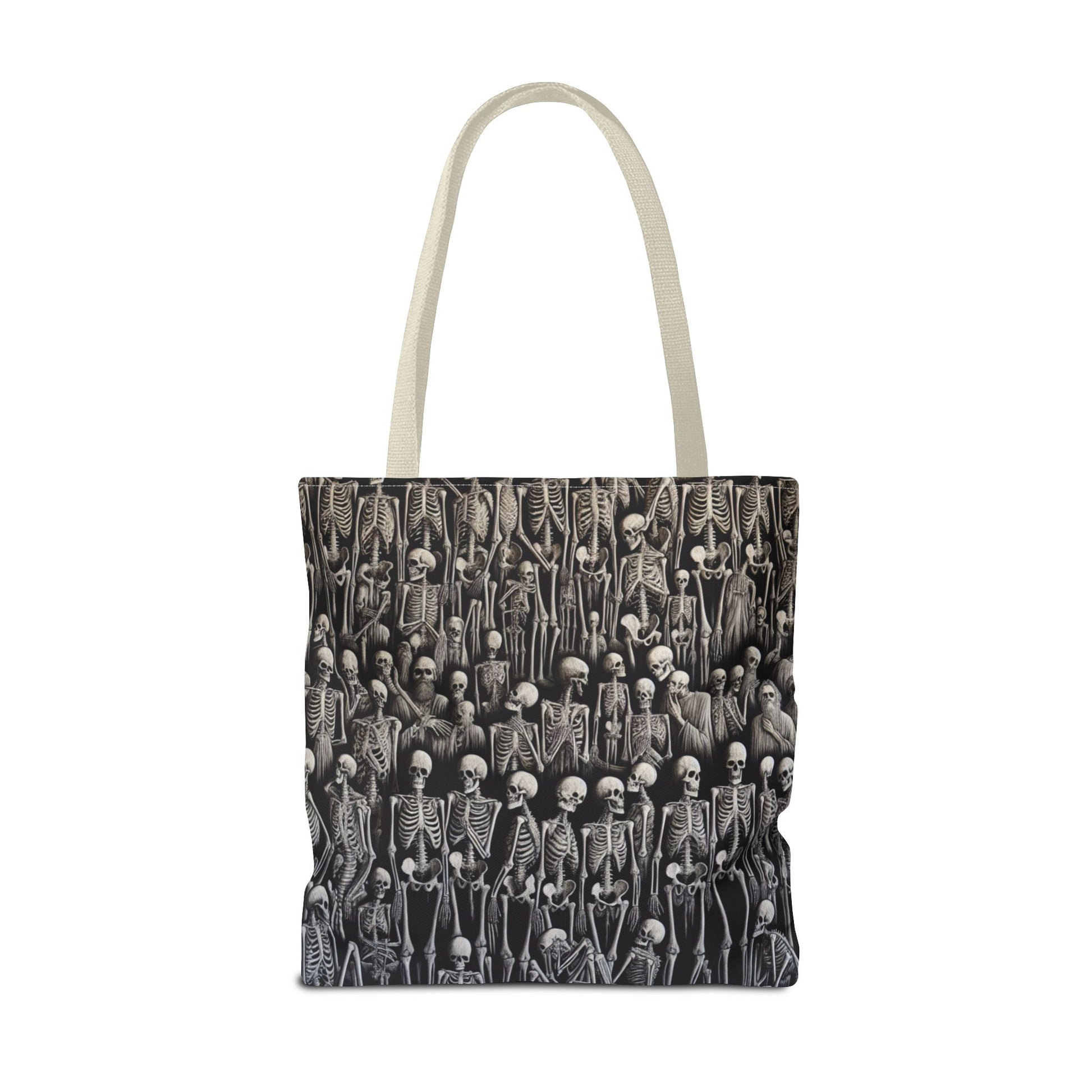 Introducing a striking Tote Bag that brings a unique blend of art and practicality to your daily life. Featuring a captivating design of stylized skeletons, this tote exudes a fun and slightly edgy vibe, perfect for expressing your personality. Ideal for a variety of occasions, this tote is a fantastic choice for Halloween celebrations, music festivals, or as a quirky accessory for everyday errands. Crafted for those who appreciate distinctive style, this tote bag caters to fashion-forward individuals, students, or anyone looking to make a statement while enjoying convenience. Whether you're heading to the beach, running errands, or attending a spooky gathering, this tote bag ensures you do it in style.