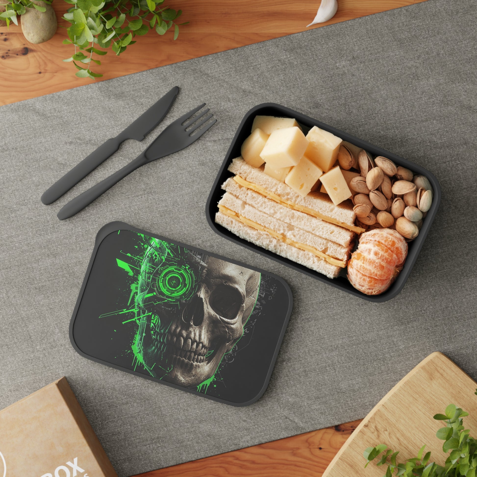 Gothic Skull Bento Box with Utensils, Eco-Friendly Meal Container, Lunch Box for Goth Lovers, Halloween Party, Dark Aesthetic Kitchenware