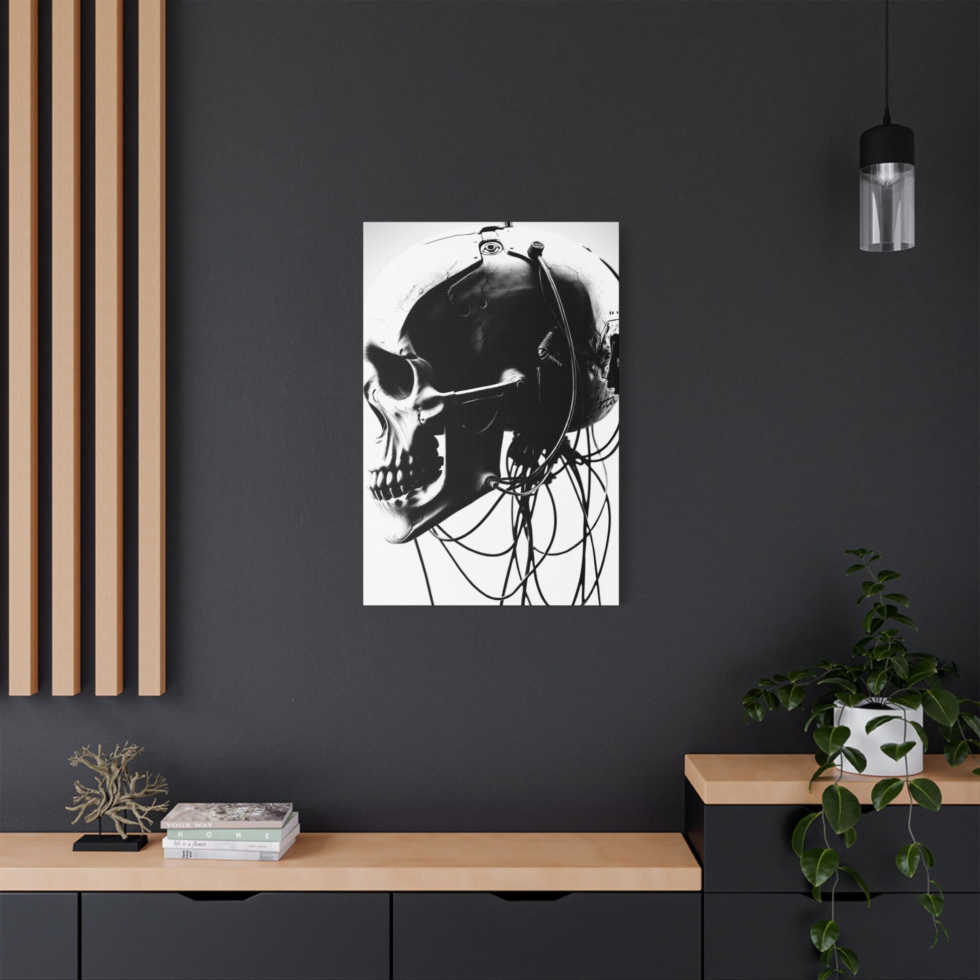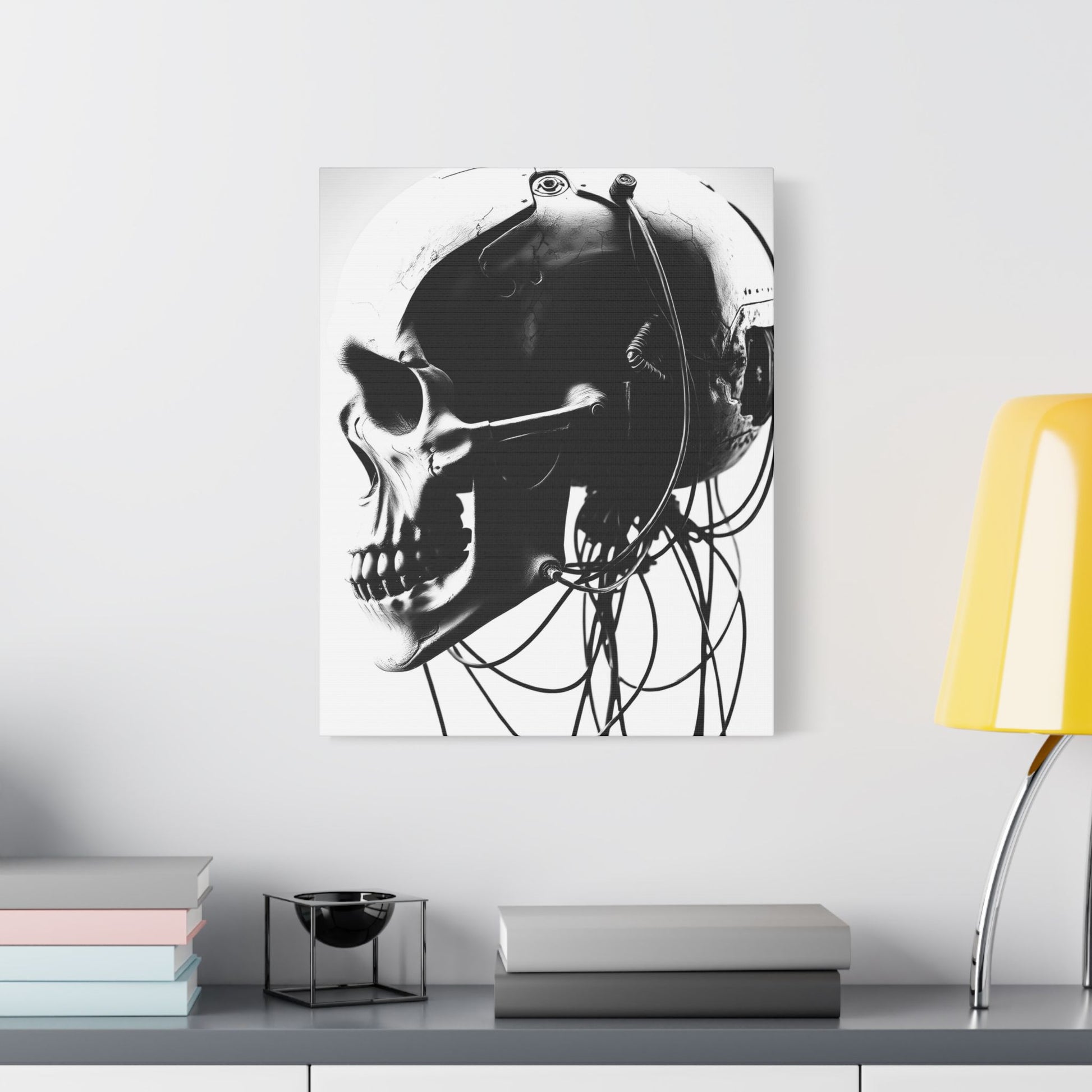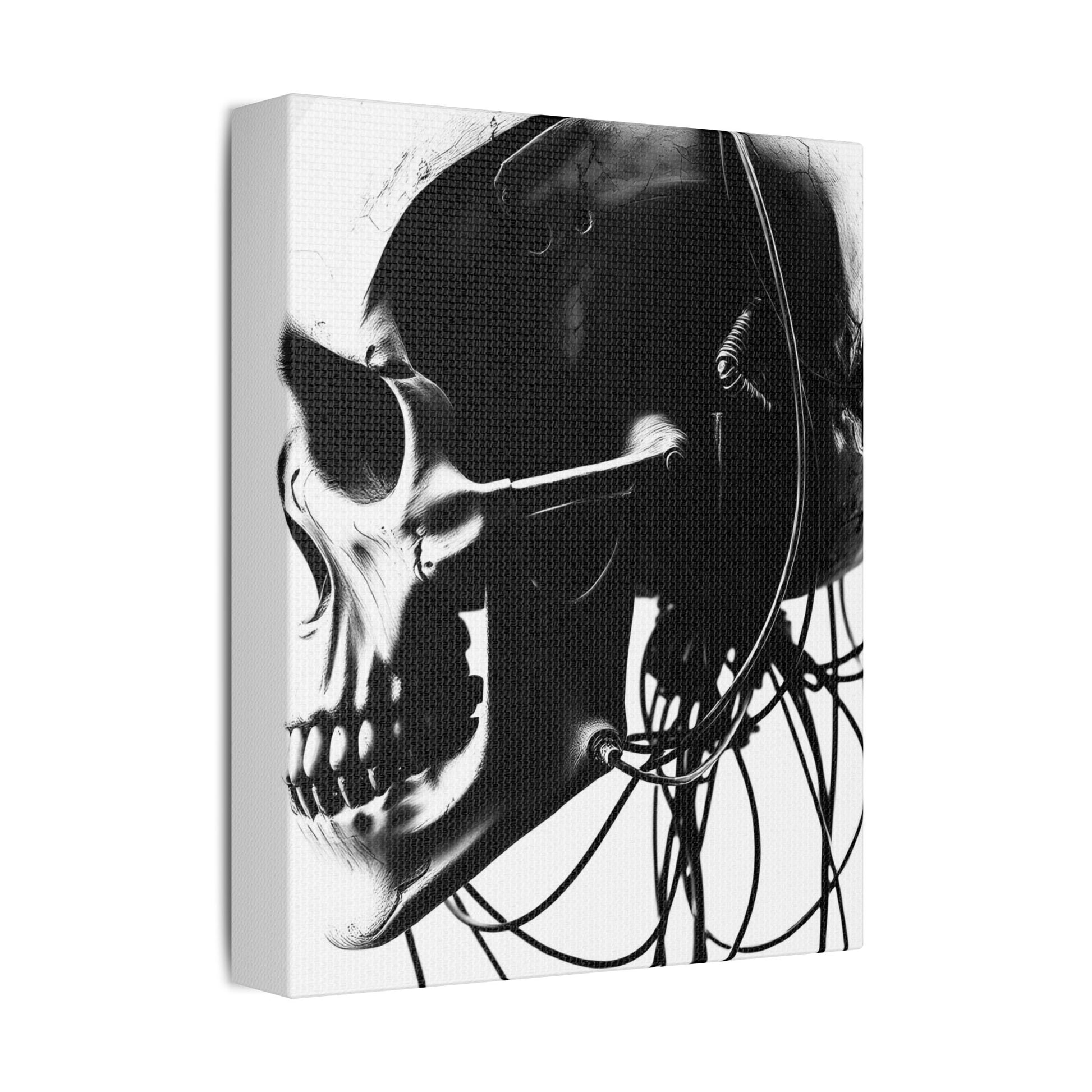Gothic Skull Canvas Art, Black and White Stretched Wall Decor, Edgy Home Aesthetic, Perfect for Halloween and Punk Lovers