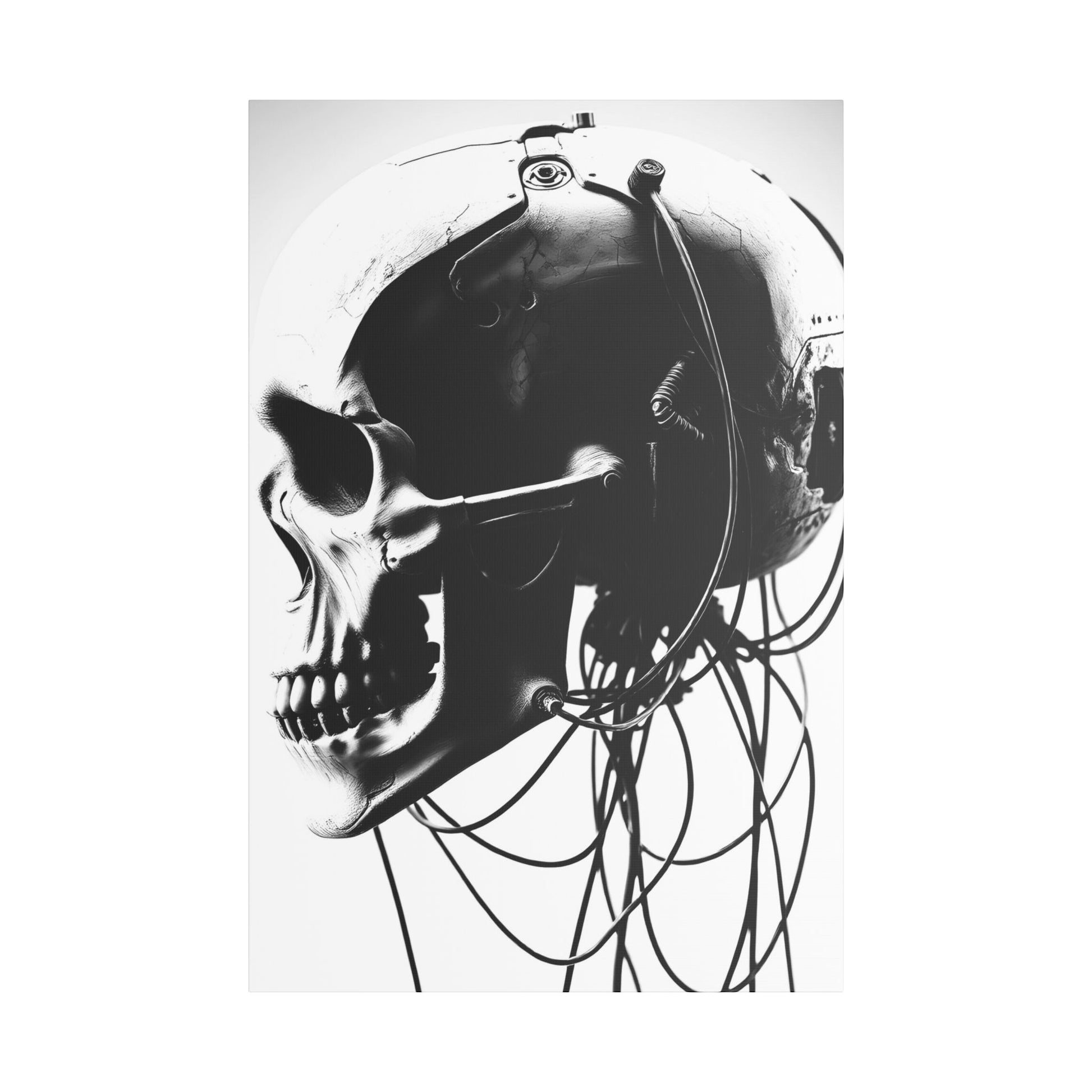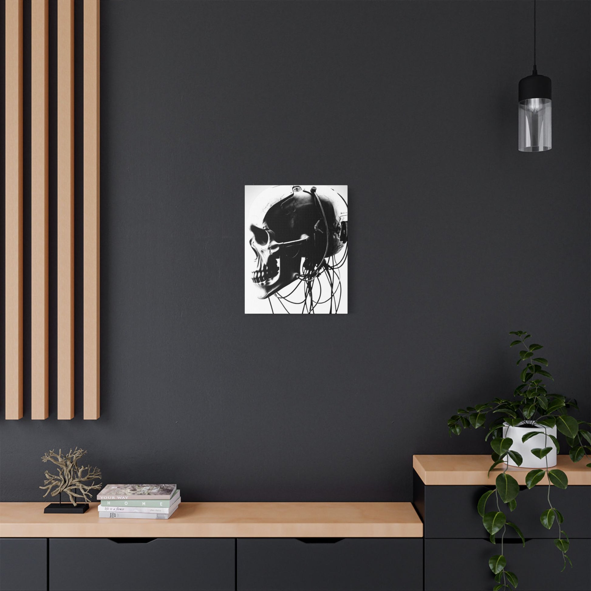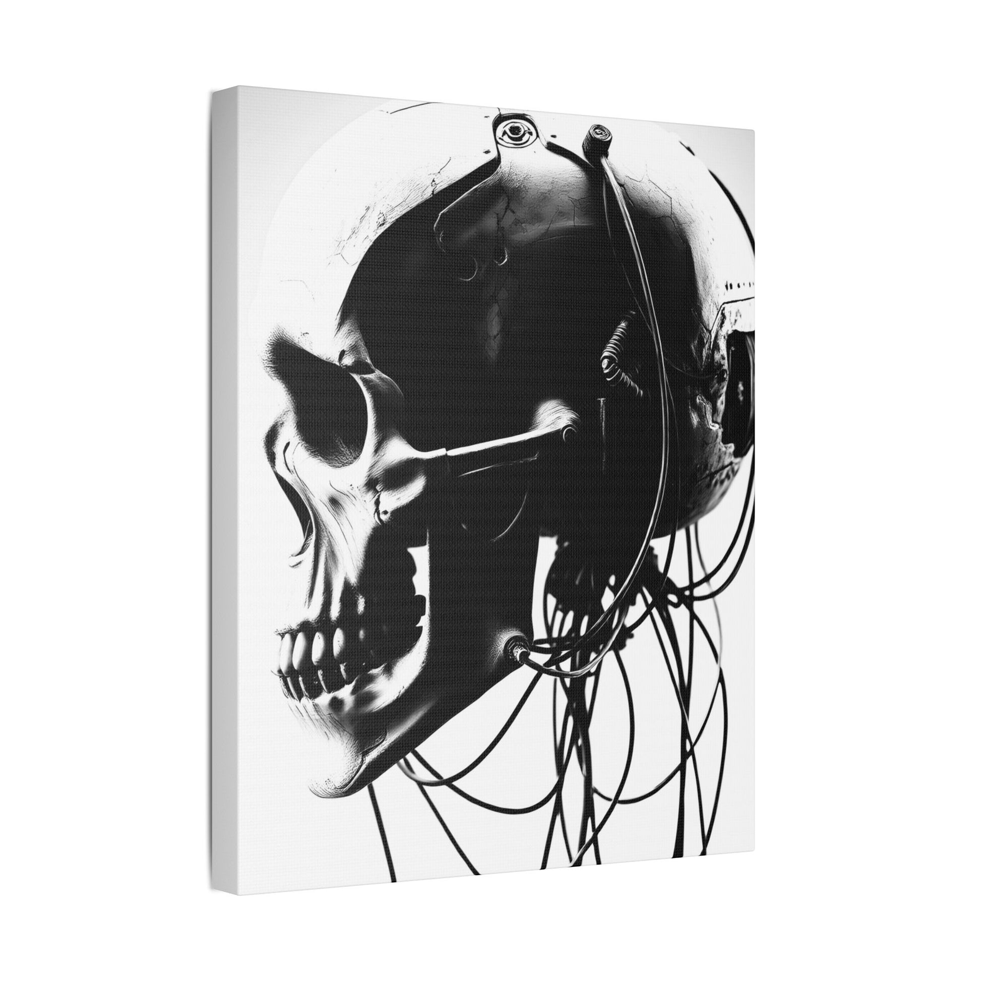 Gothic Skull Canvas Art, Black and White Stretched Wall Decor, Edgy Home Aesthetic, Perfect for Halloween and Punk Lovers