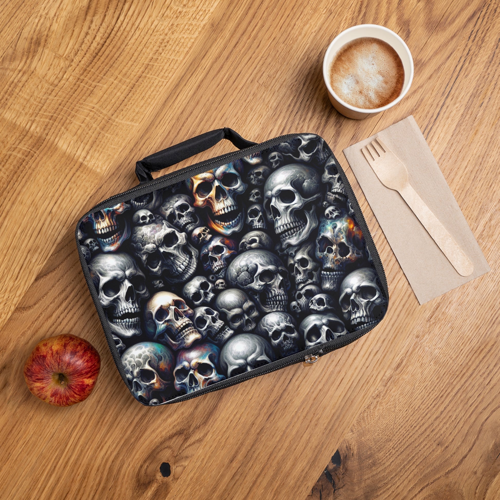 Gothic Skull Lunch Bag - Edgy Lunch Tote, Skull Pattern Insulated Bag, Dark Aesthetic Lunchbox, Halloween Gift, Unique Food Carrier