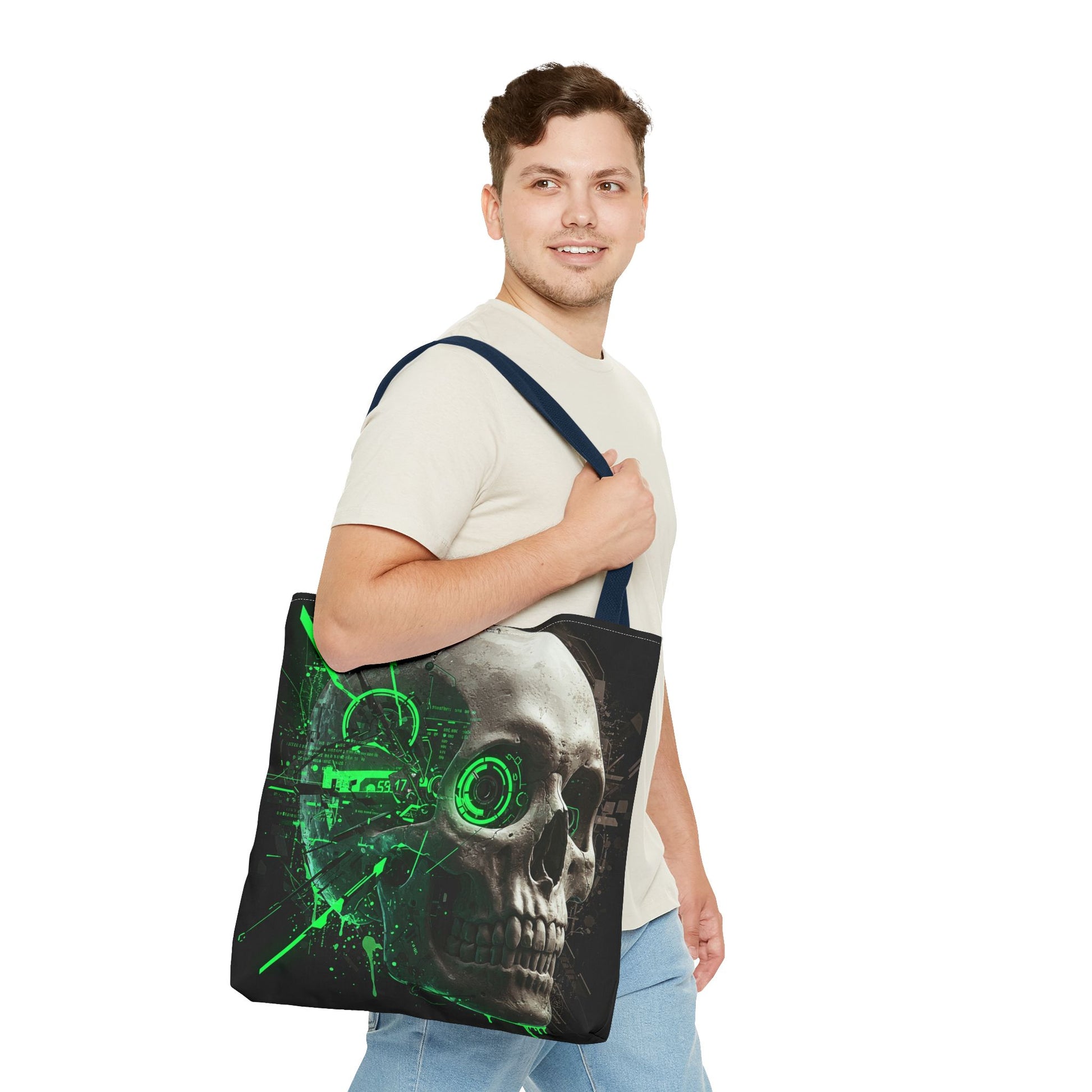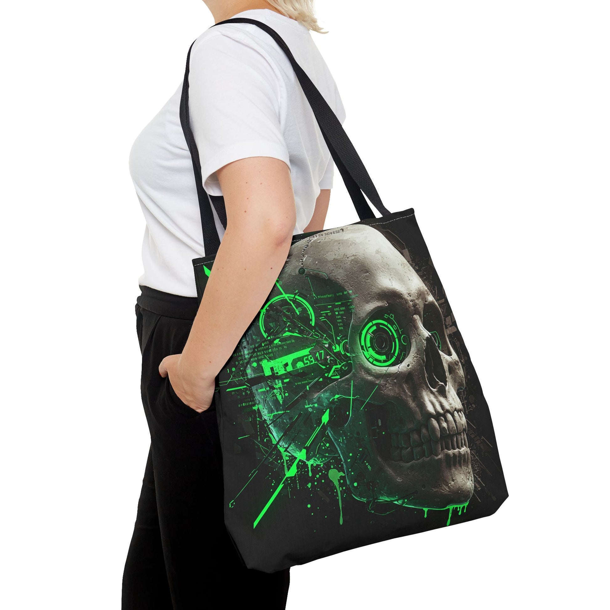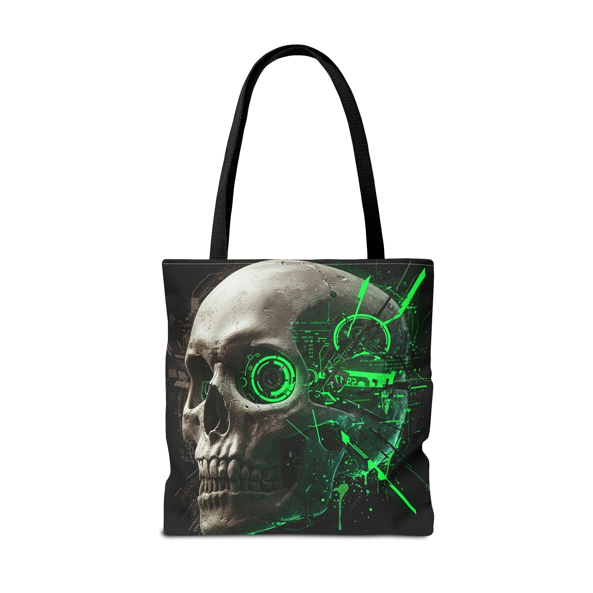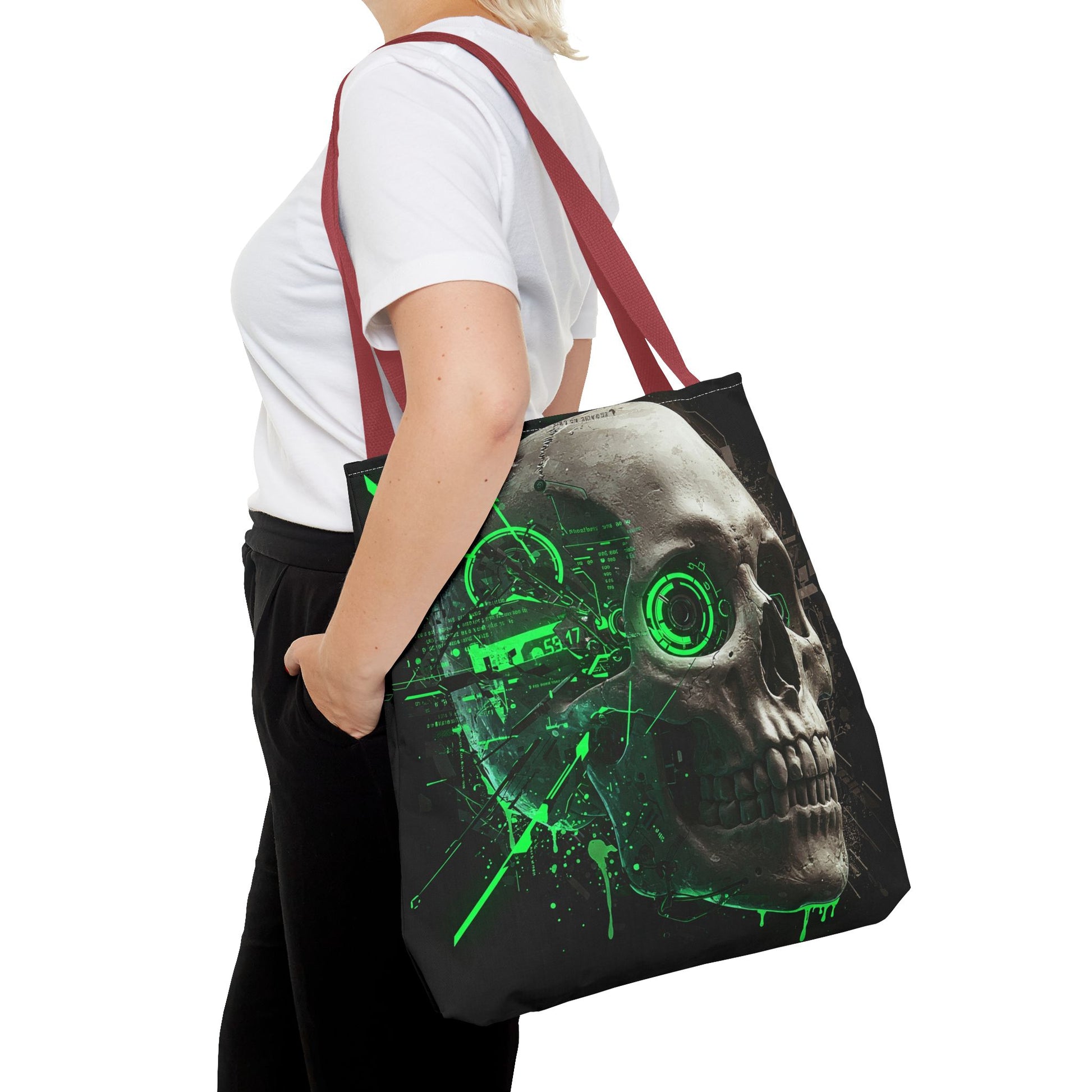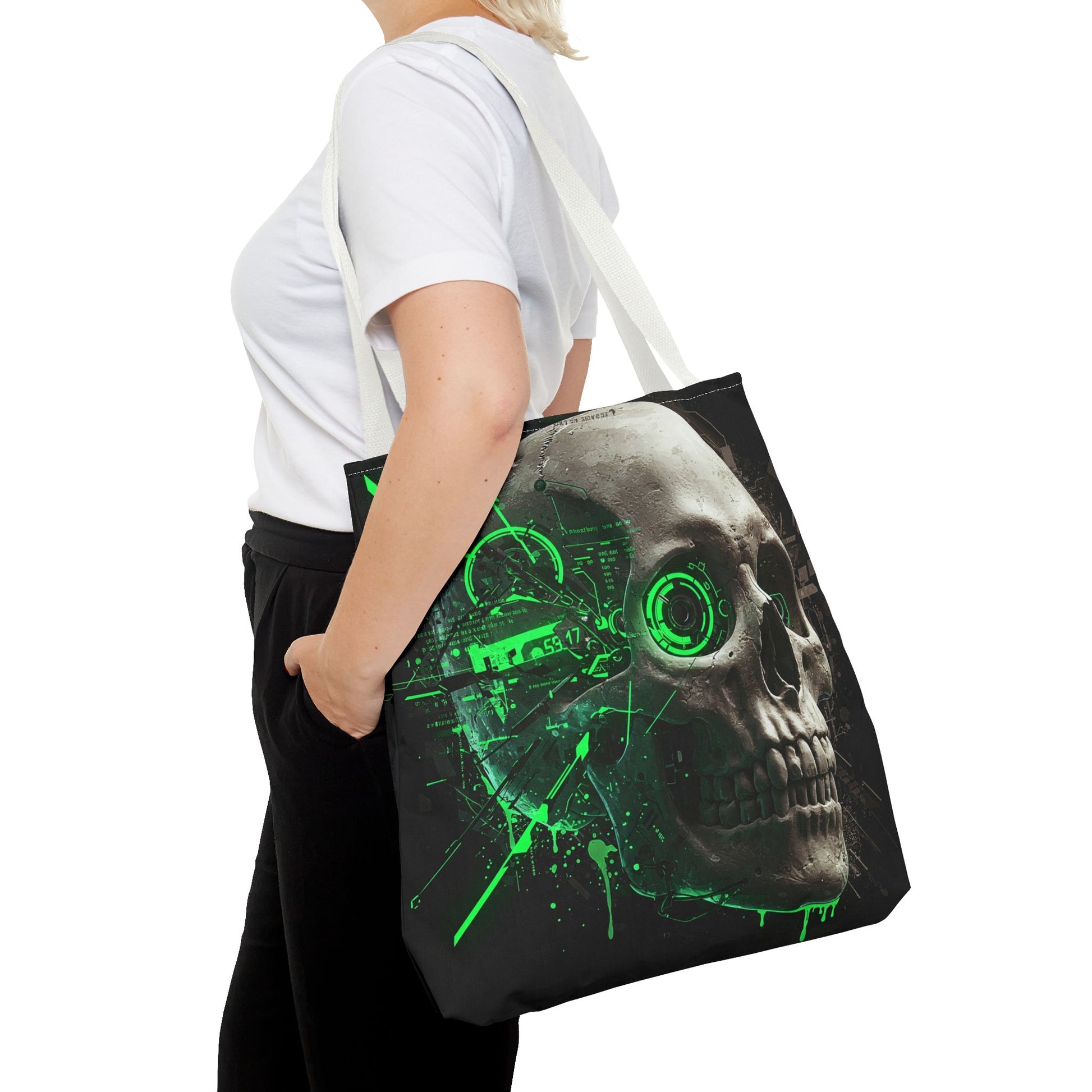 Gothic Skull Tote Bag, AOP Eco-Friendly Reusable Shopper, Dark Aesthetic Gift, Halloween, Cyberpunk Accessories, Stylish Everyday Carry