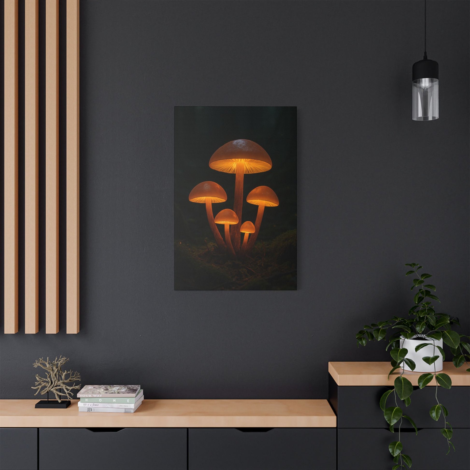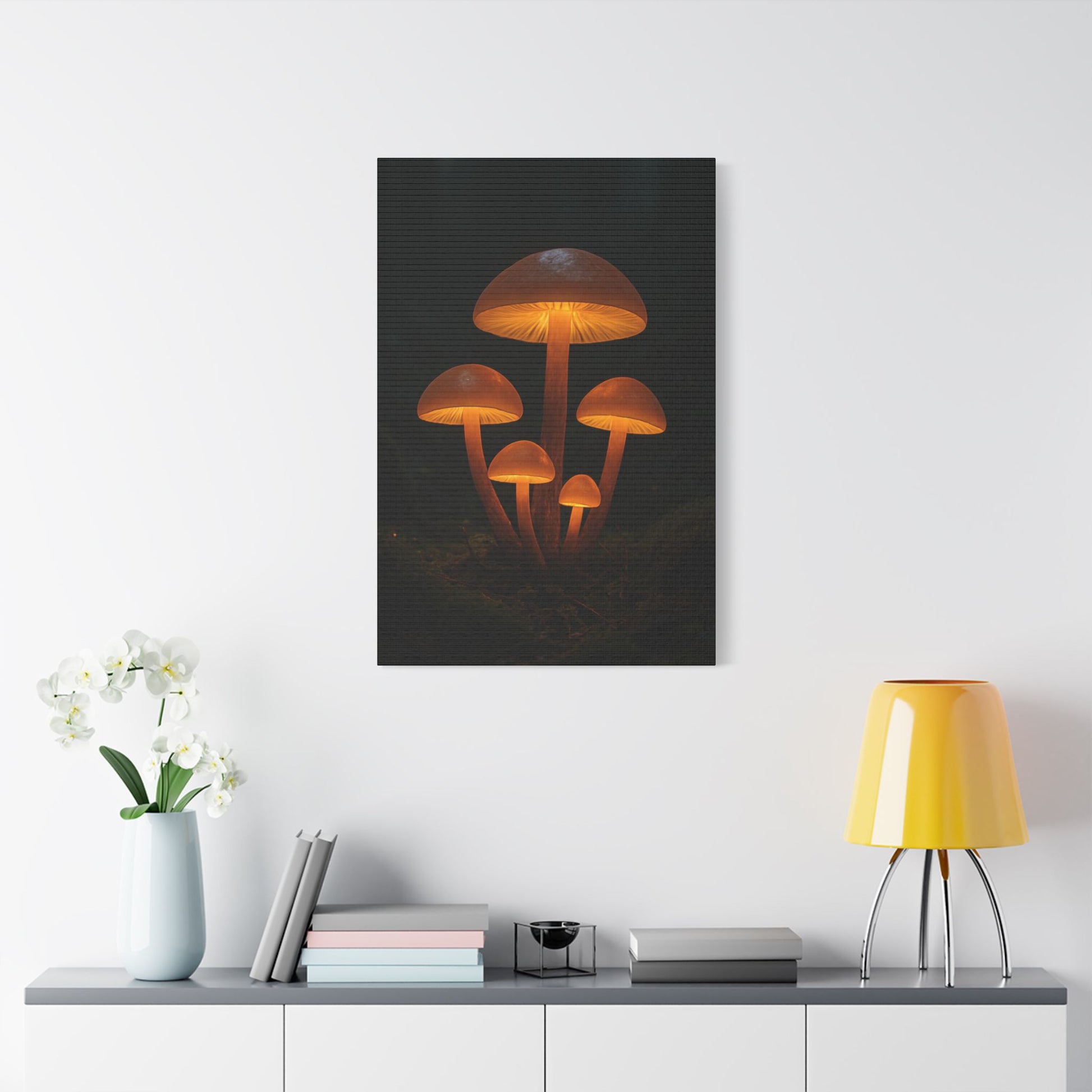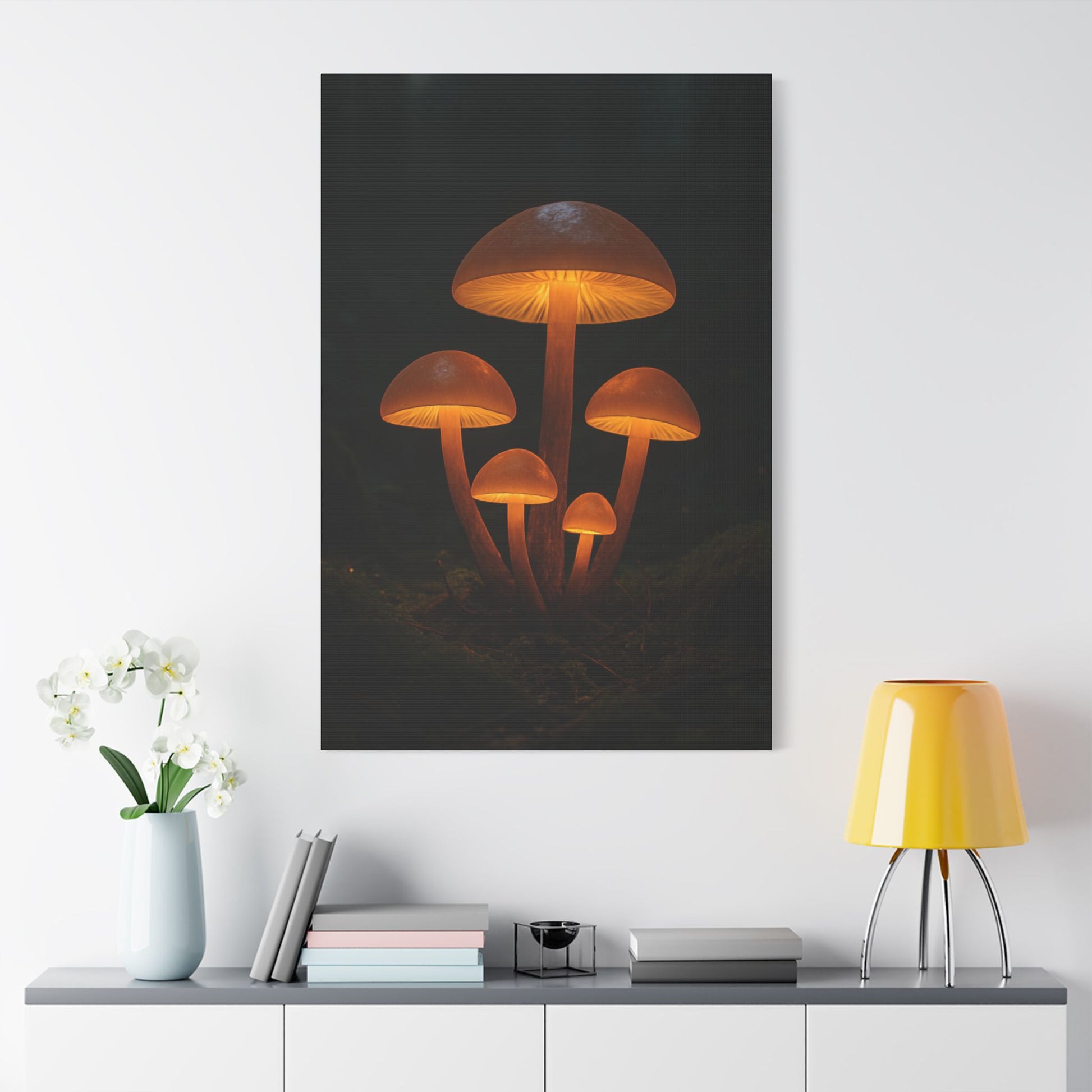 Illuminated Mushroom Art Canvas, Wall Decor, Nature Inspired, Cozy Home Art, Gifts for Nature Lovers, Unique Wall Hanging