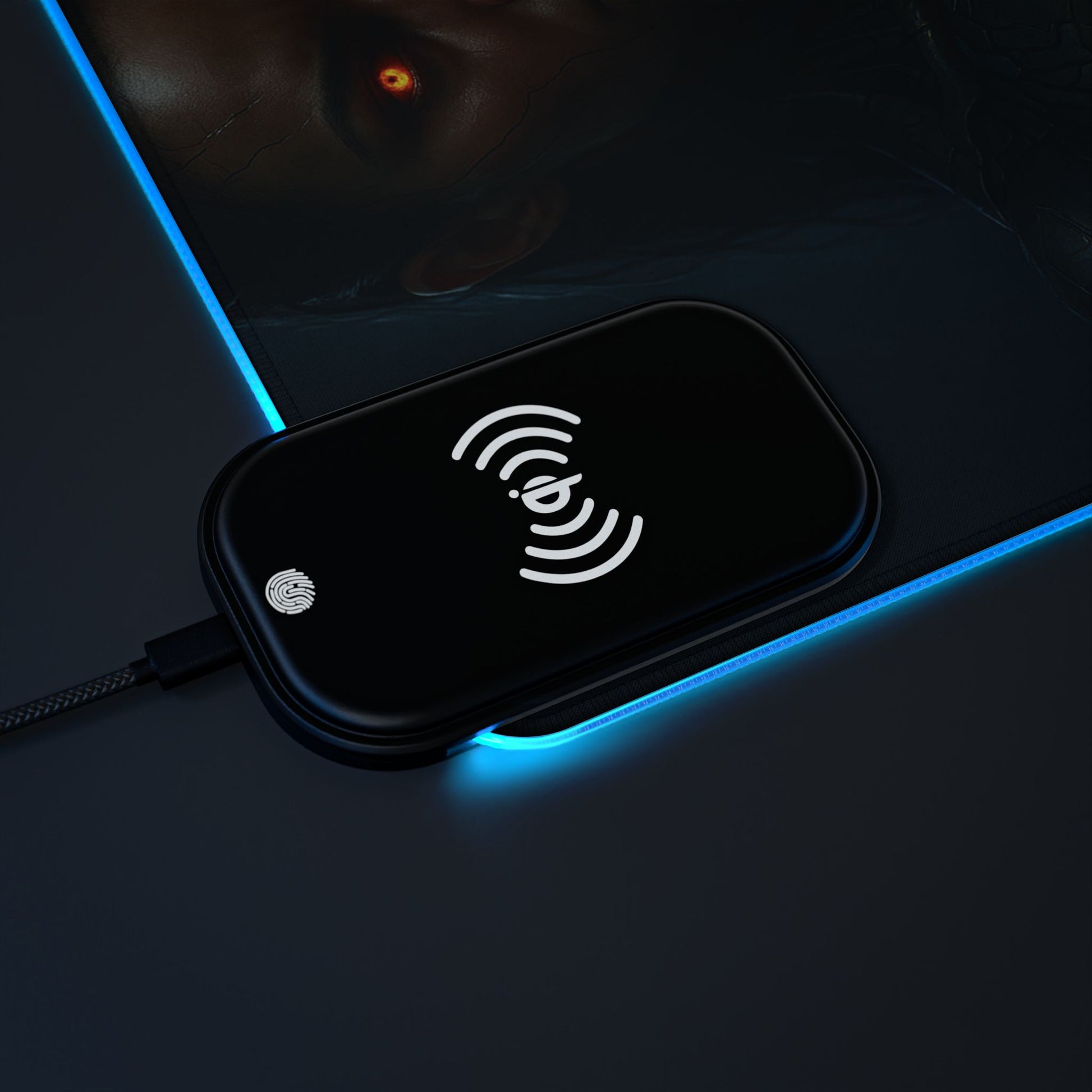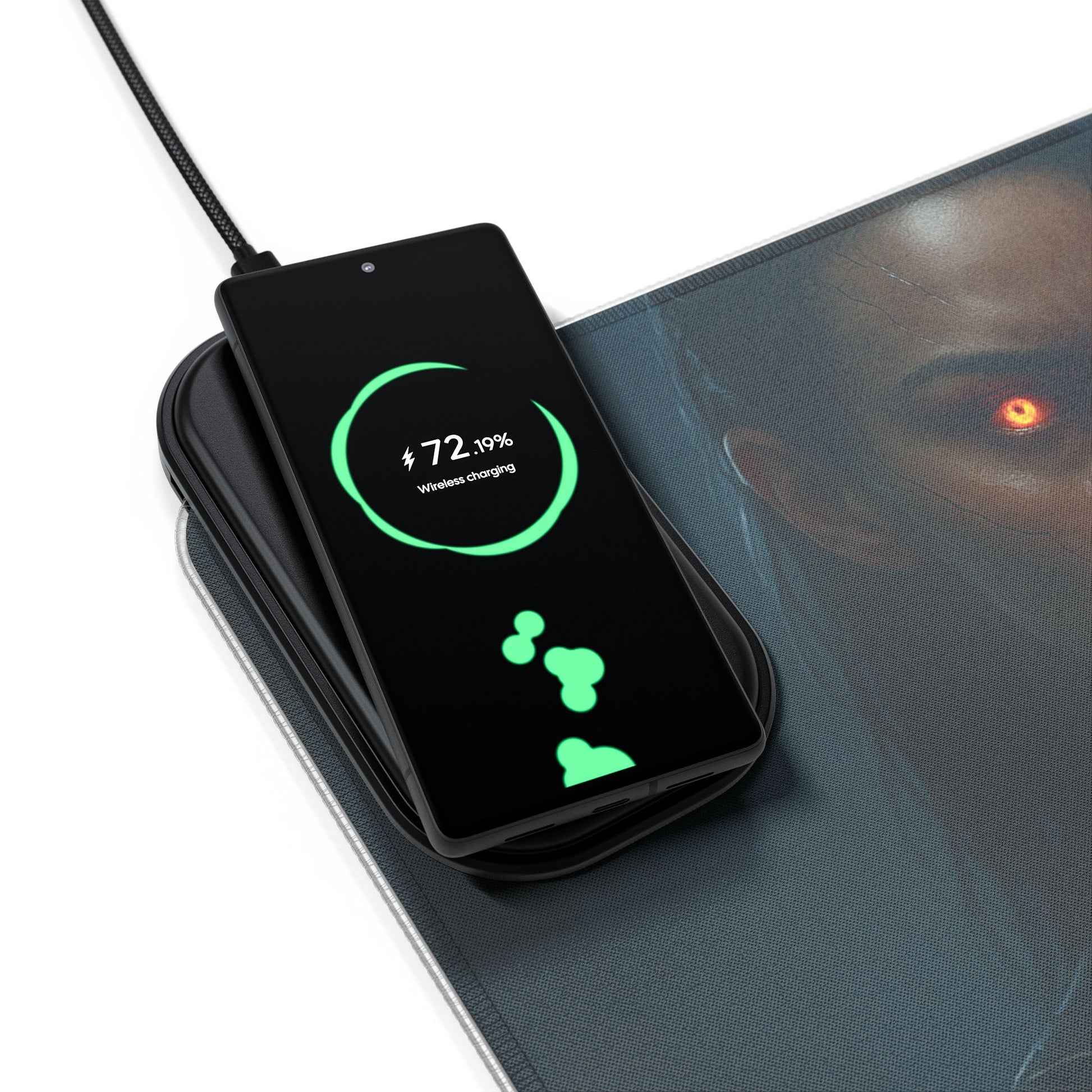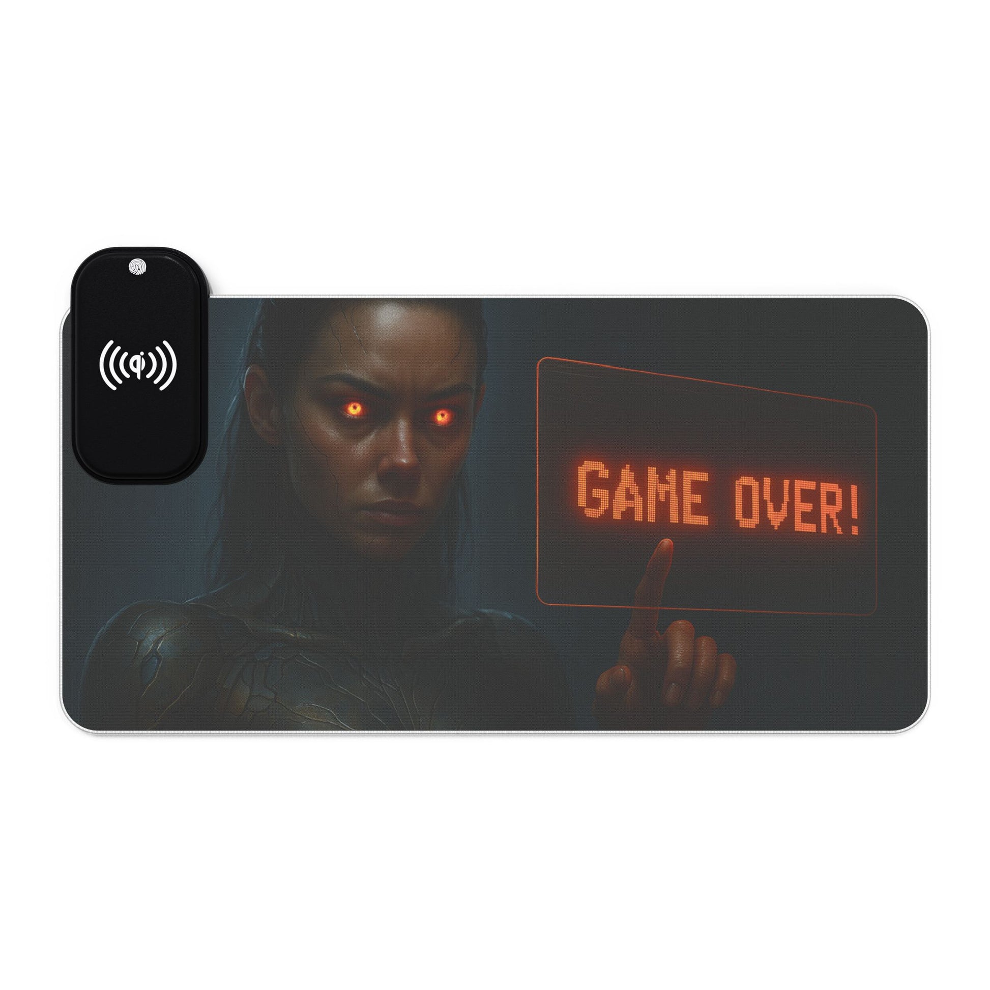 LED Gaming Mouse Pad with Wireless Charging - Game Over Design, Computer Accessory, Gamer Gift, Desk Decor, LED Light Pad, Gaming Desk