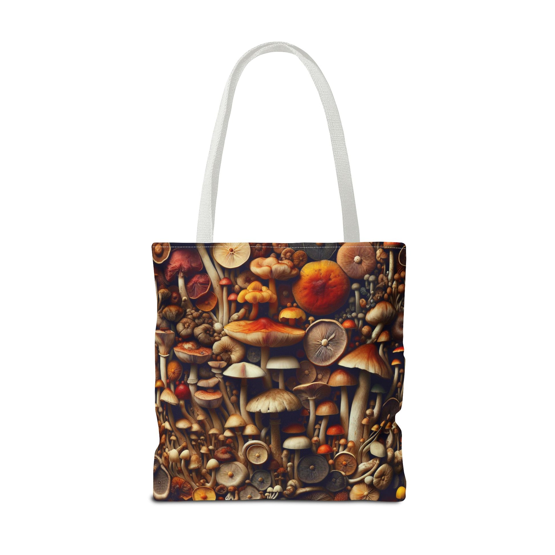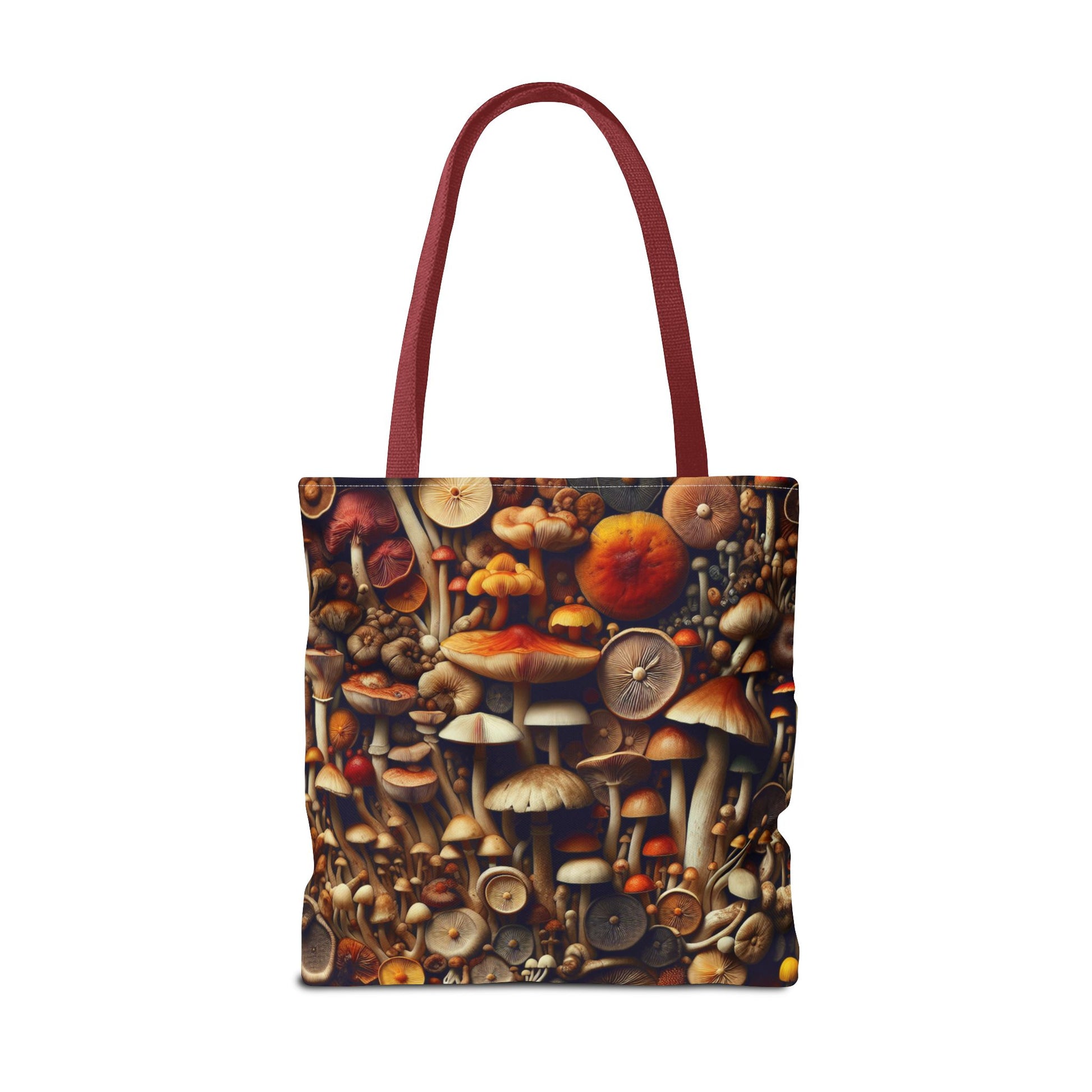 Discover the perfect blend of style and functionality with this stunning tote bag. Featuring a unique design of colorful mushrooms, this bag brings a vibrant touch to your everyday outings. Its durable 100% polyester body ensures it retains its shape while drying quickly, making it ideal for all your adventures. Whether you're at the farmer's market, heading to the beach, or simply doing some shopping, this tote bag fits seamlessly into your lifestyle. It's a great gift for nature lovers, artists, or anyone who appreciates a unique accessory. Perfect for special occasions such as Earth Day, birthdays, and holiday gifting, this tote bag will surely delight anyone who receives it.
