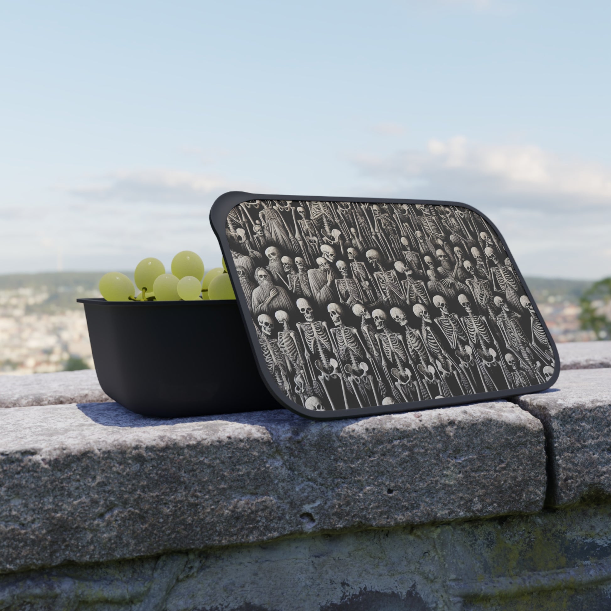 Skeletons PLA Bento Box with Utensils, Halloween Lunchbox, Spooky Meal Prep Container, Gothic Food Storage, Unique Gift Idea
