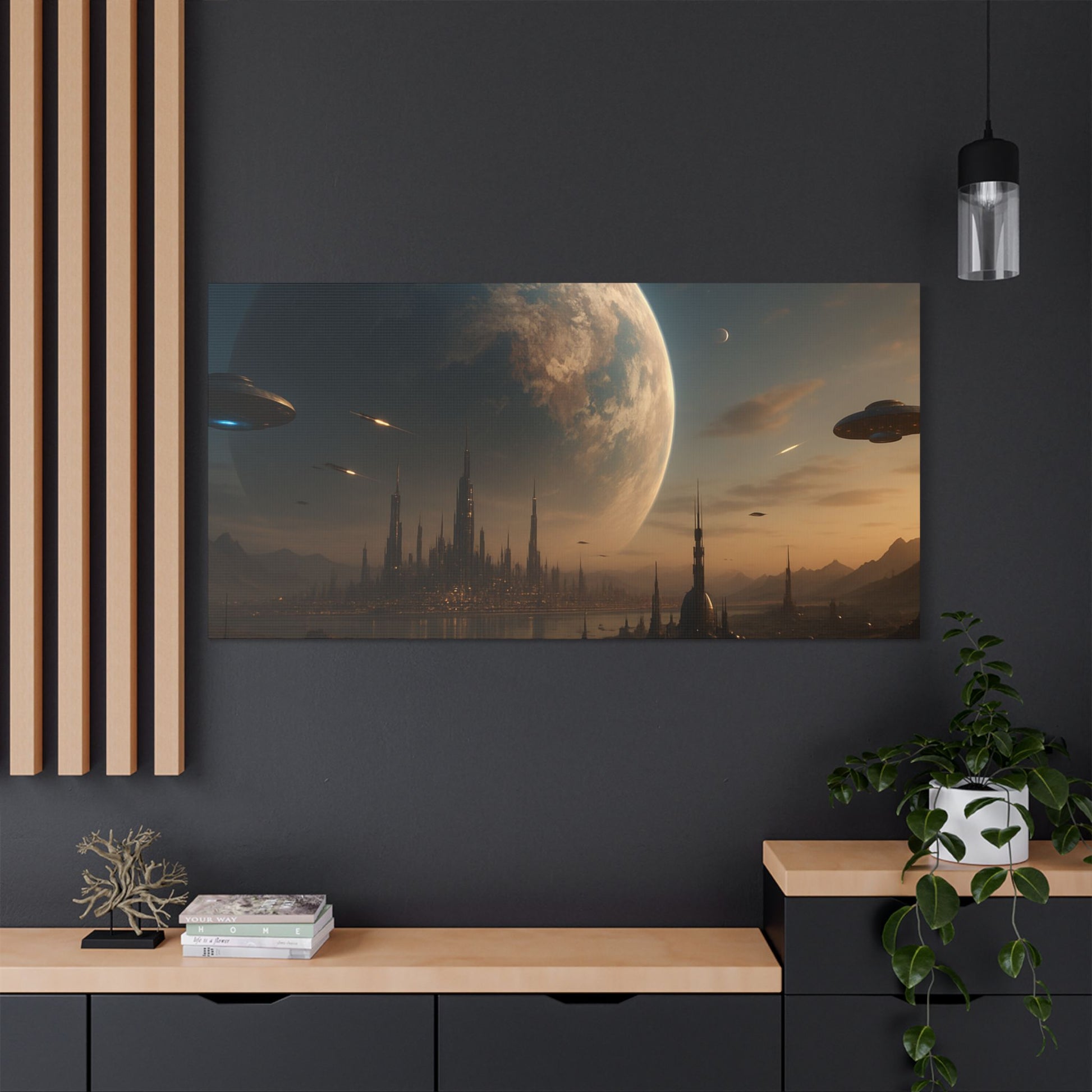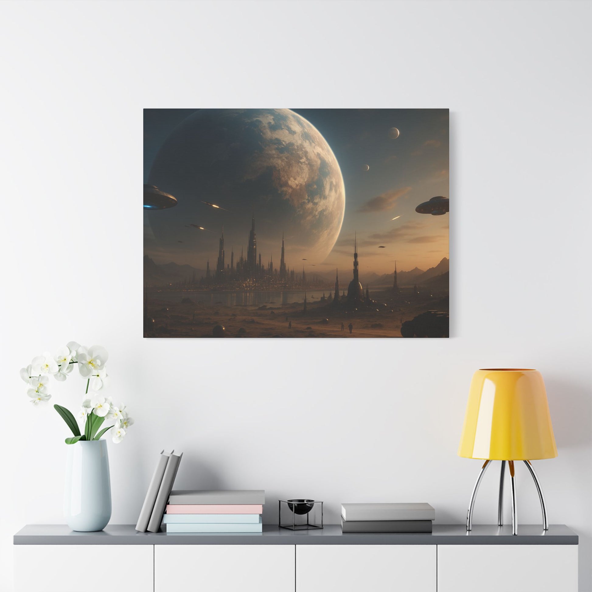 Stretched Canvas Art Print, Sci-Fi Landscape Decor, Galaxy Wall Art, Unique Home Decoration, Gift for Space Lovers