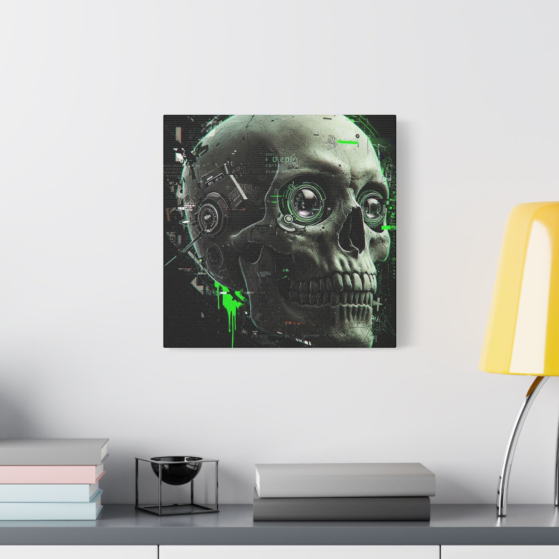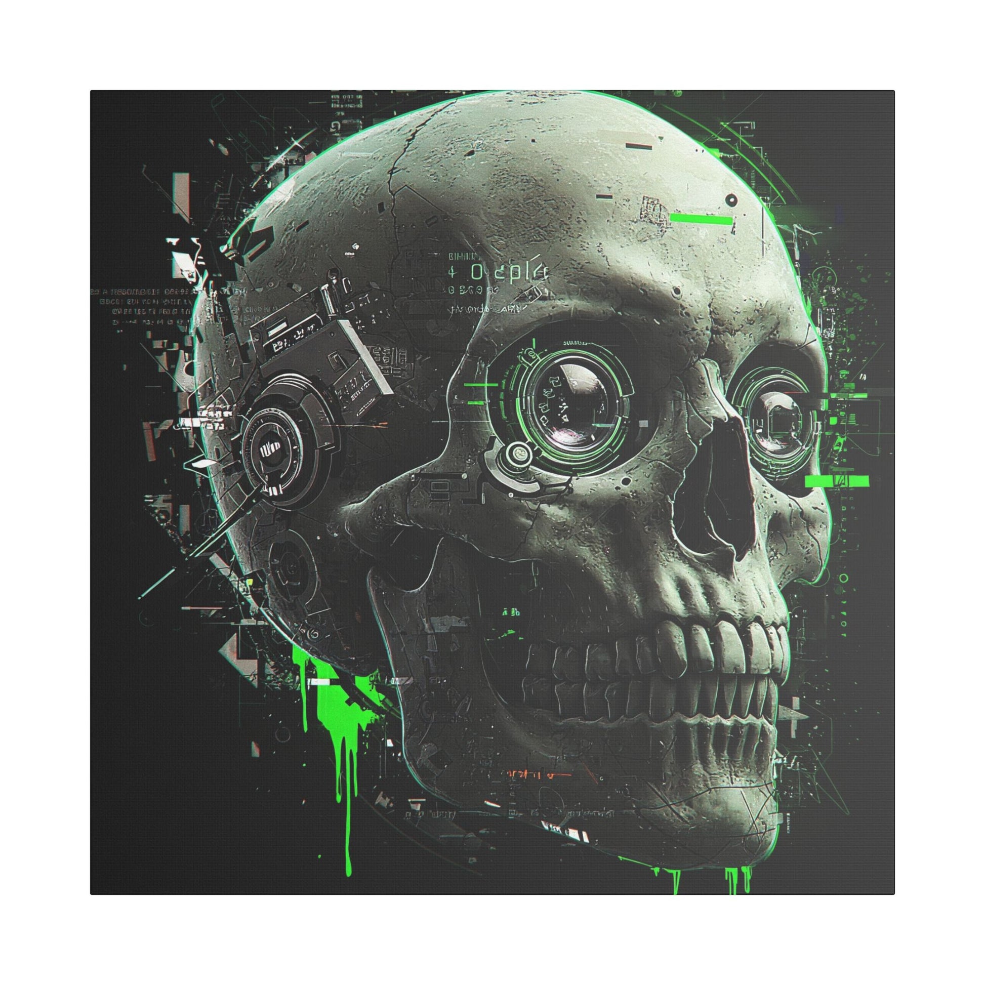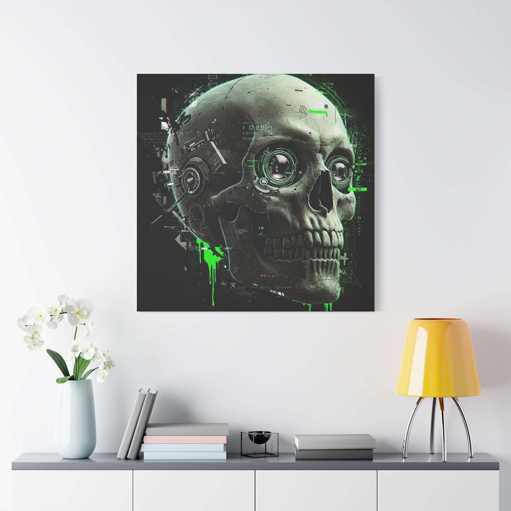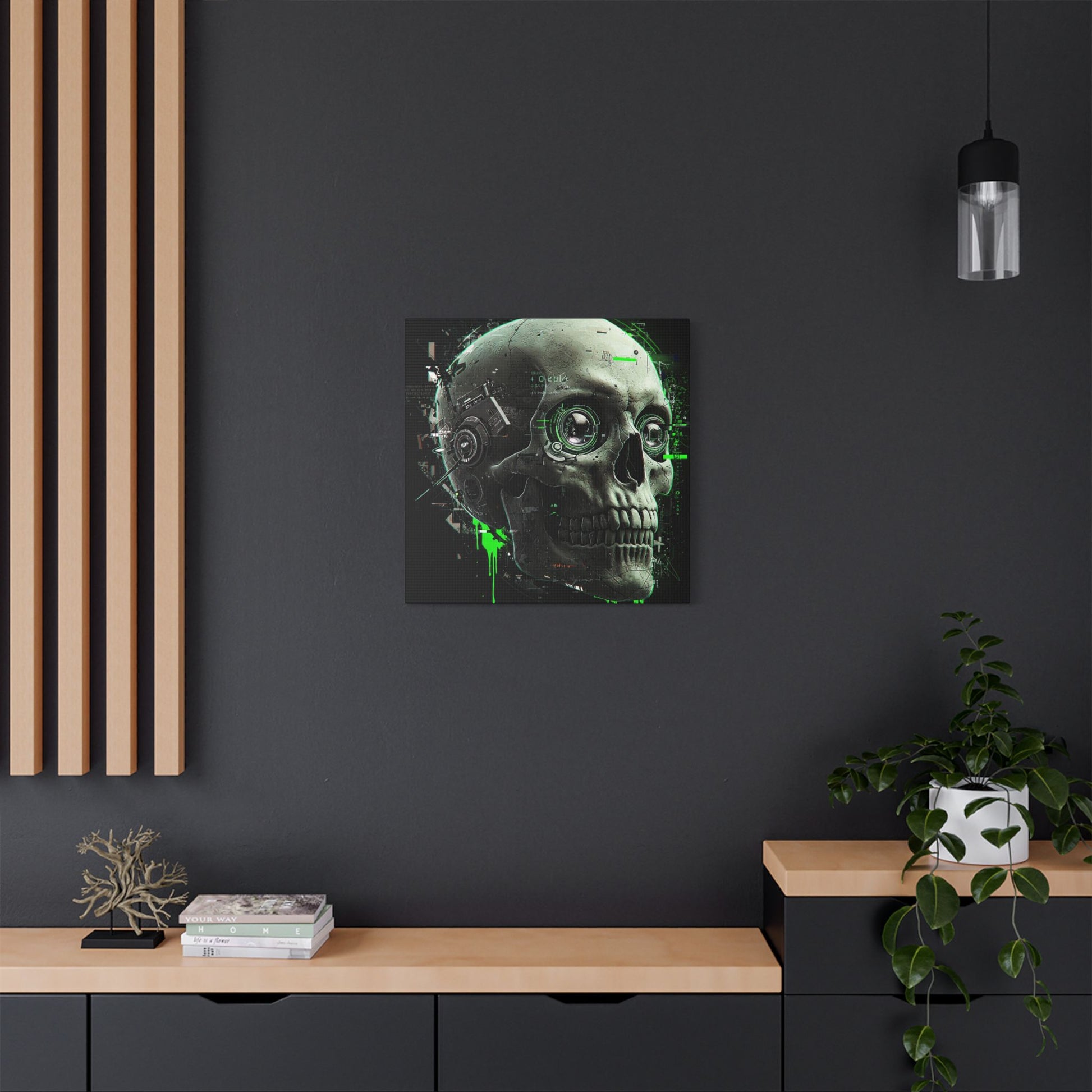 Techno Skull Canvas Art Print, Cyberpunk Wall Decor, Edgy Home Aesthetic, Gothic Gift for Him, Halloween Decoration, Modern Artwork