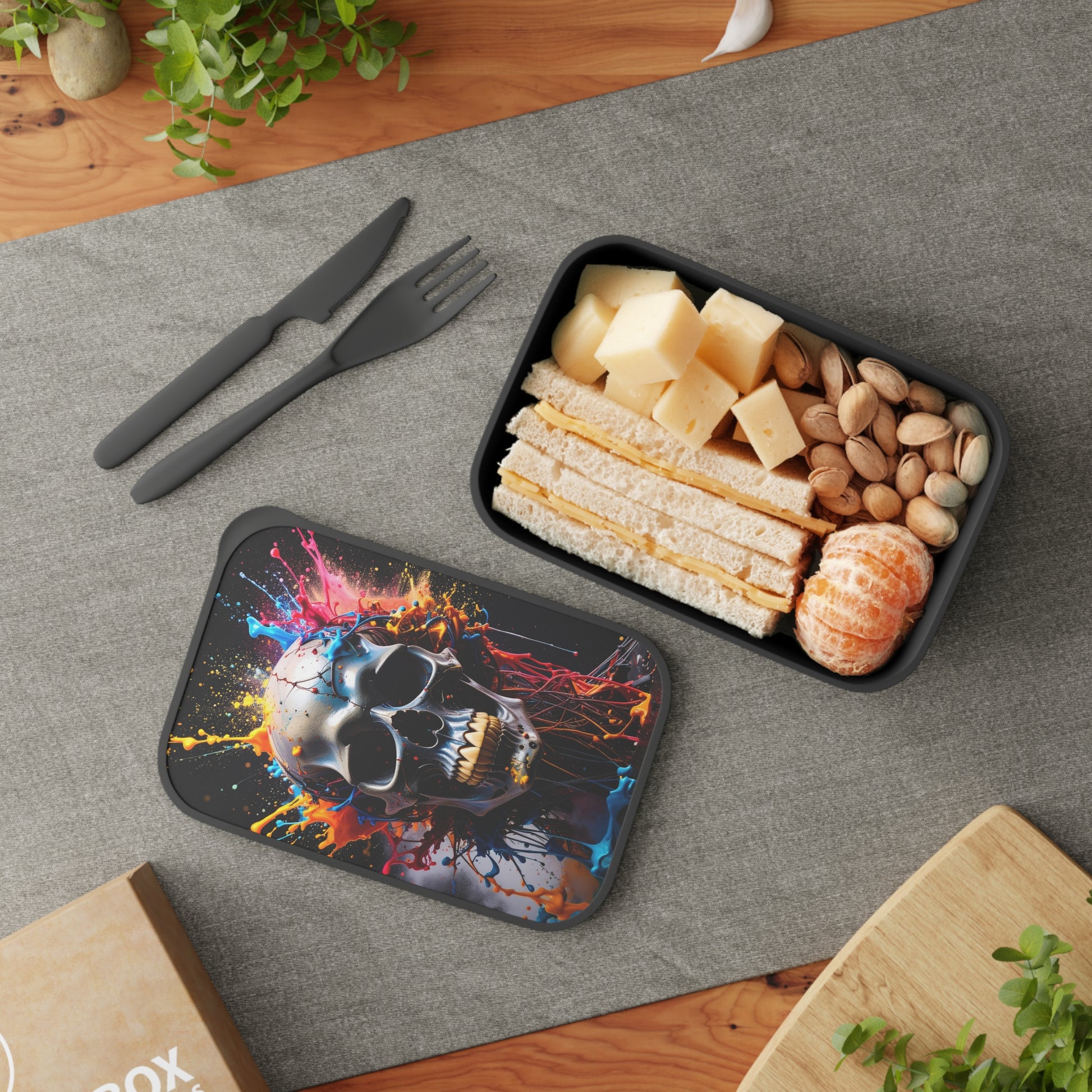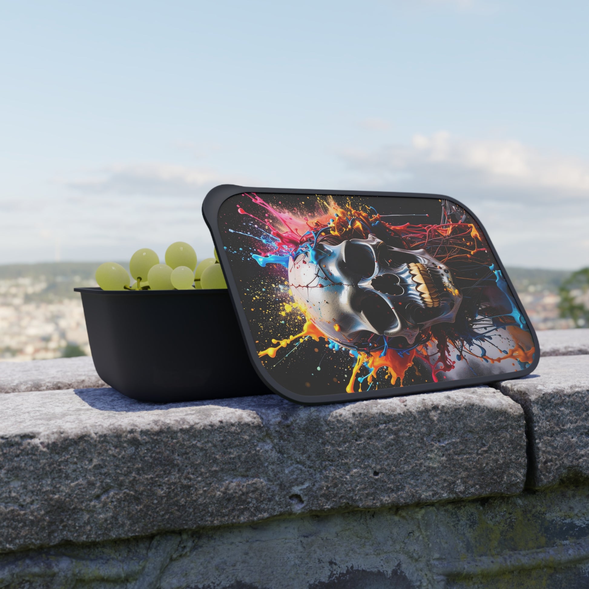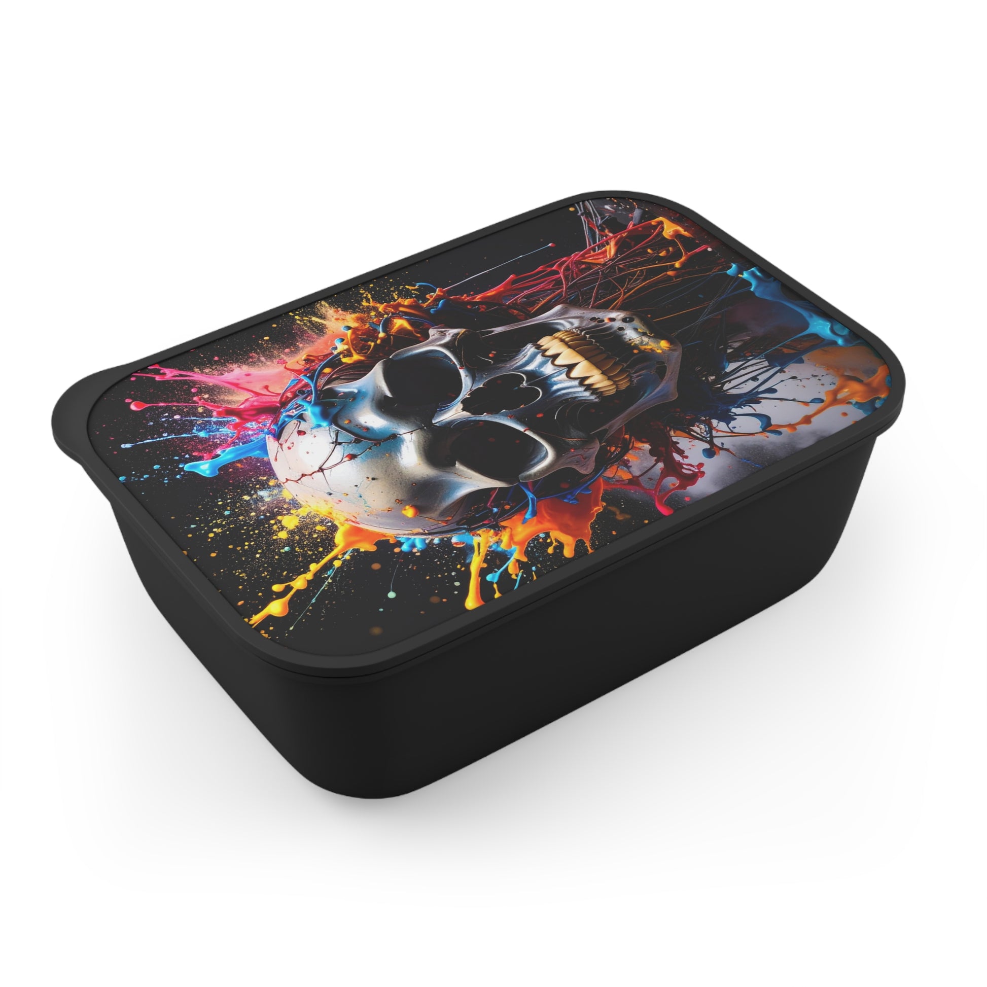 Introducing this vibrant Bento Box, perfect for those who love to express their unique style while enjoying their favorite meals on the go. The eye-catching design features a colorful skull print that adds a bold touch to your lunch routine. Whether you’re a student, a busy professional, or a parent preparing meals for your kids, this Bento Box makes lunchtime exciting. It's the perfect accessory for school days, picnics, or office lunches, making every meal an occasion to look forward to. This eco-friendly lunch box is designed for those who value sustainability and creativity in their everyday life.